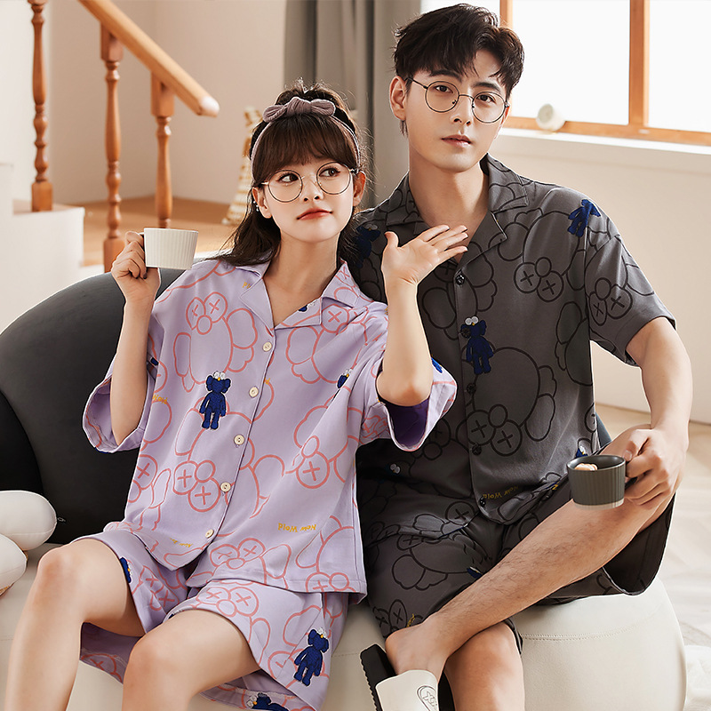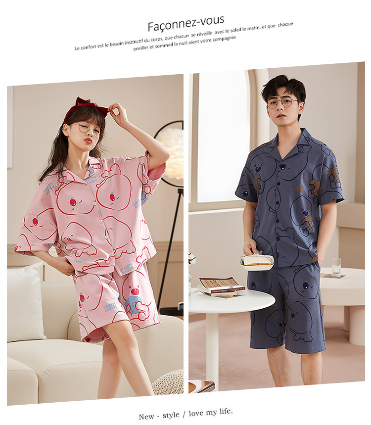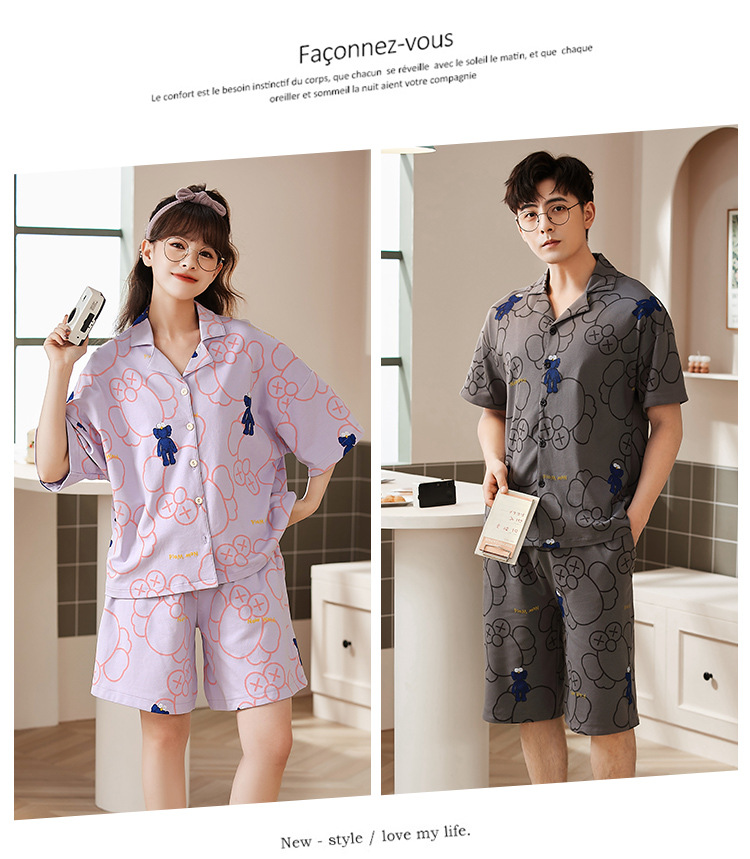 情侣睡衣夏季棉质男士女款夏款2024年新款短袖套装坑条家居服夏天