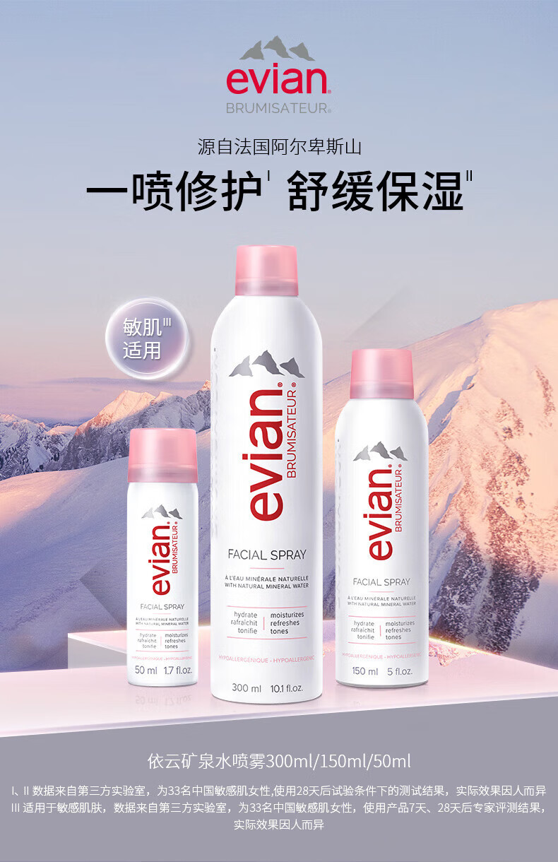 依云法国原装进口依云矿泉水喷雾爽肤水保湿补水定妆清爽