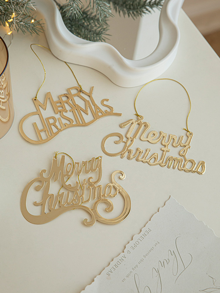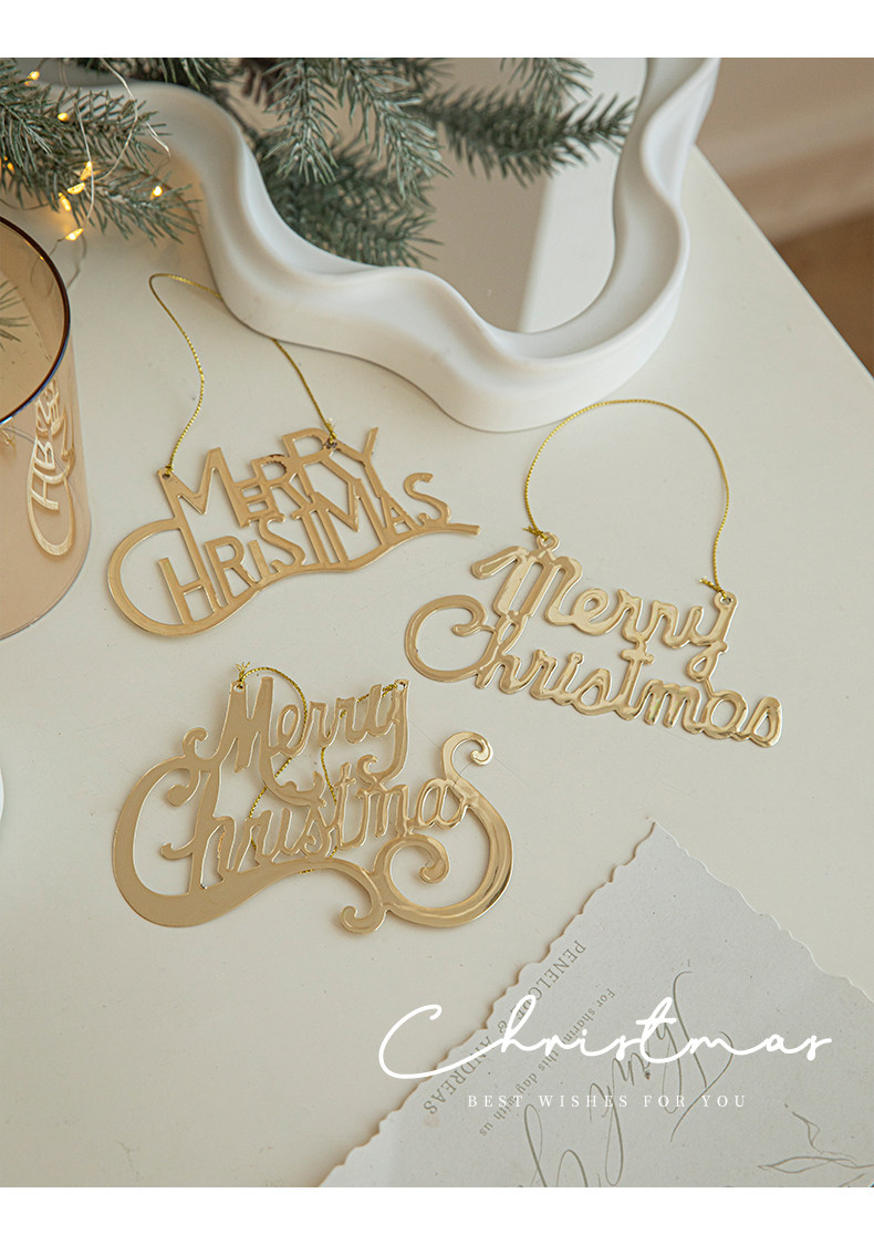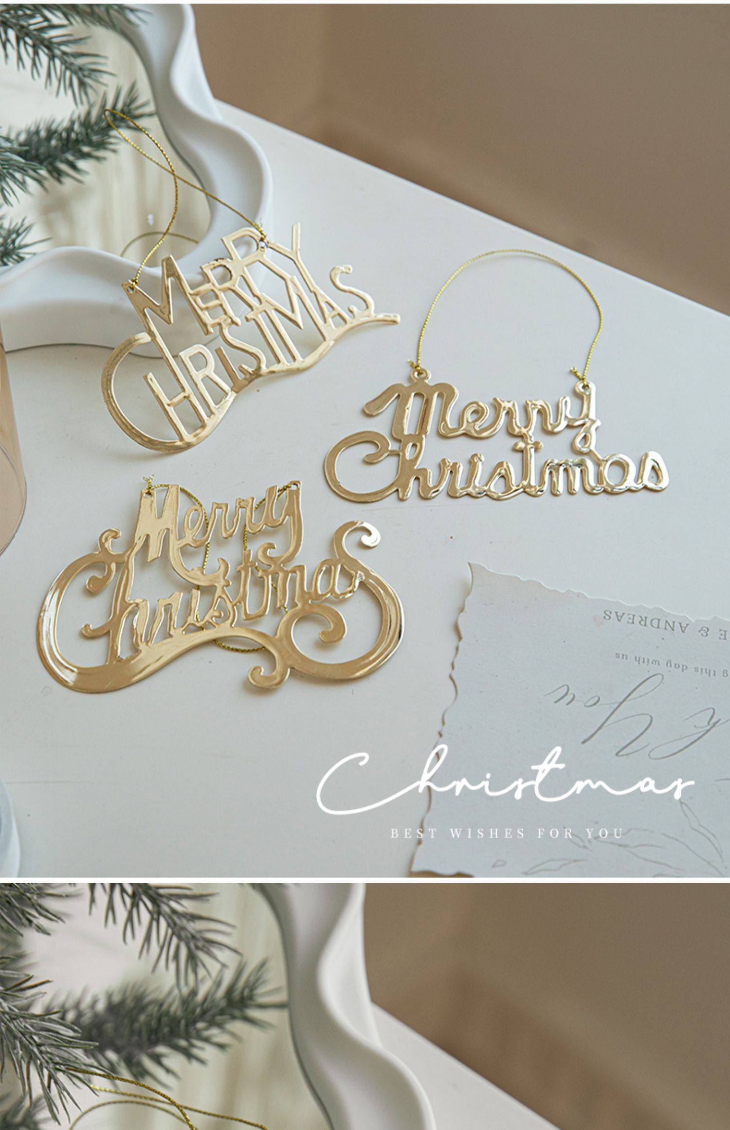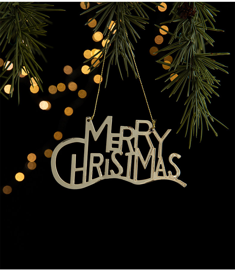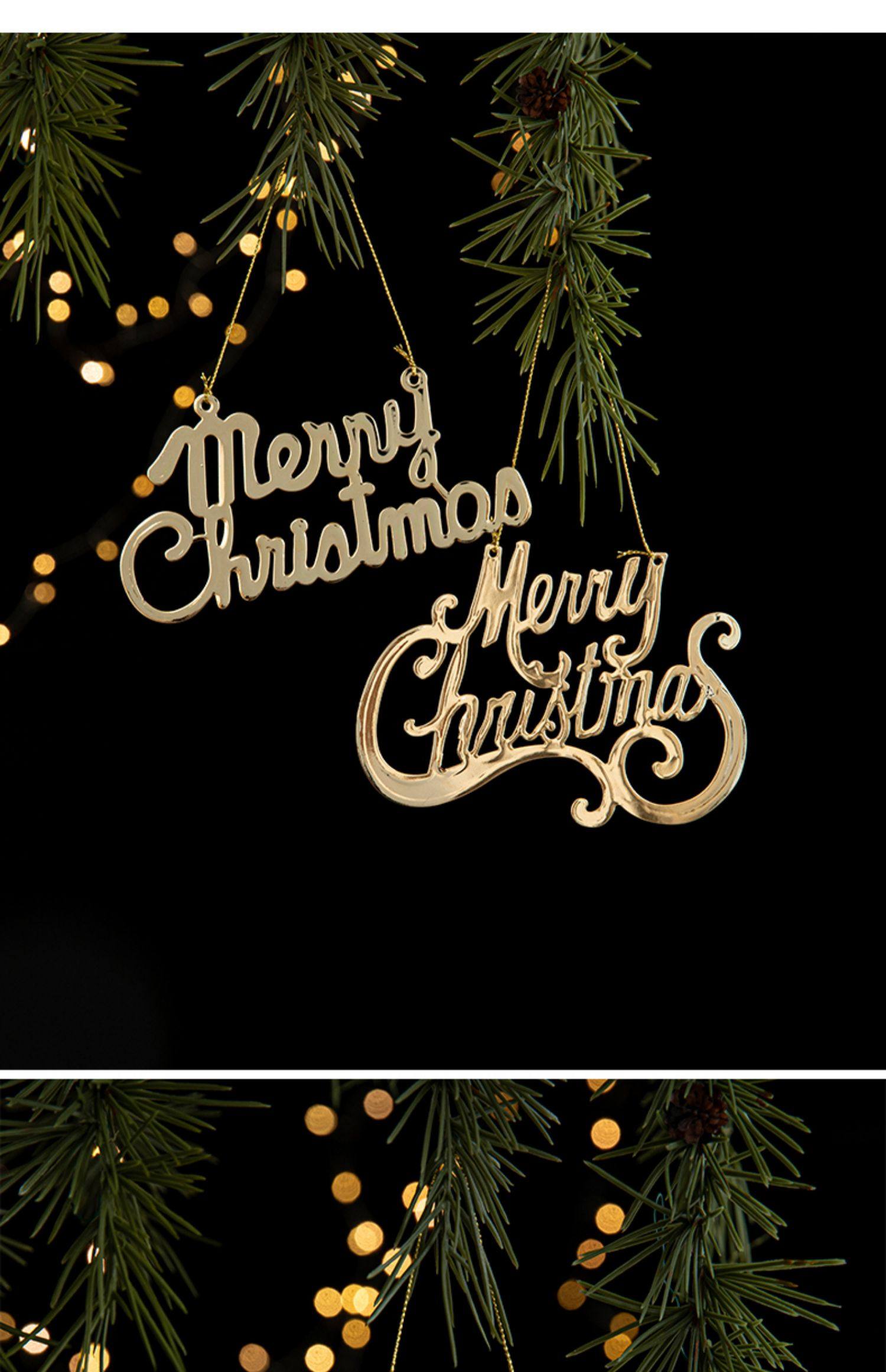 圣诞节金色电镀铁艺字母牌圣诞树挂件圣诞节装饰花环配件节日布置