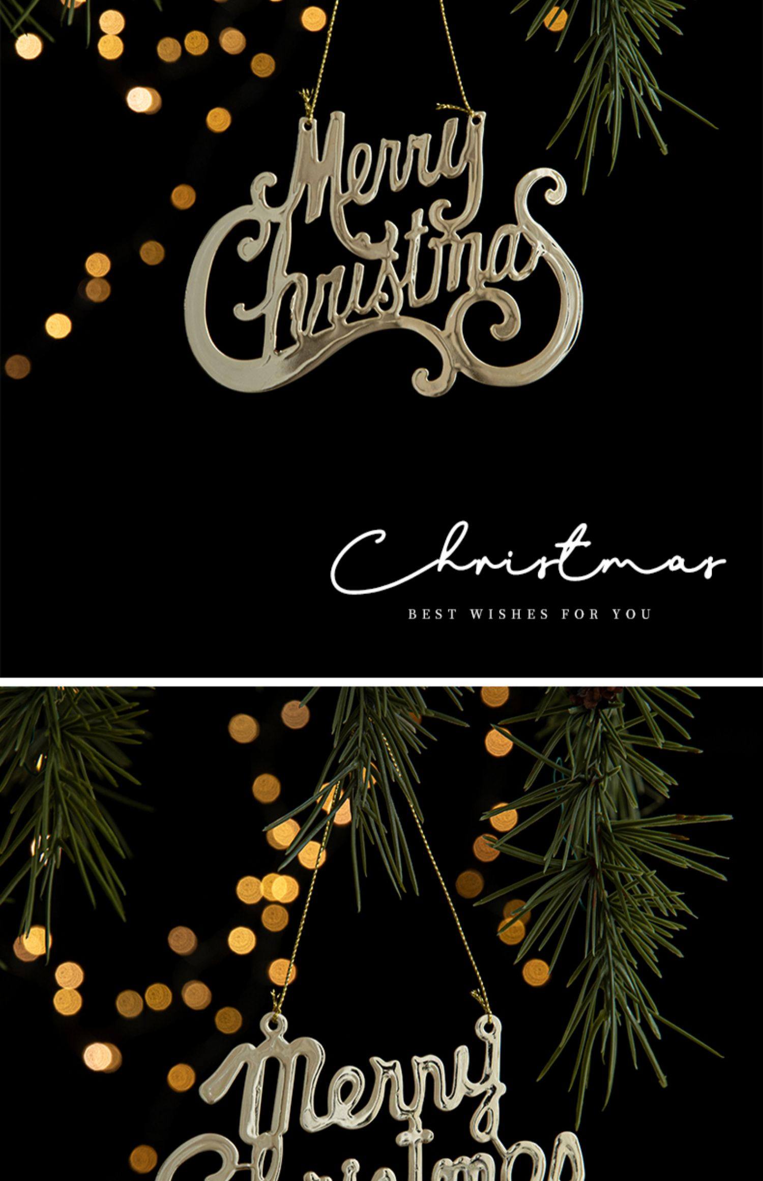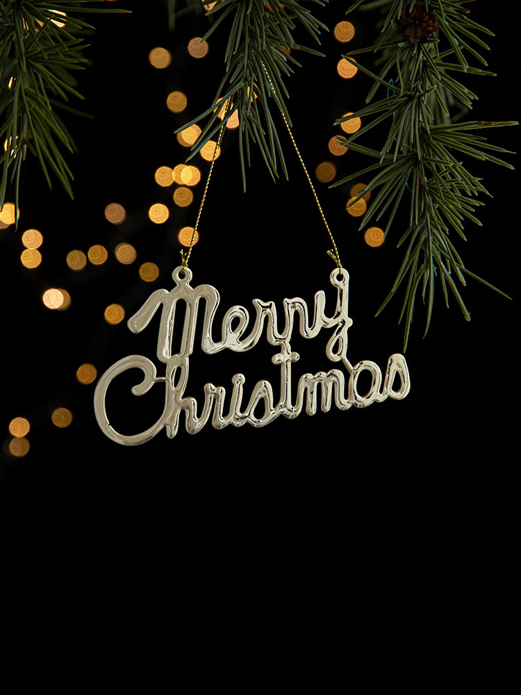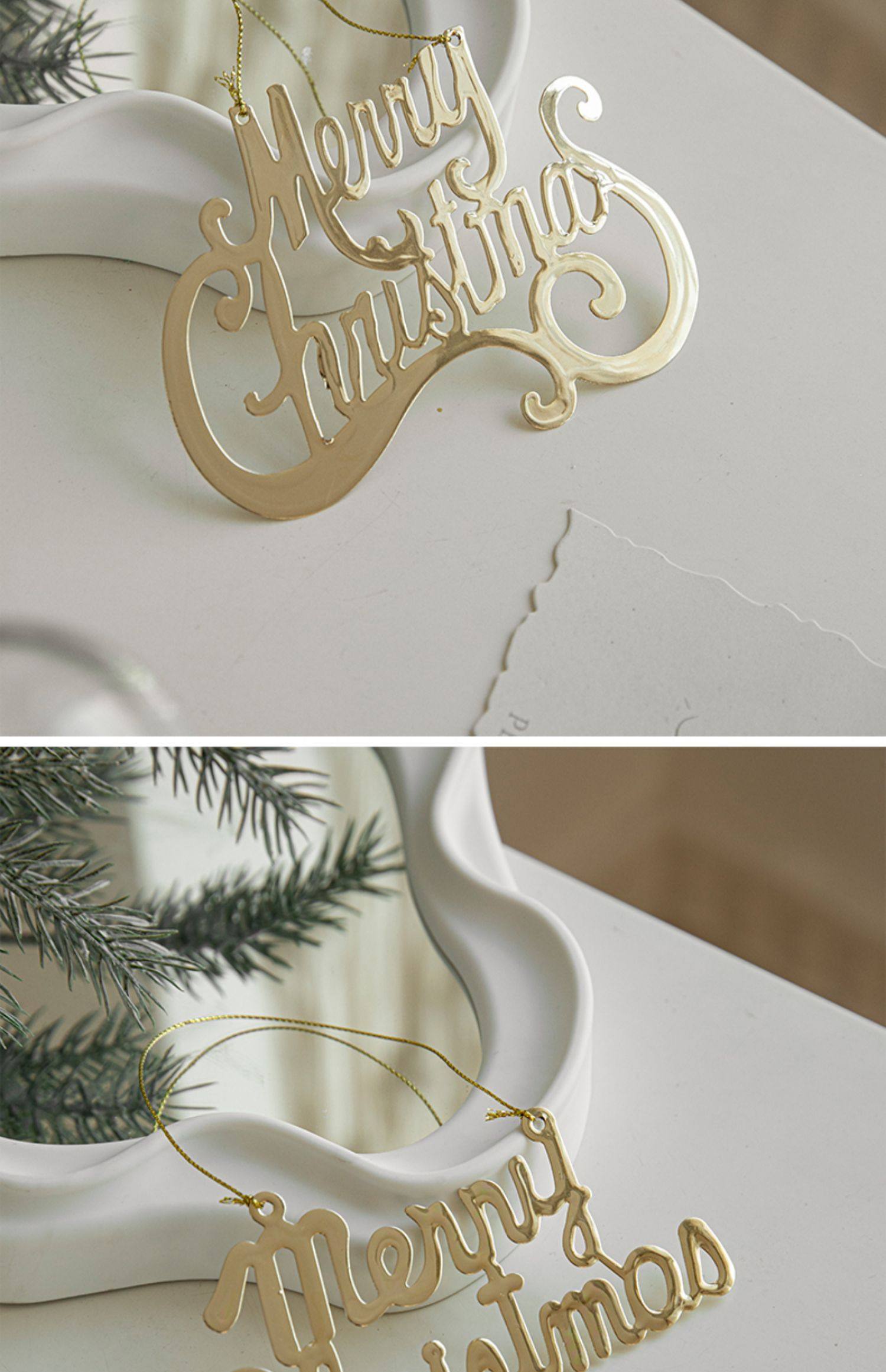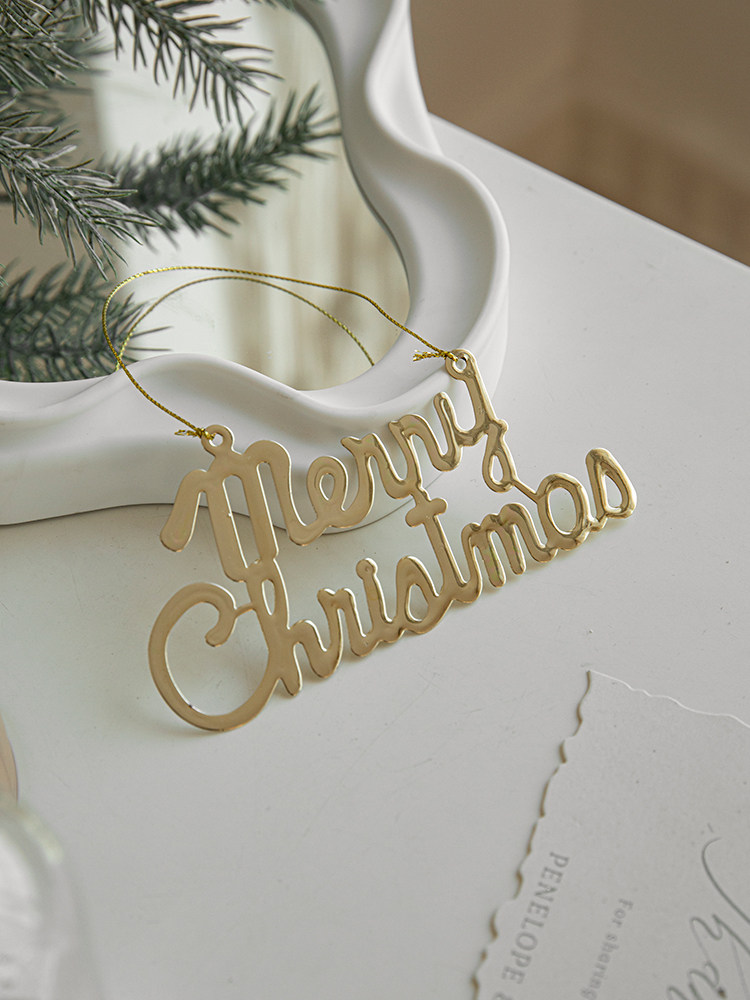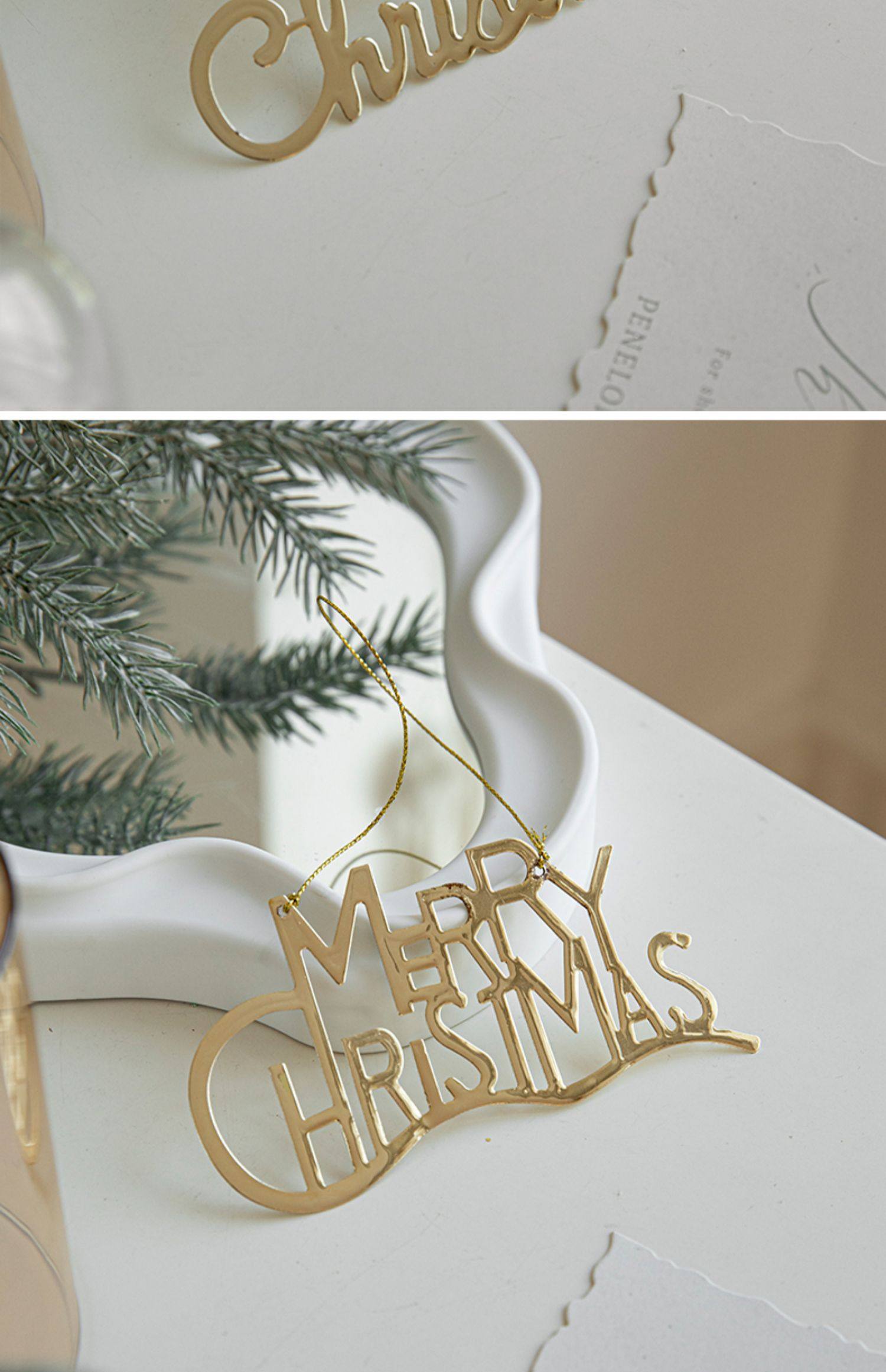 圣诞节金色电镀铁艺字母牌圣诞树挂件圣诞节装饰花环配件节日布置