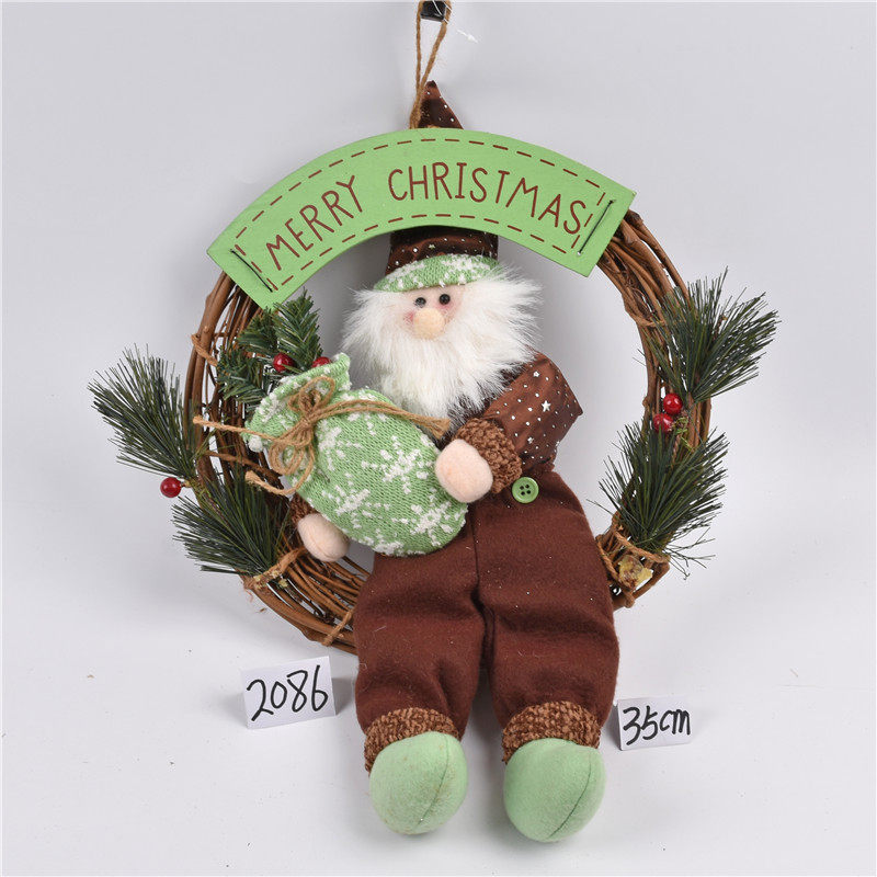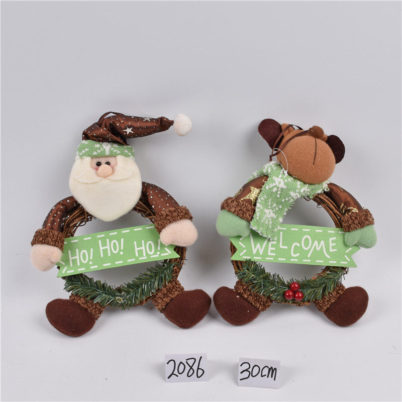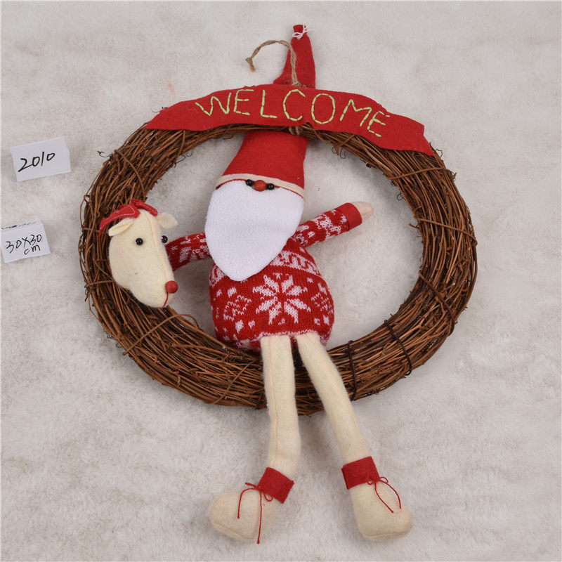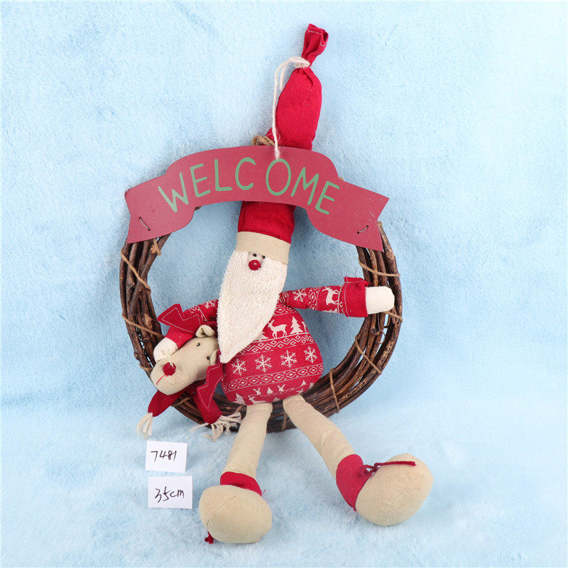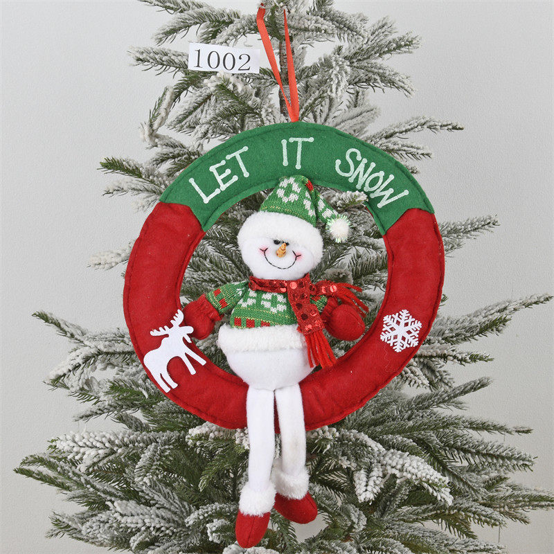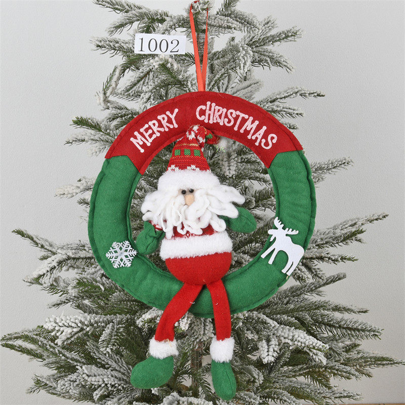 圣诞装饰品花环门挂布艺编织老公公雪人花环花圈精灵挂件雪人挂牌
