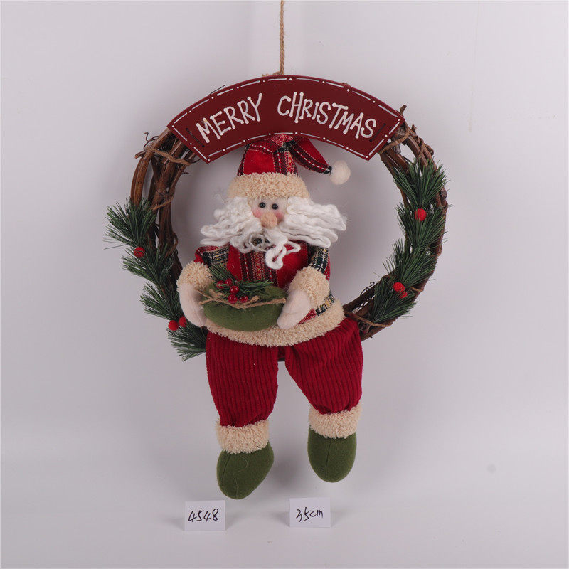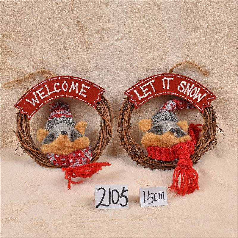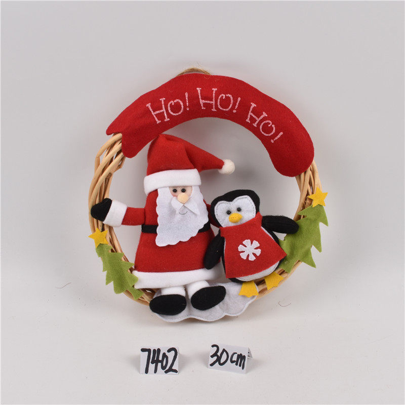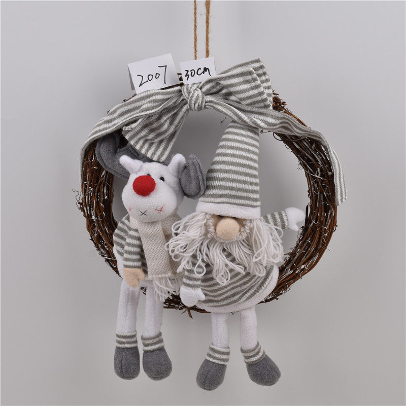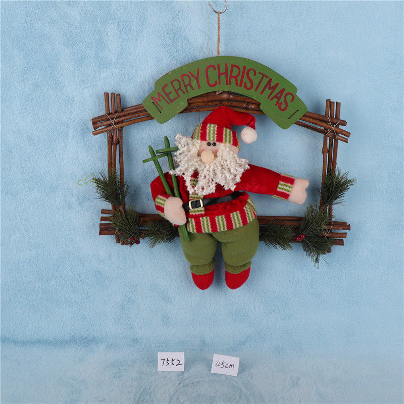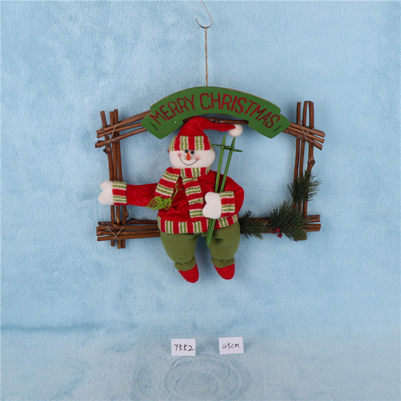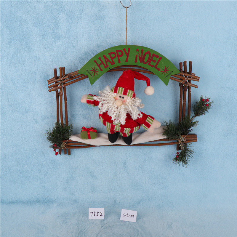 圣诞装饰品花环门挂布艺编织老公公雪人花环花圈精灵挂件雪人挂牌