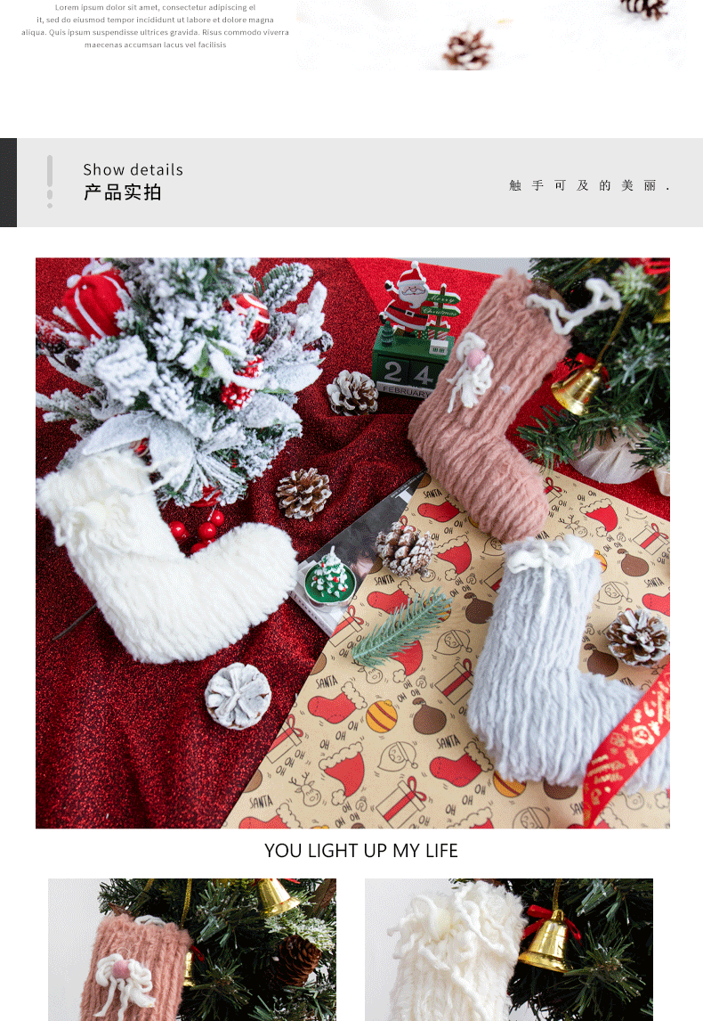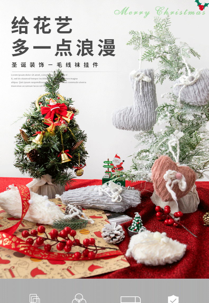 圣诞节装饰圣诞挂件圣诞树配件针织袜子爱心小挂件商场酒店银行