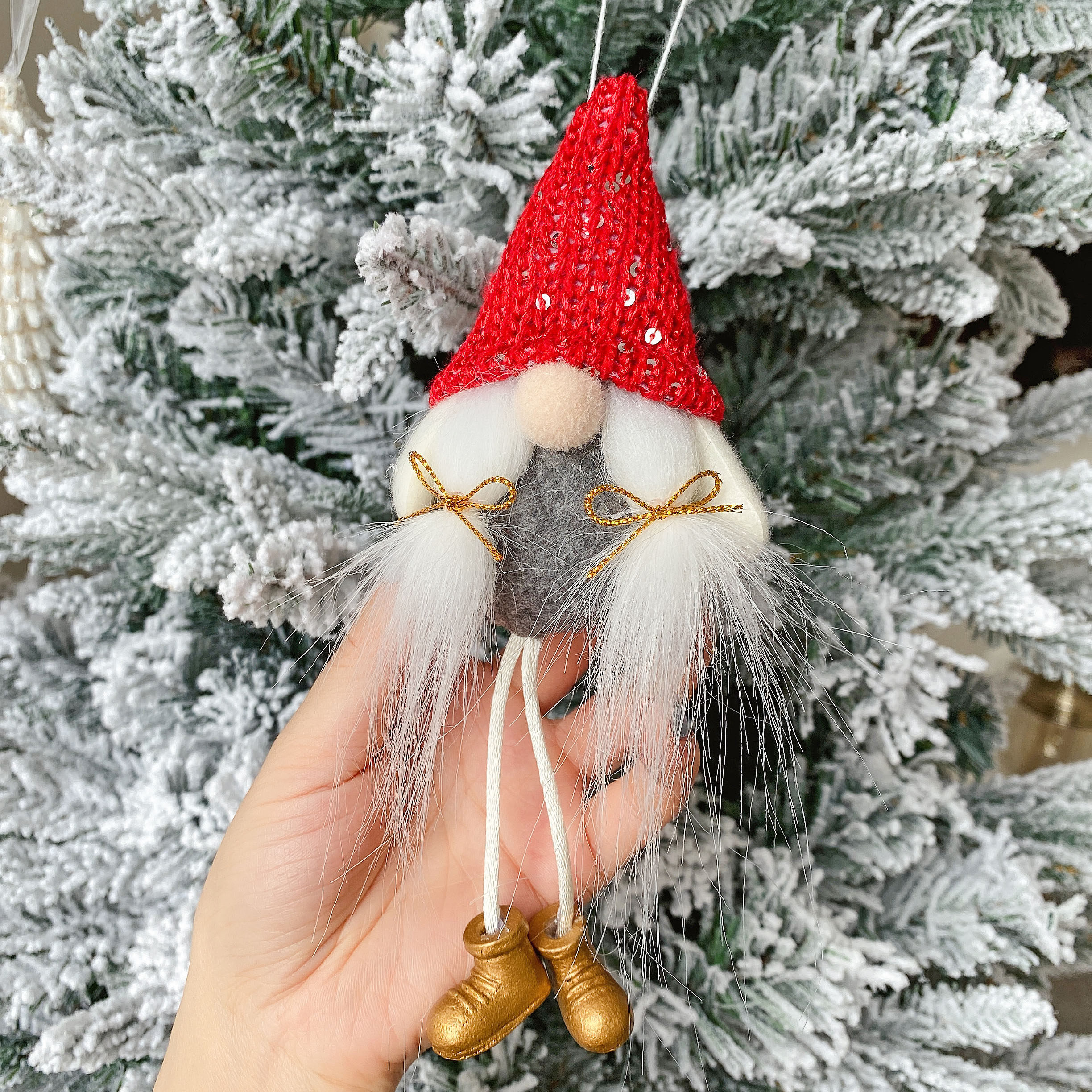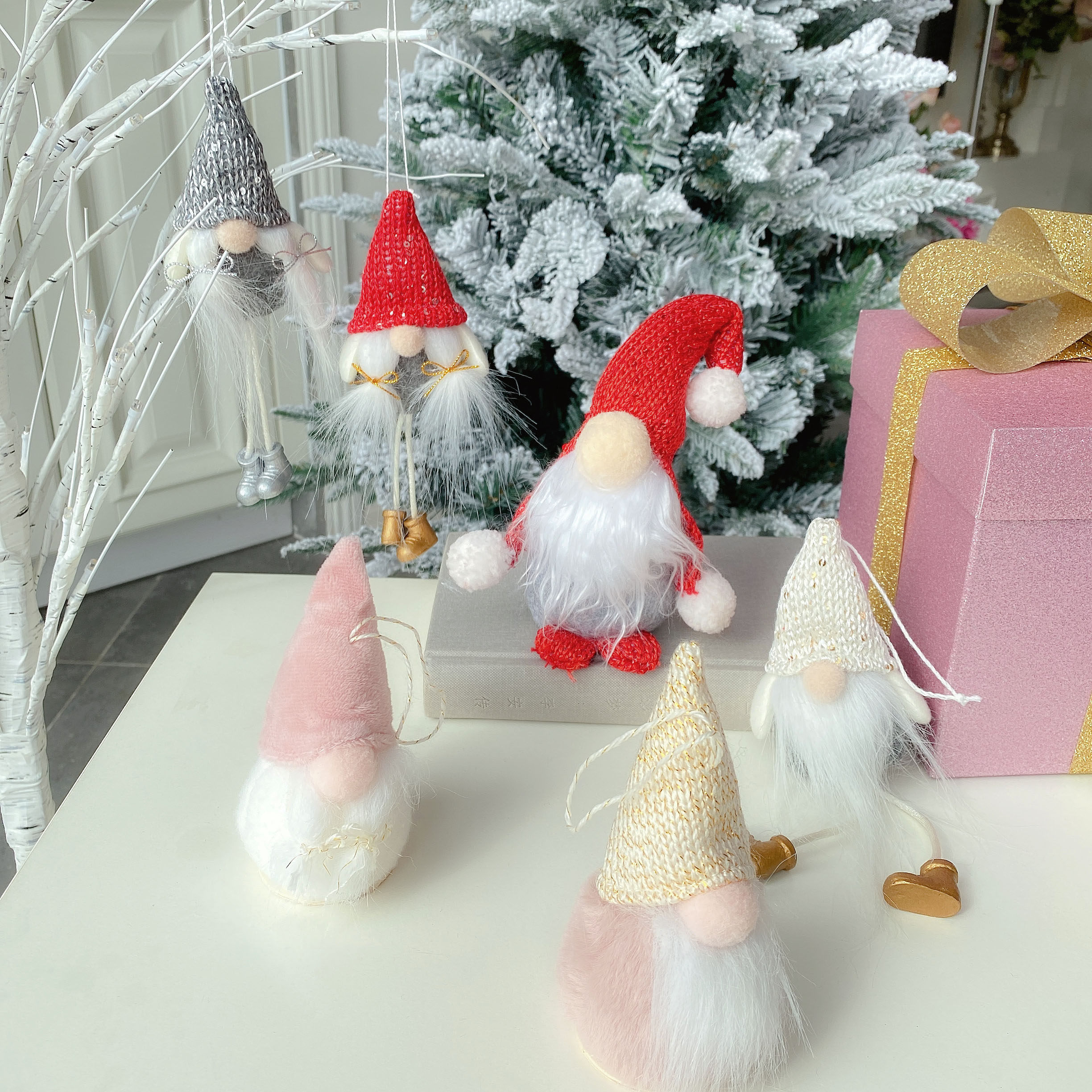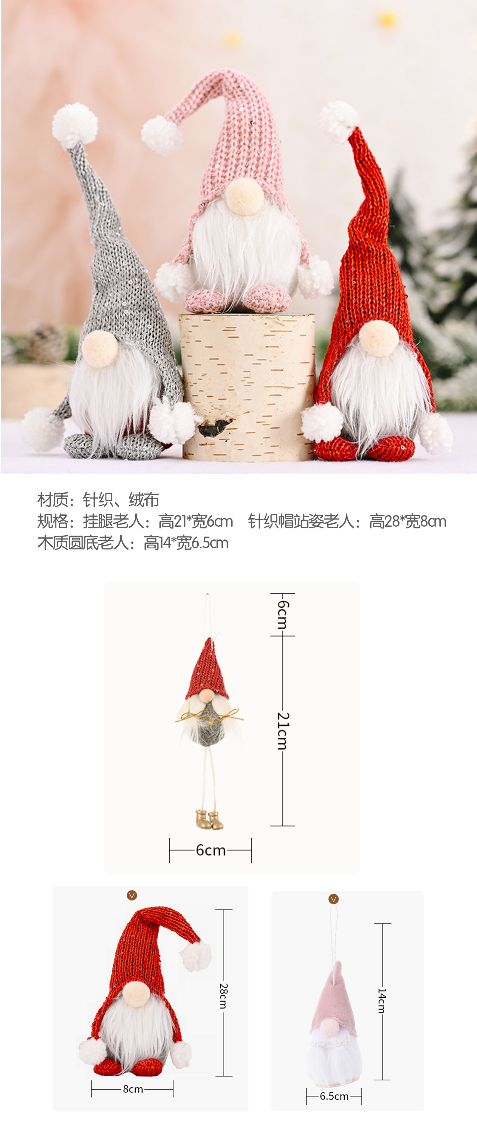 圣诞季 创意毛绒针织挂腿圣诞老人挂件无脸娃娃圣诞老人公仔玩偶