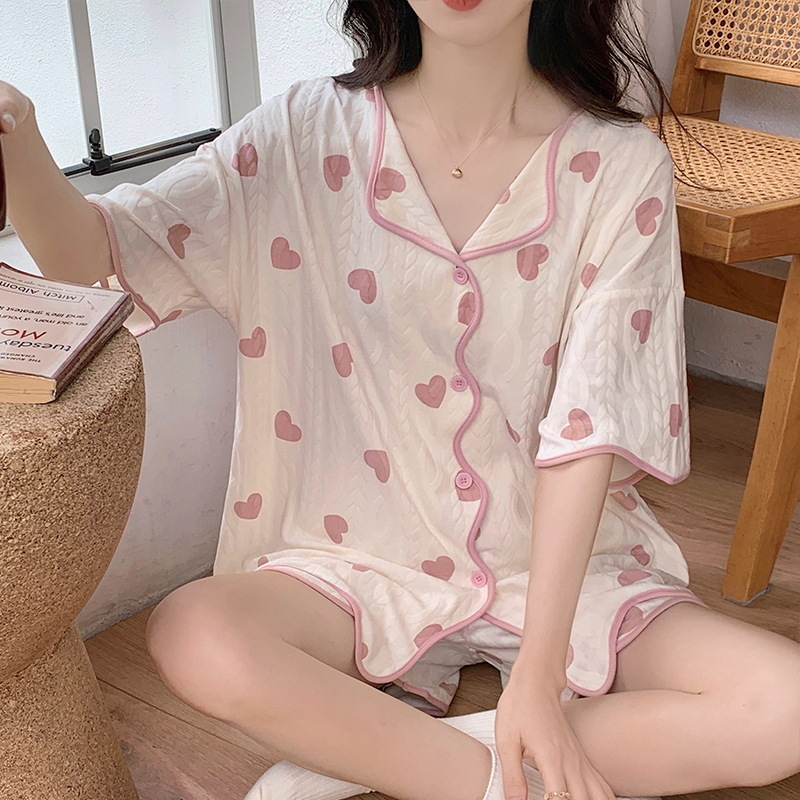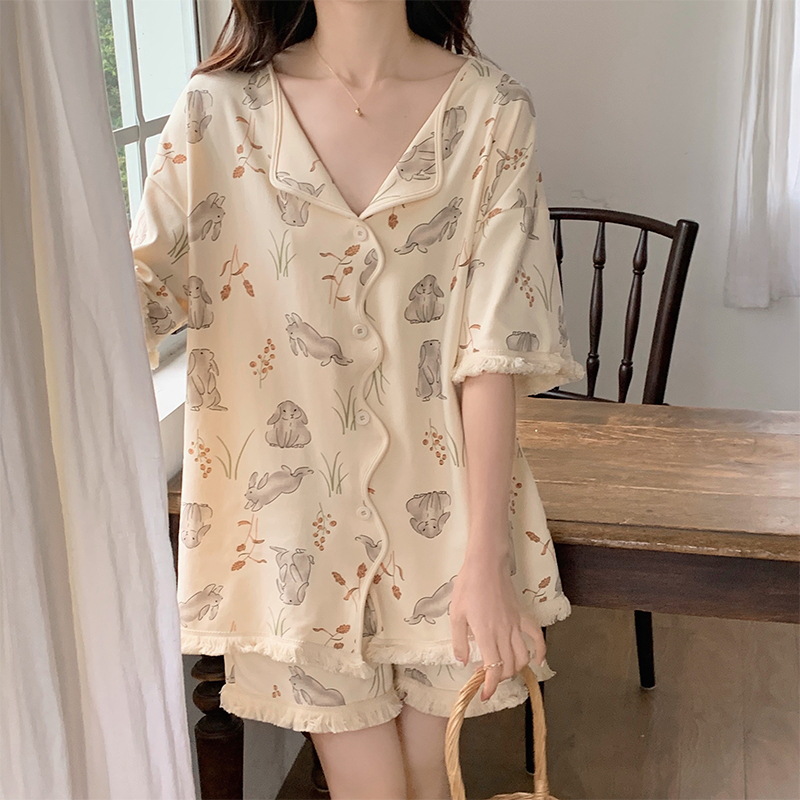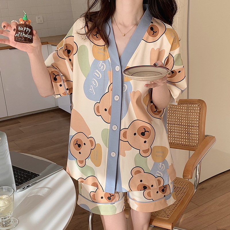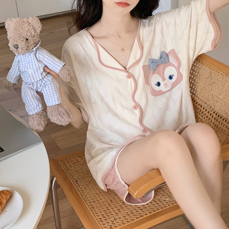 睡衣女夏季短袖短裤薄款韩版ins风甜美卡通家居服套装可外穿批发
