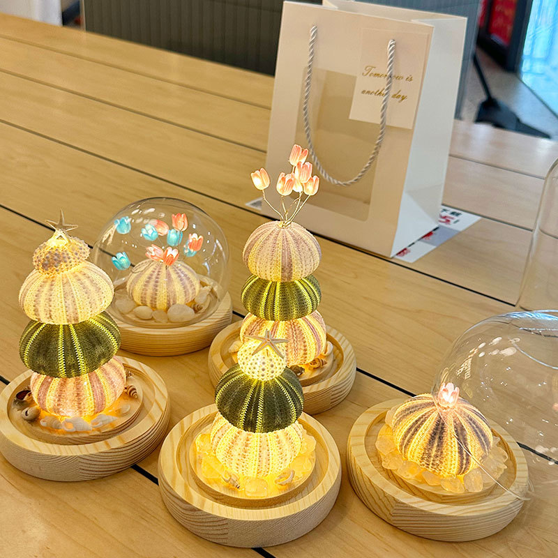 创意贝壳海胆手工diy材料包小夜灯卧室装饰礼品摆件女神节礼物