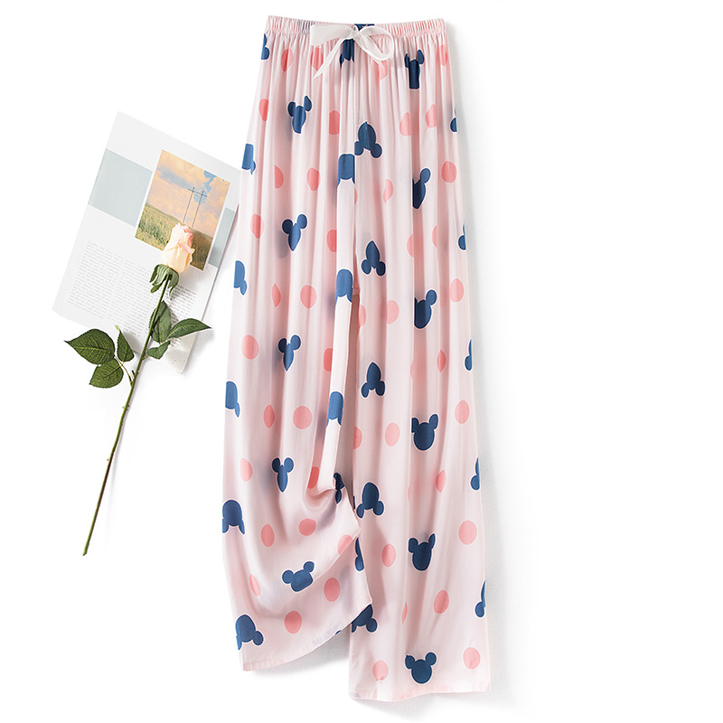 棉绸睡裤女夏人造棉薄款网红阔腿裤春秋可外穿宽松家居空调长裤子