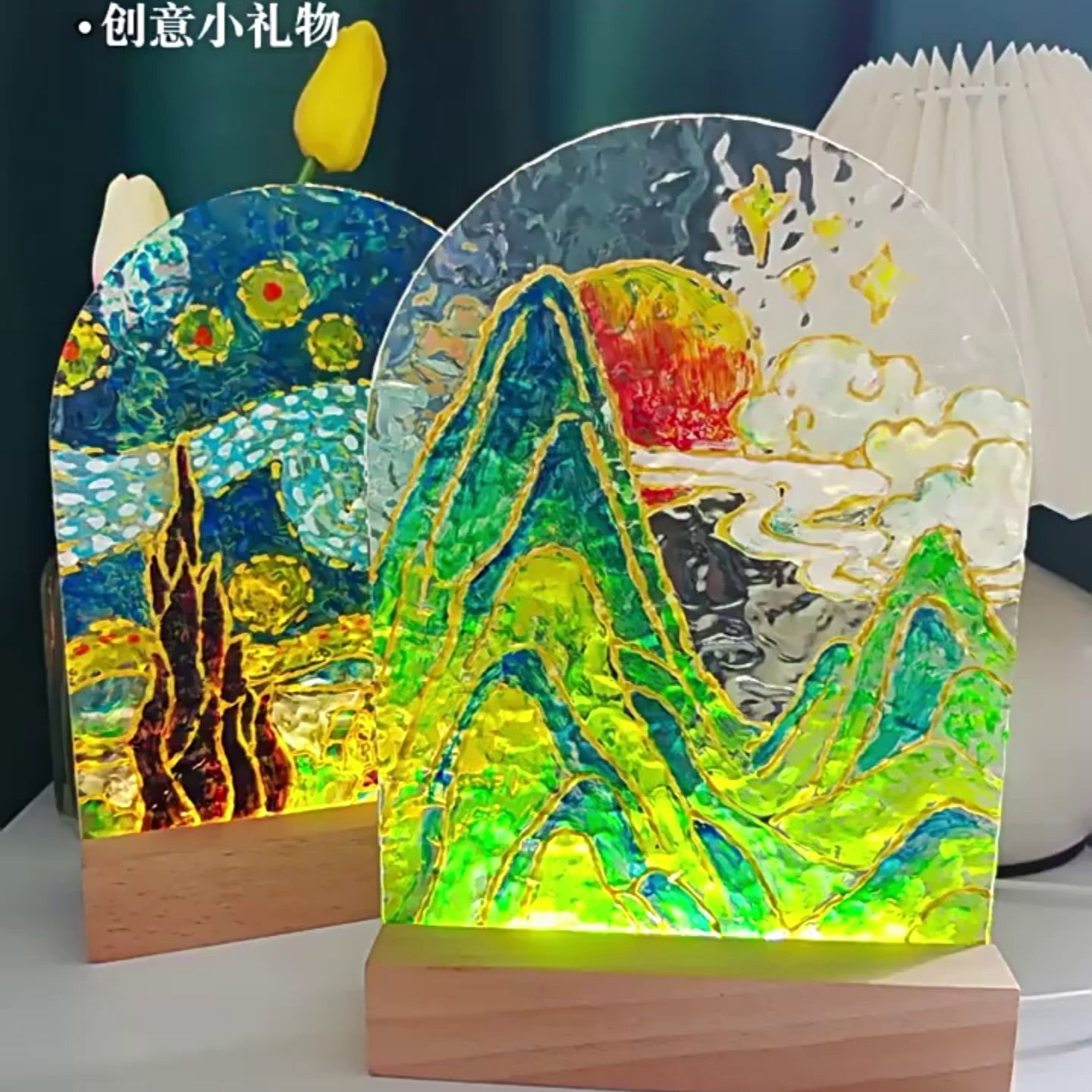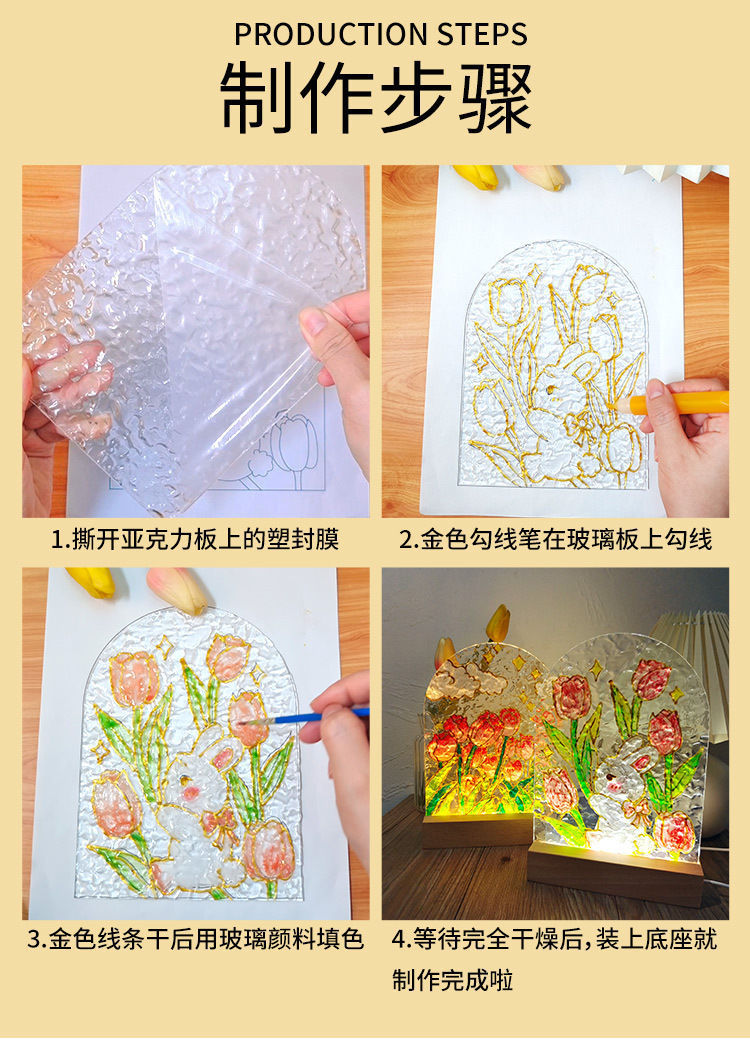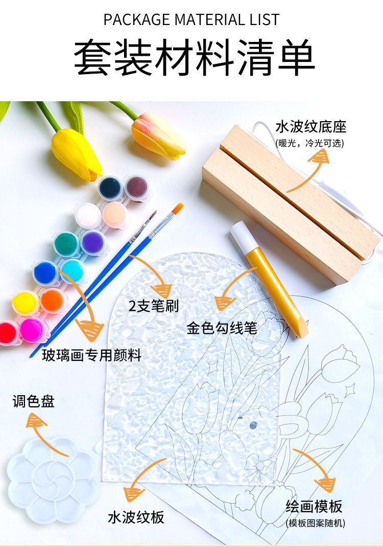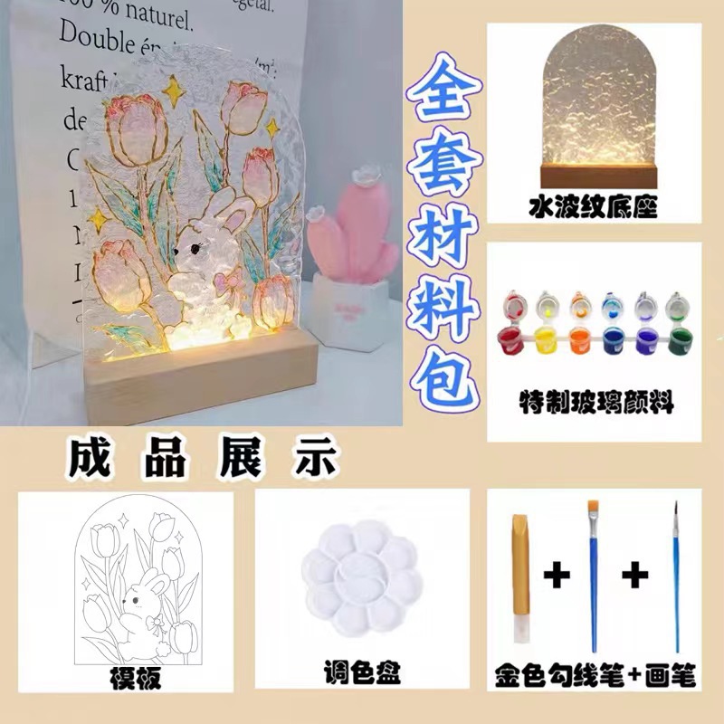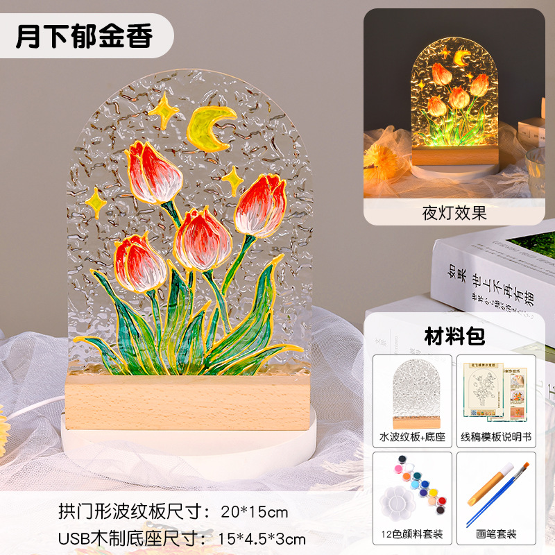 郁金香玻璃画小夜灯节日手工diy水波纹灯透明亚克力板氛围灯 礼物