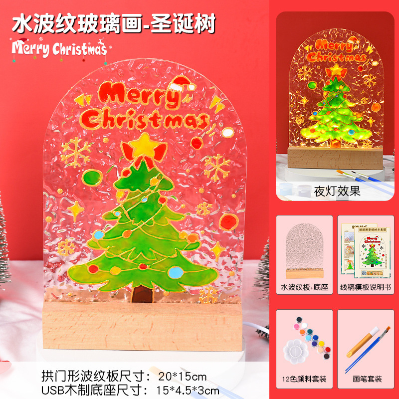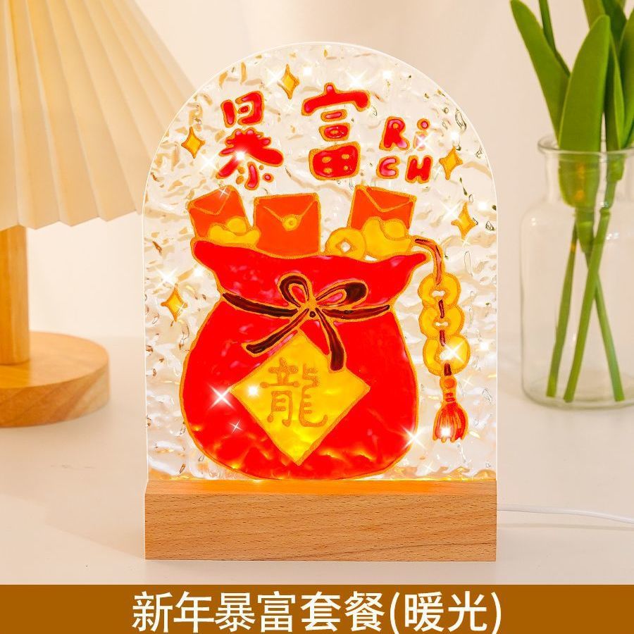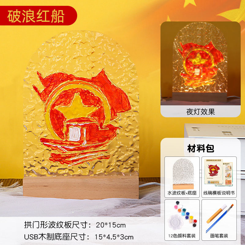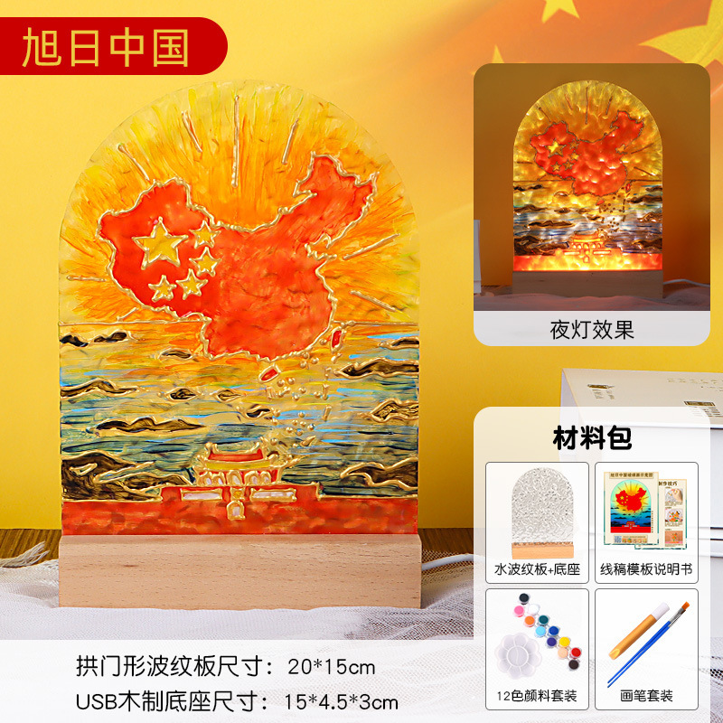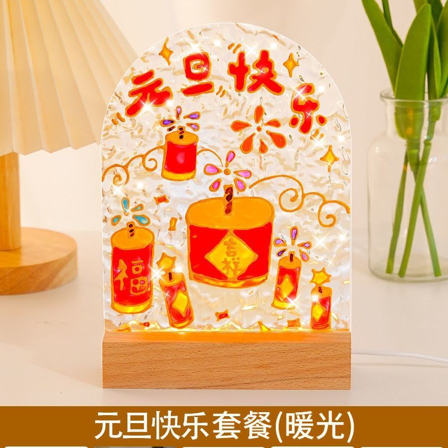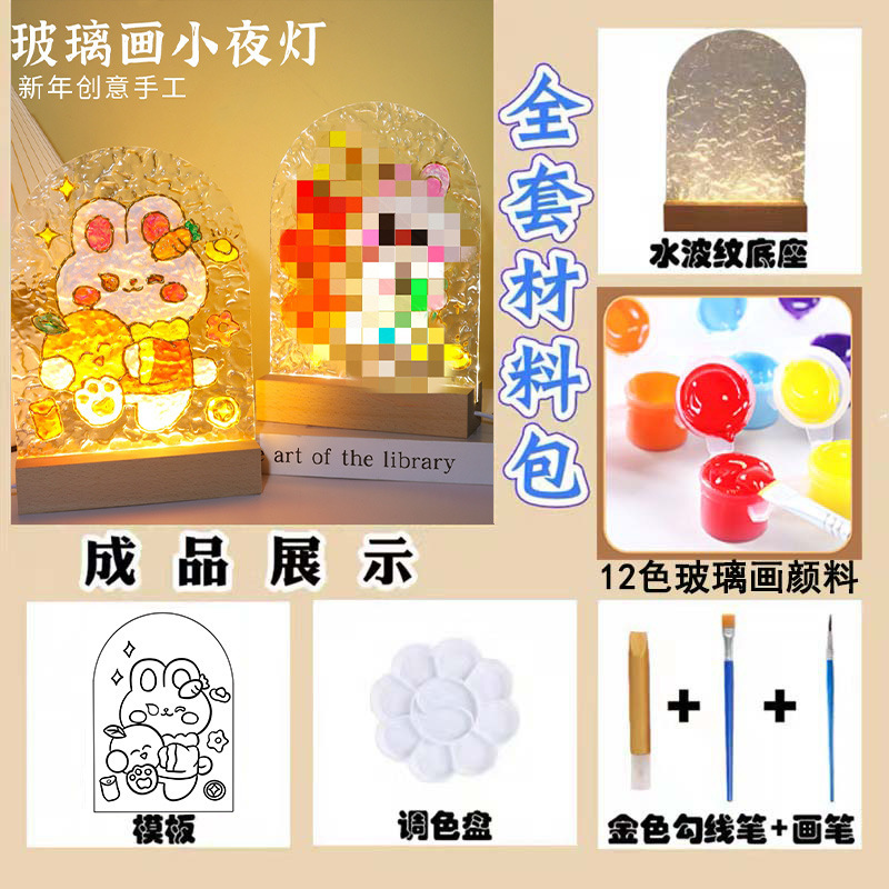 郁金香玻璃画小夜灯节日手工diy水波纹灯透明亚克力板氛围灯 礼物
