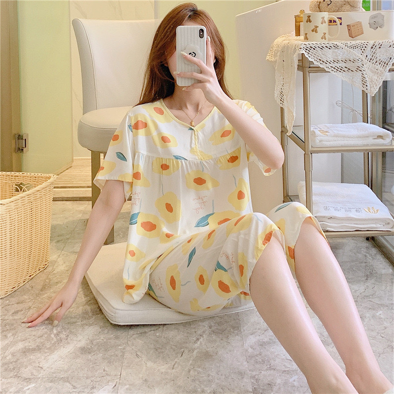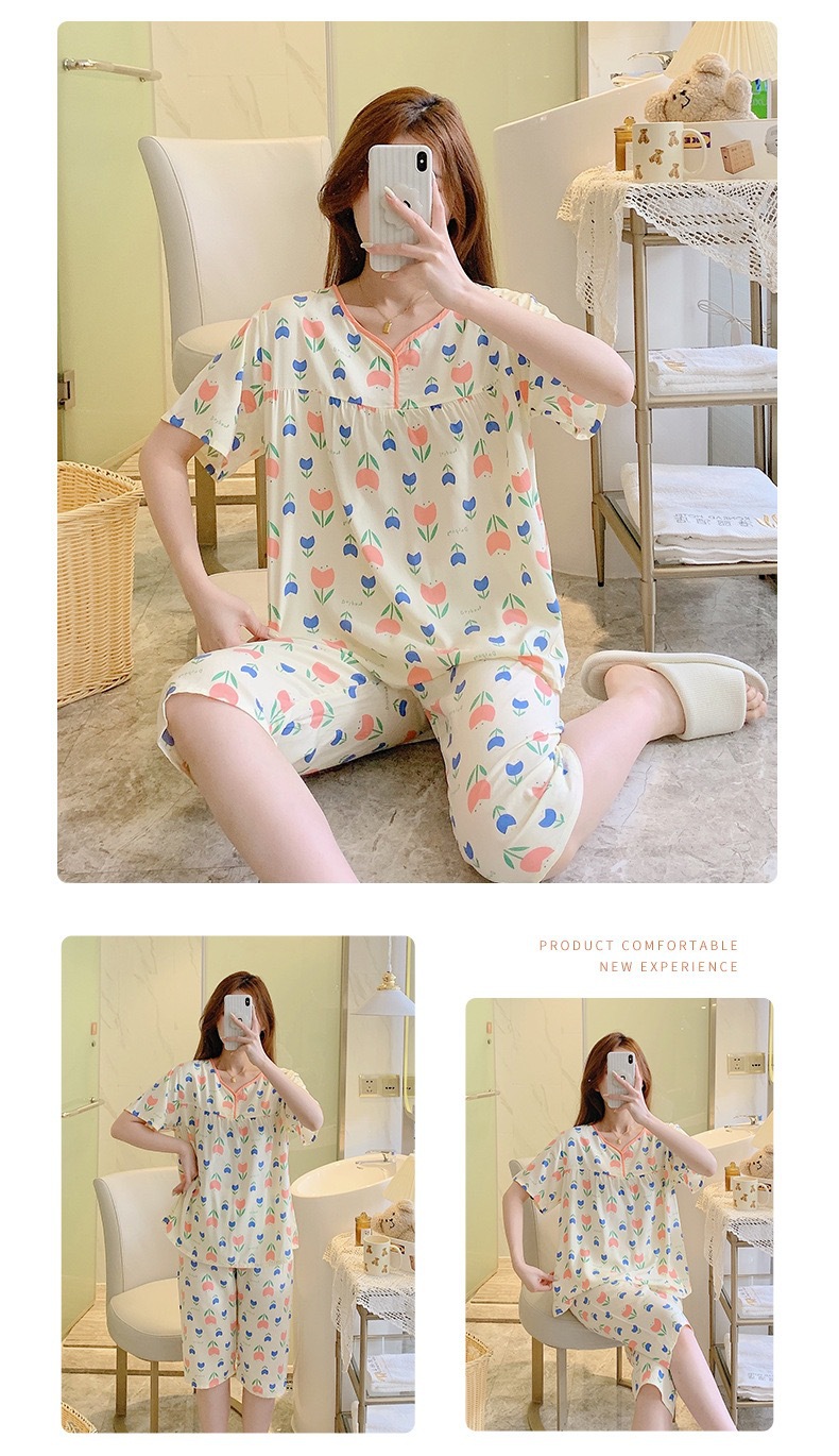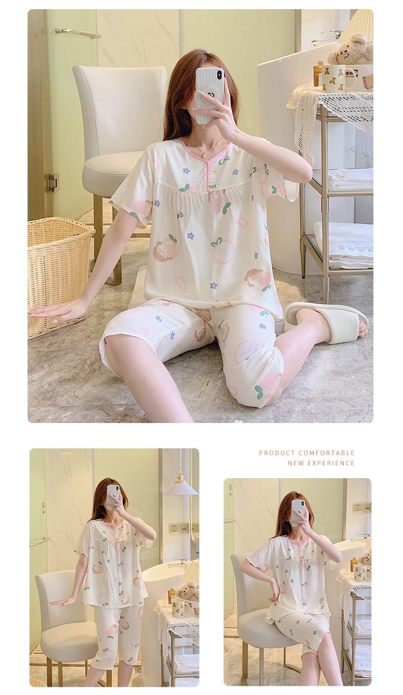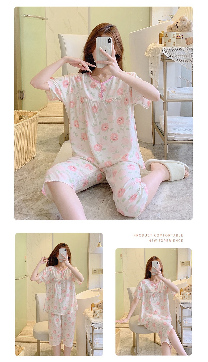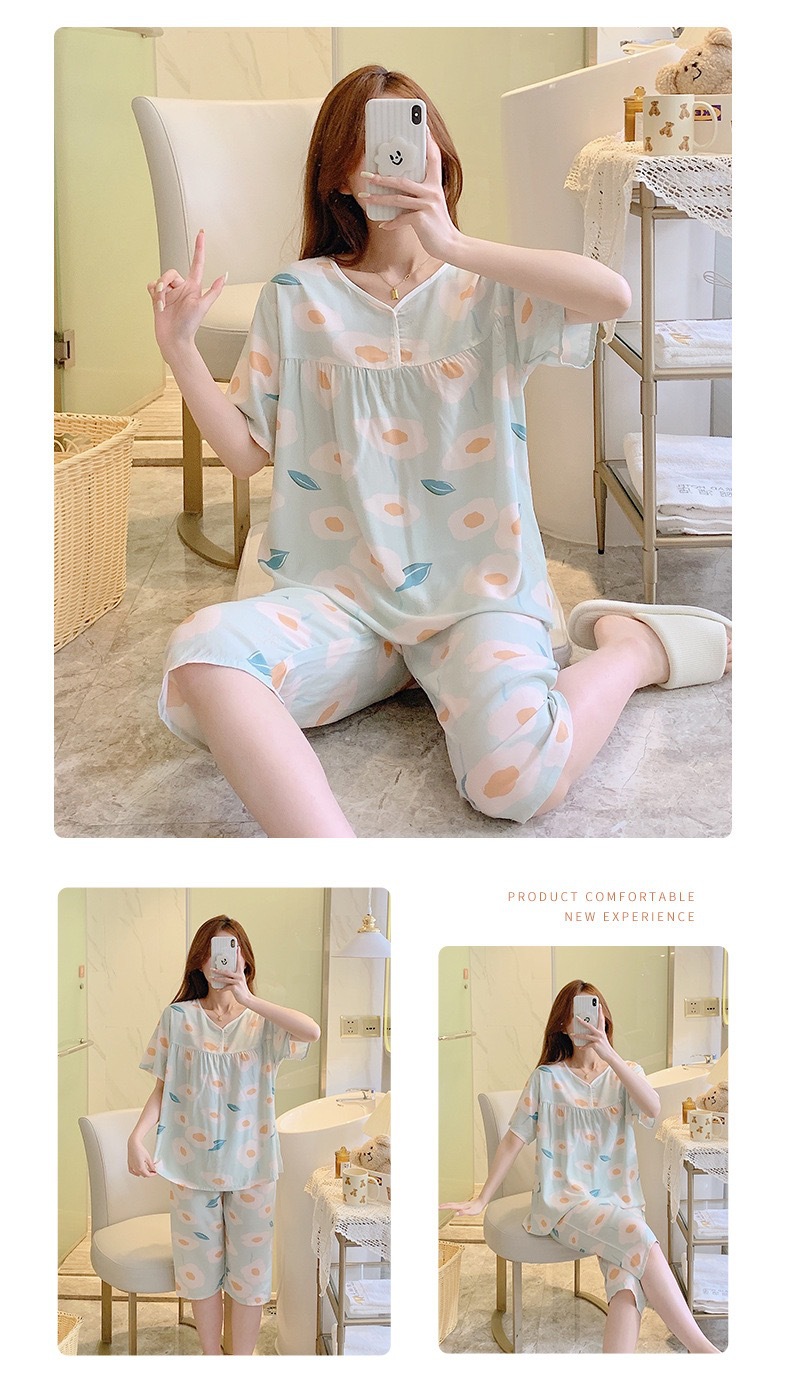 新款棉绸睡衣女夏季薄款短袖短裤家居服韩版甜美少女外穿大码套装