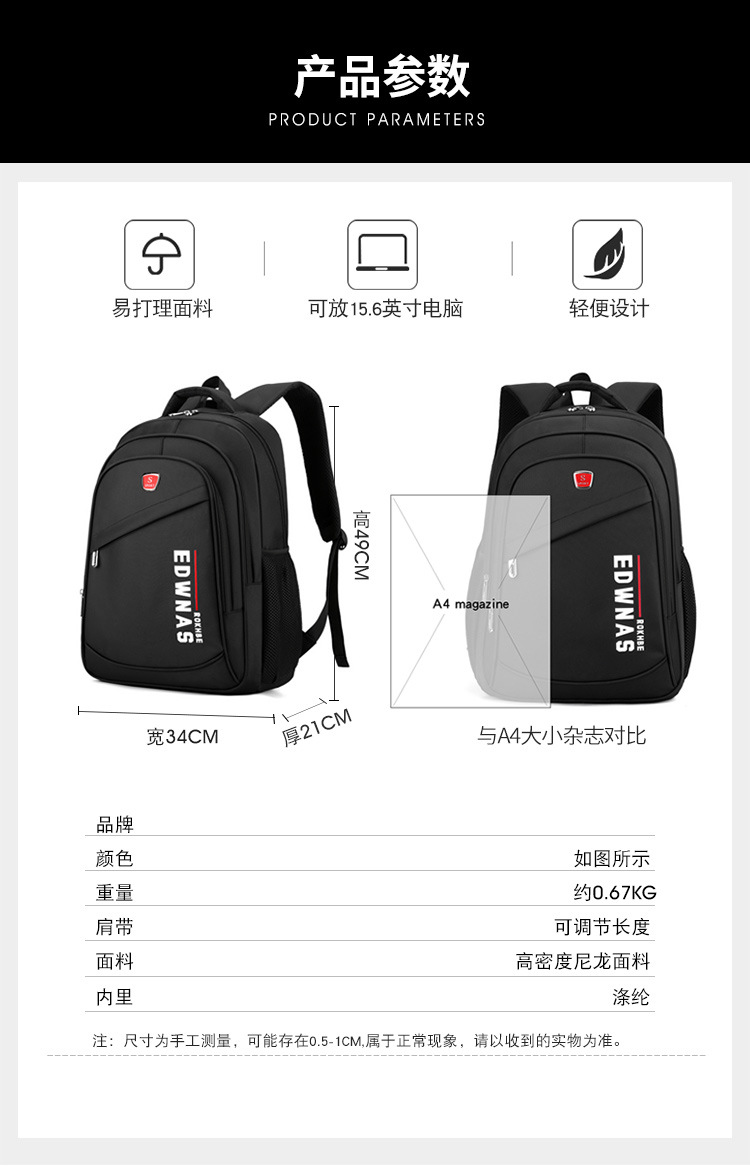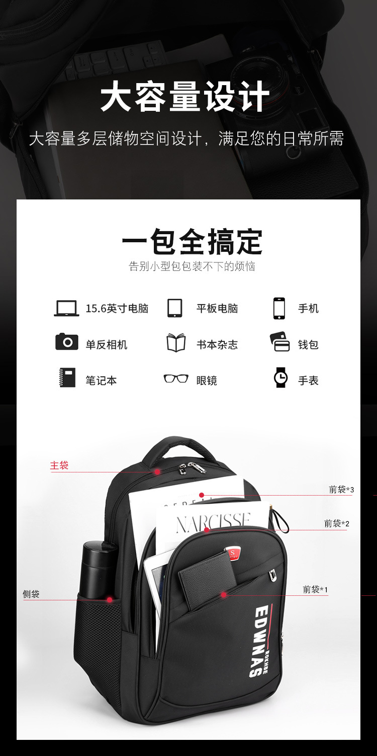 尼龙双肩包电脑背包商务男 旅行背包通勤双肩背包