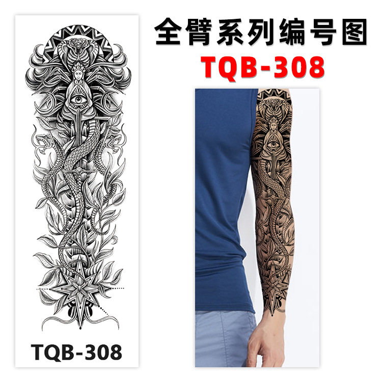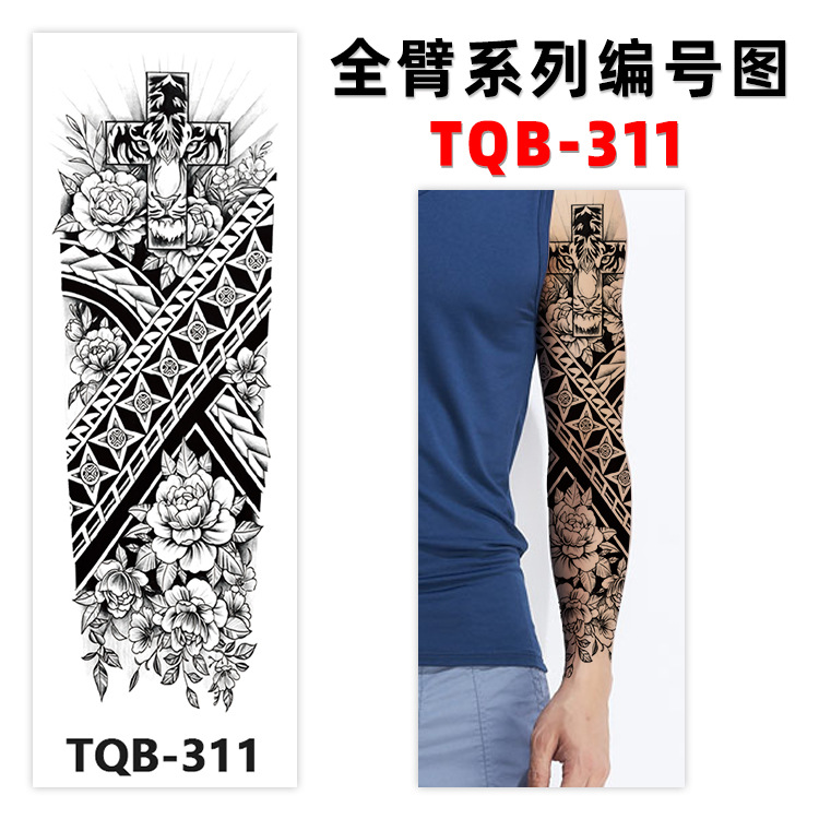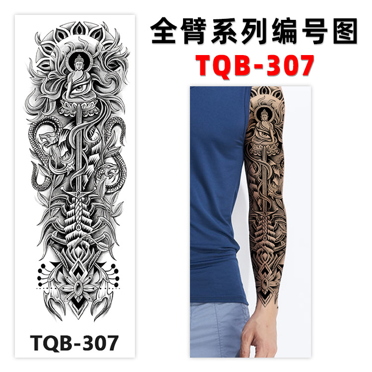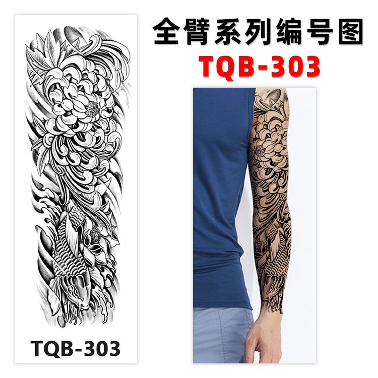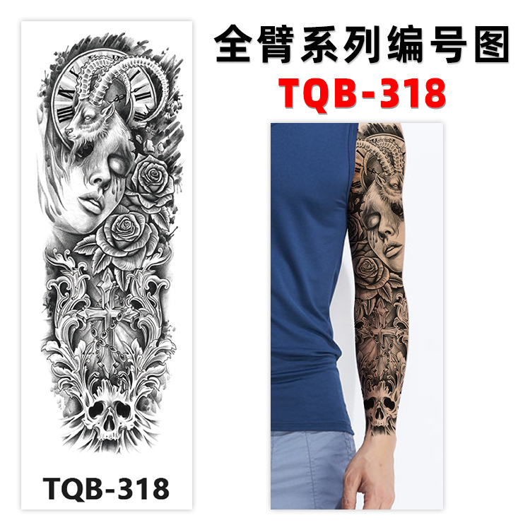 厂家现货批发全臂纹身贴男女性感大花臂贴纸帅气防水黑白动物贴