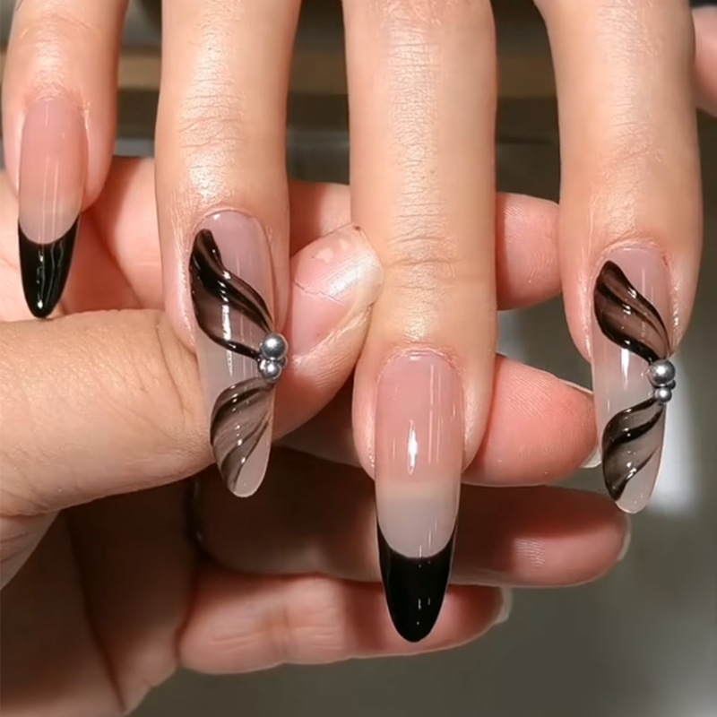 穿戴甲手工爆闪蝴蝶结小红书爆款美甲成品可拆卸指甲贴假指甲甲片