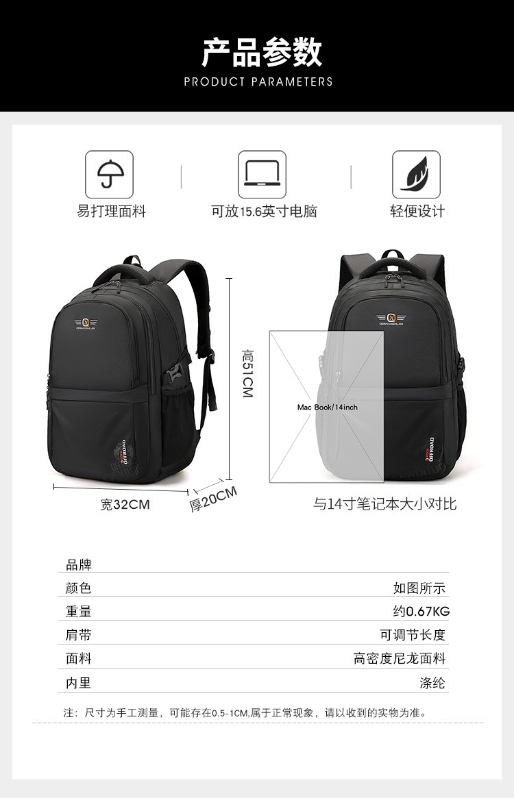双肩包高级休闲旅行行李包男女时尚商务出行电脑包学生书包