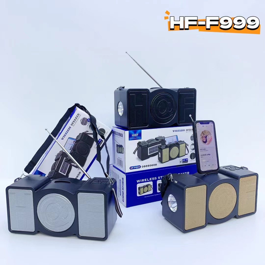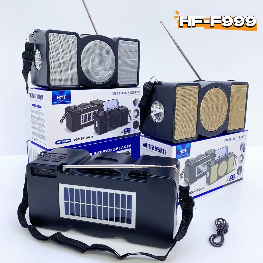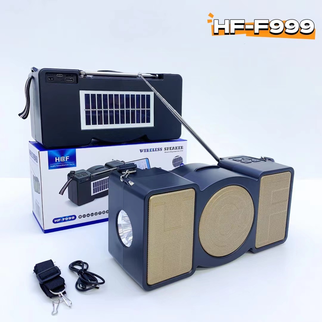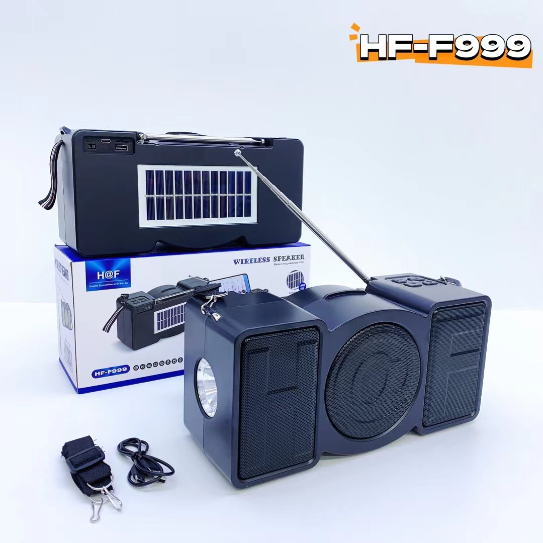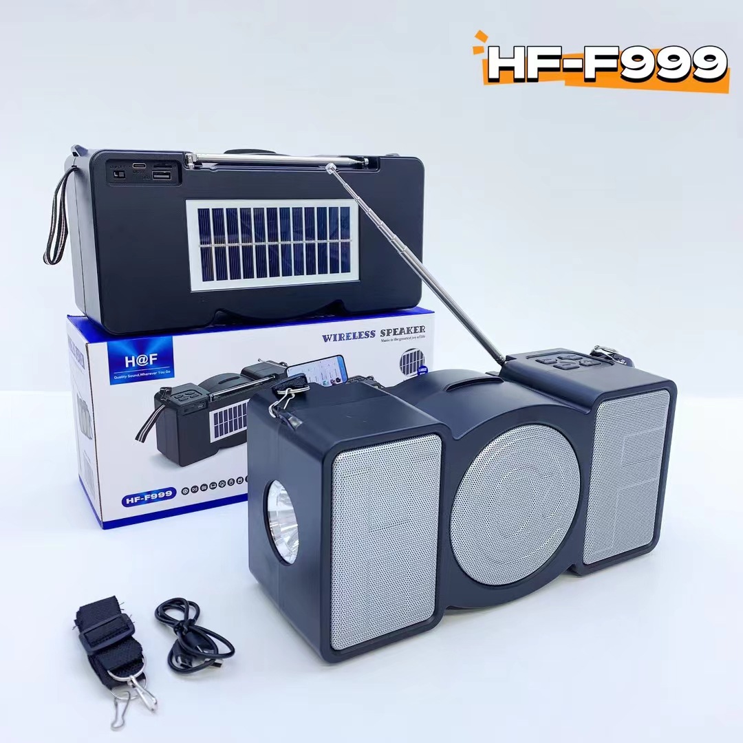 HF-F999新品热卖非洲太阳能板充电蓝牙音响带手电筒加长天线音箱