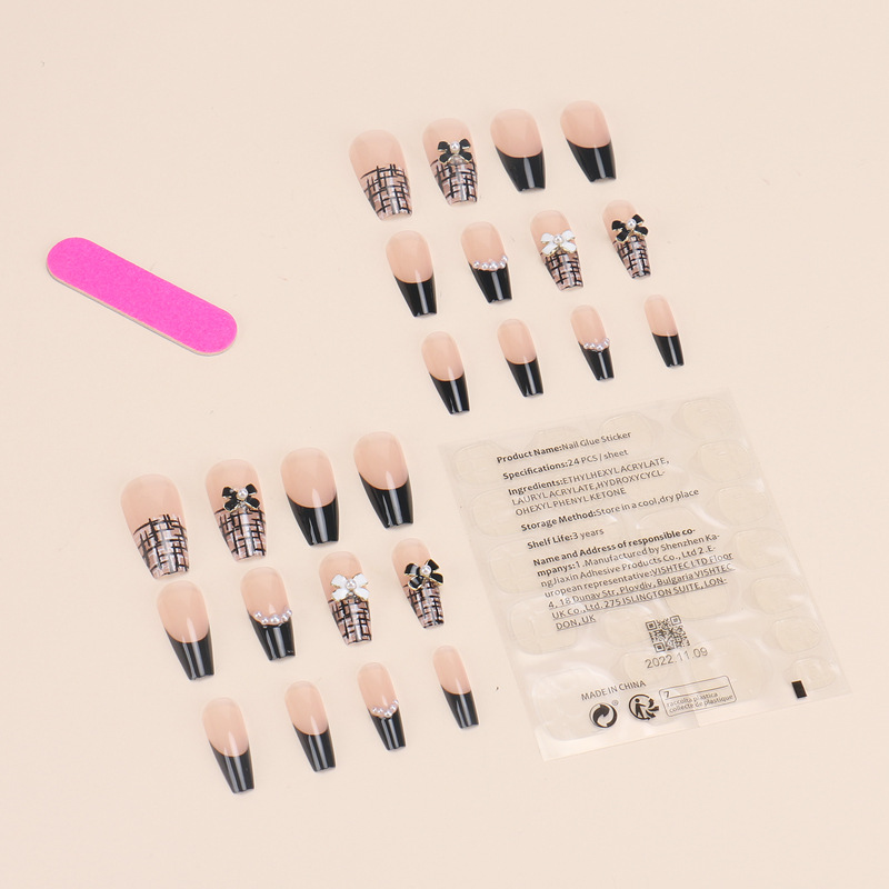 穿戴甲批发中长款黑色小香风合金蝴蝶指甲贴片可拆卸美甲成品甲片