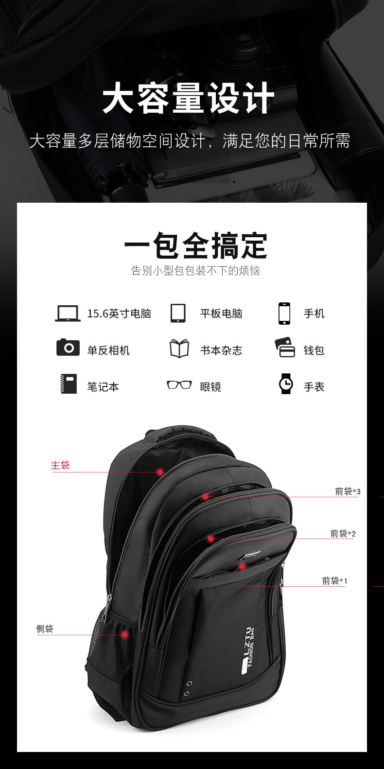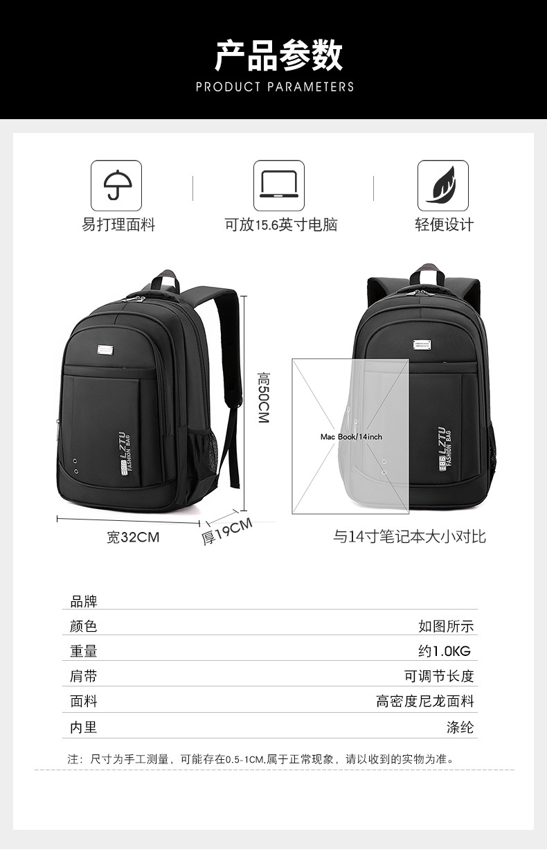 简约时尚新款牛津布双肩包男士商务电脑背包户外旅行包大学生书包