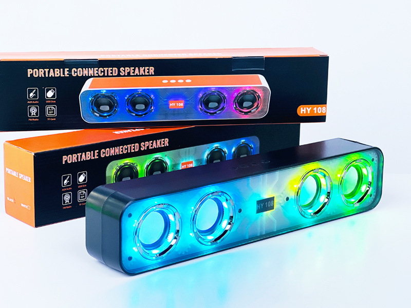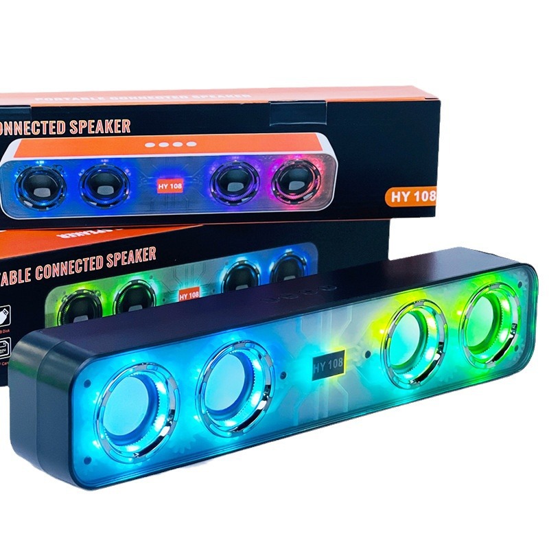 跨境HY-108炫彩机甲声霸音箱家用户外便携式长条无线蓝牙音响