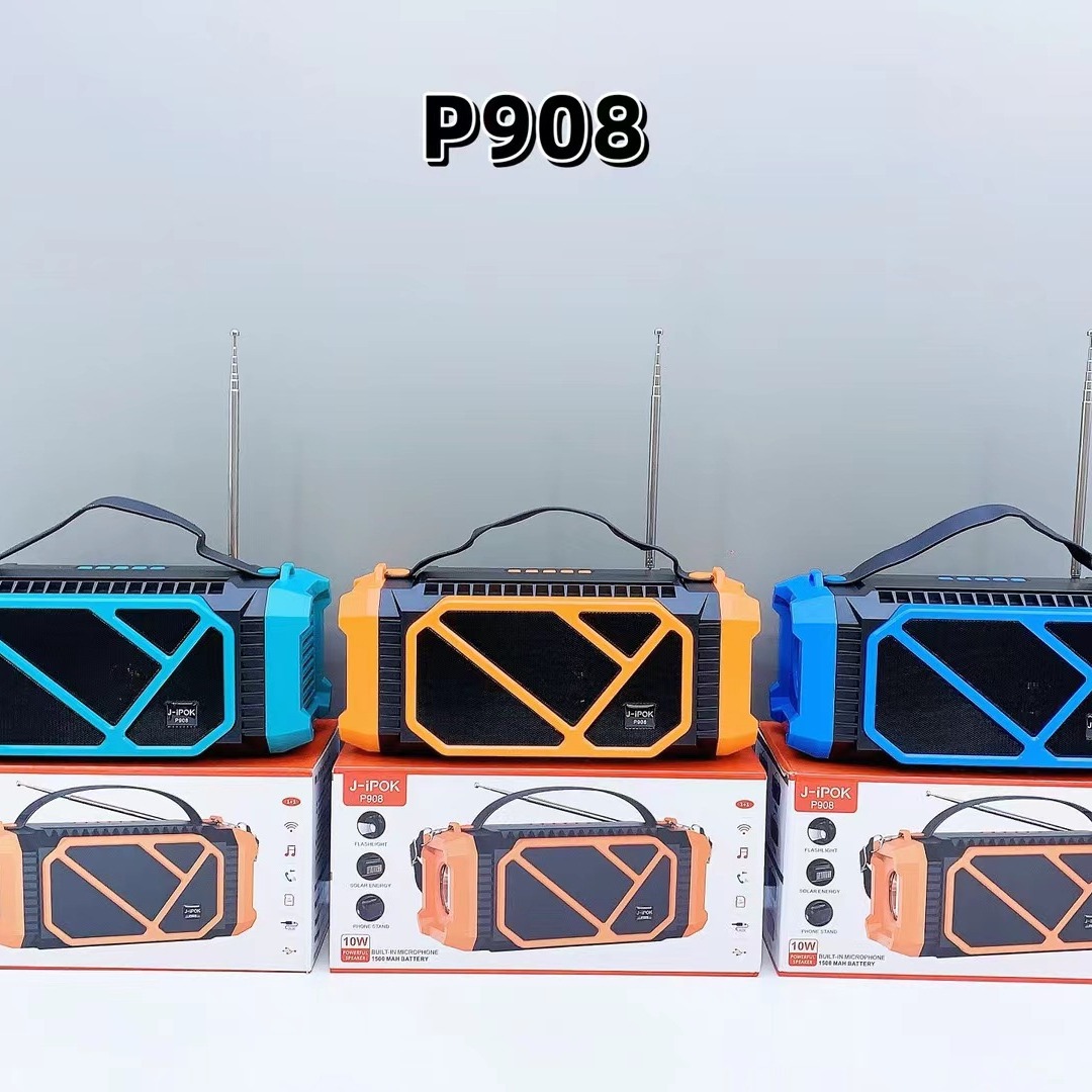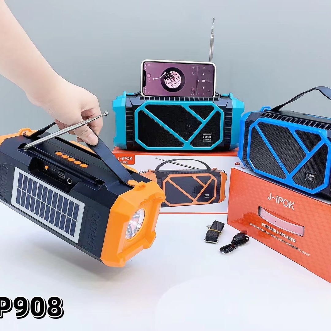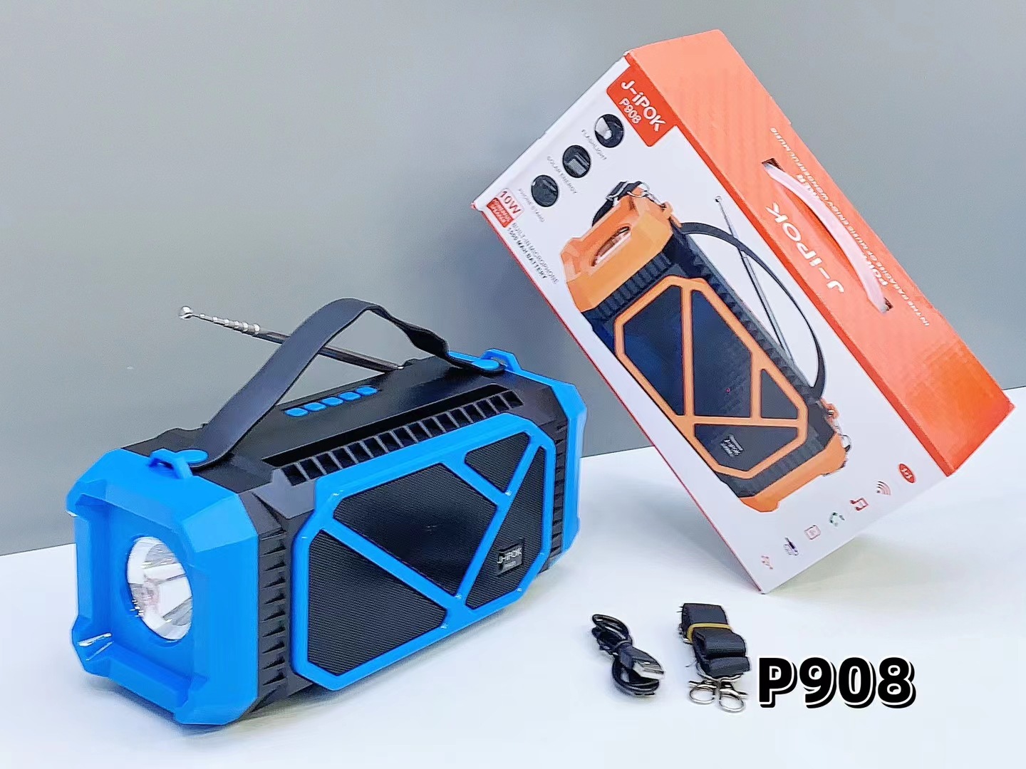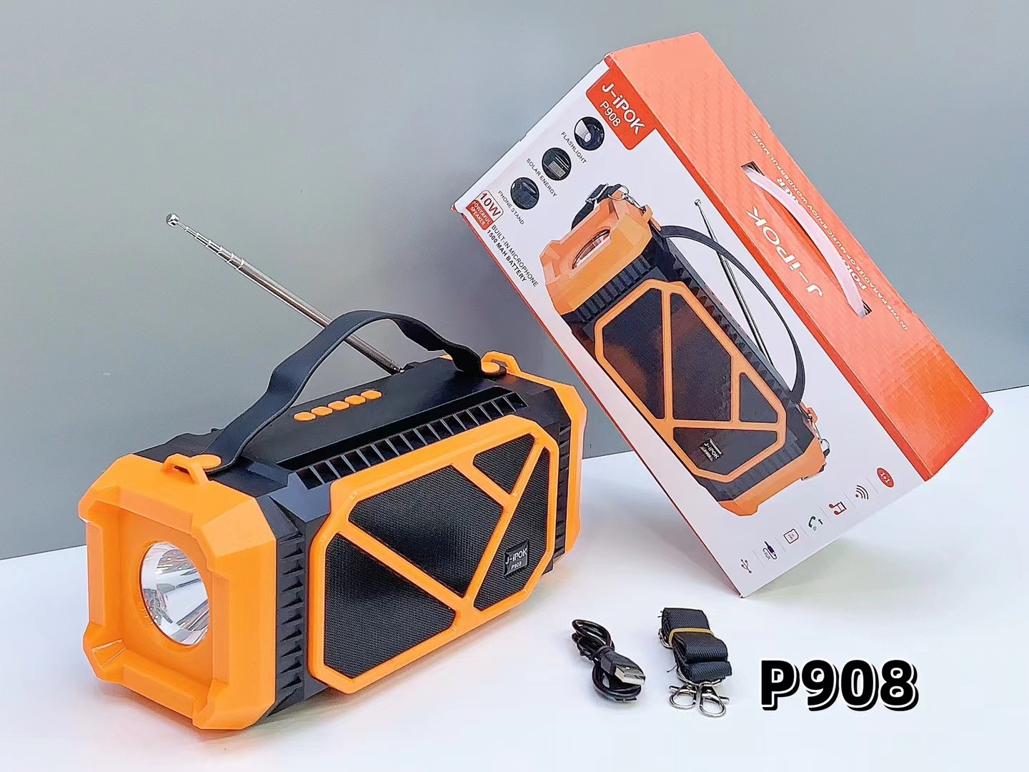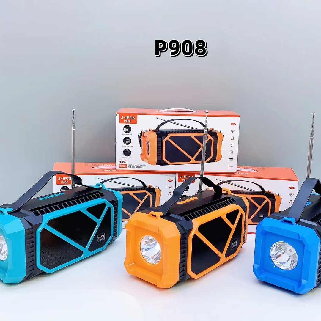 非洲新款P908蓝牙音箱插卡天线收音机手提户外大手电筒太阳能音响