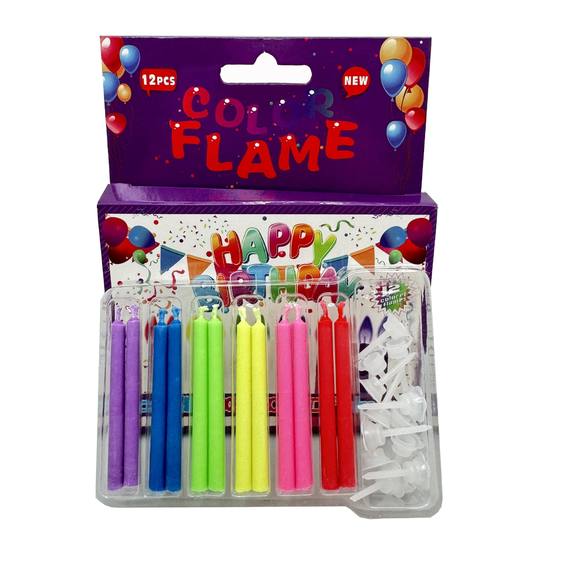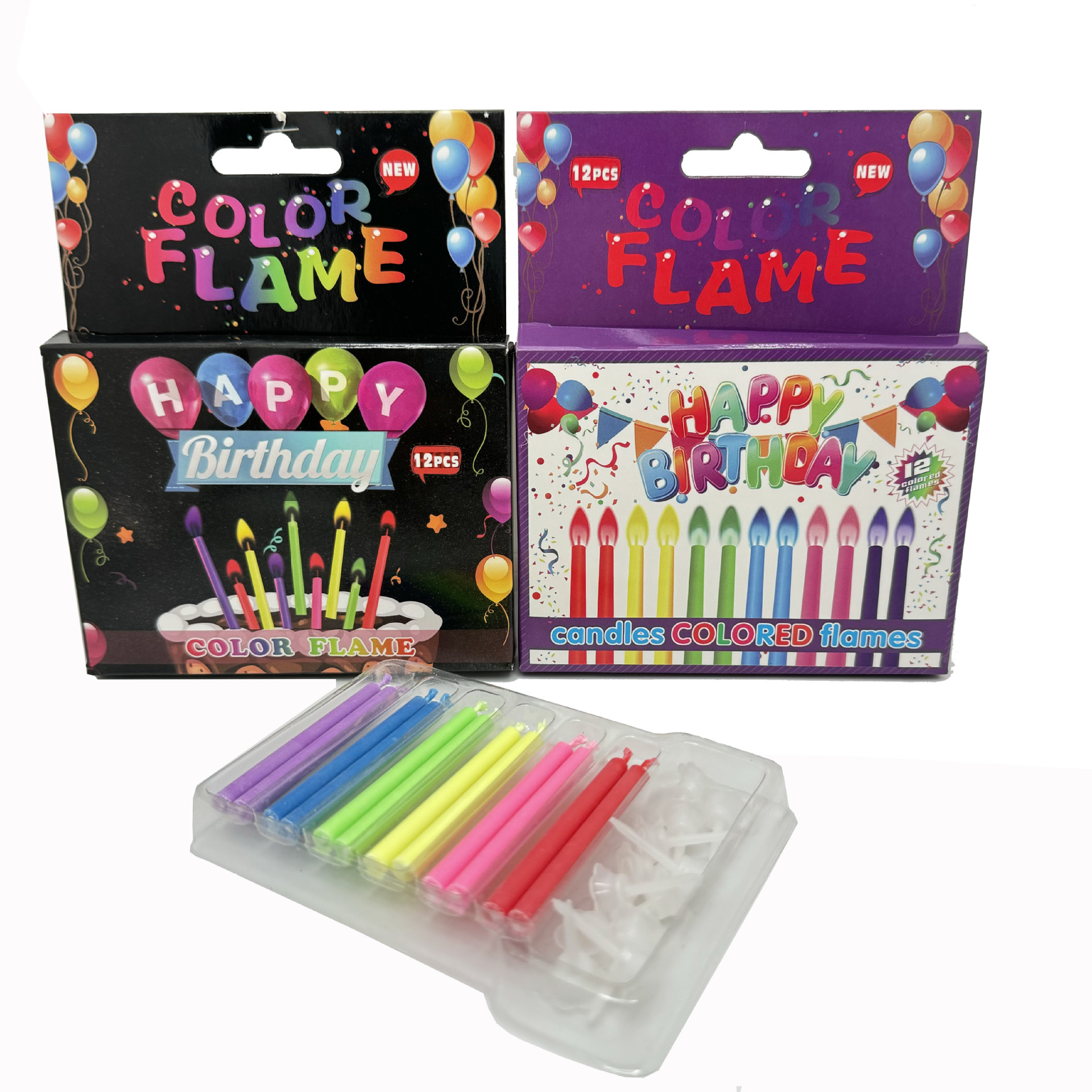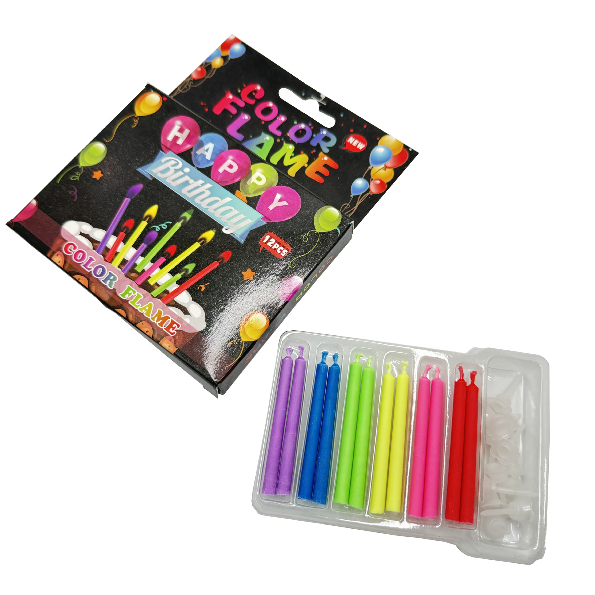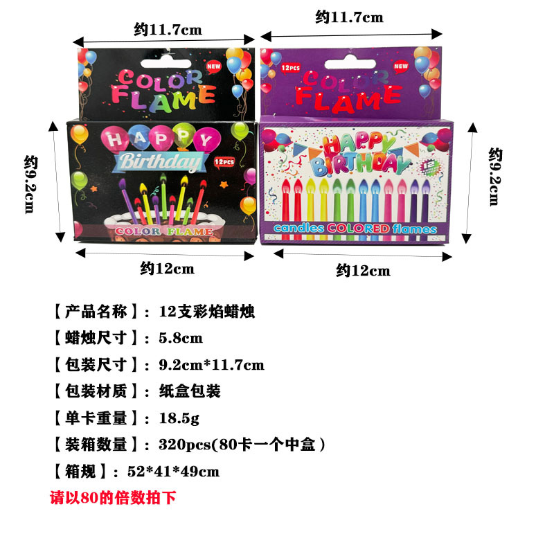批发12支创意彩色火焰蜡烛节日派对氛围感甜品装饰生日蛋糕蜡烛