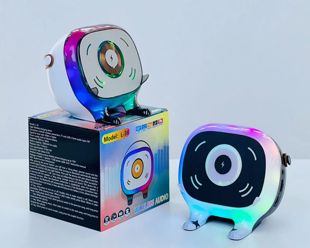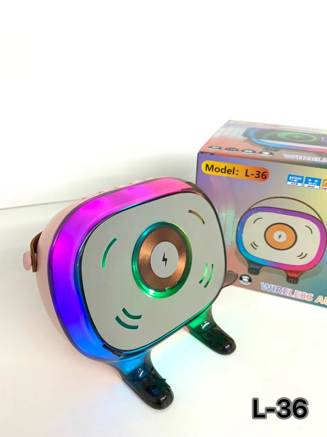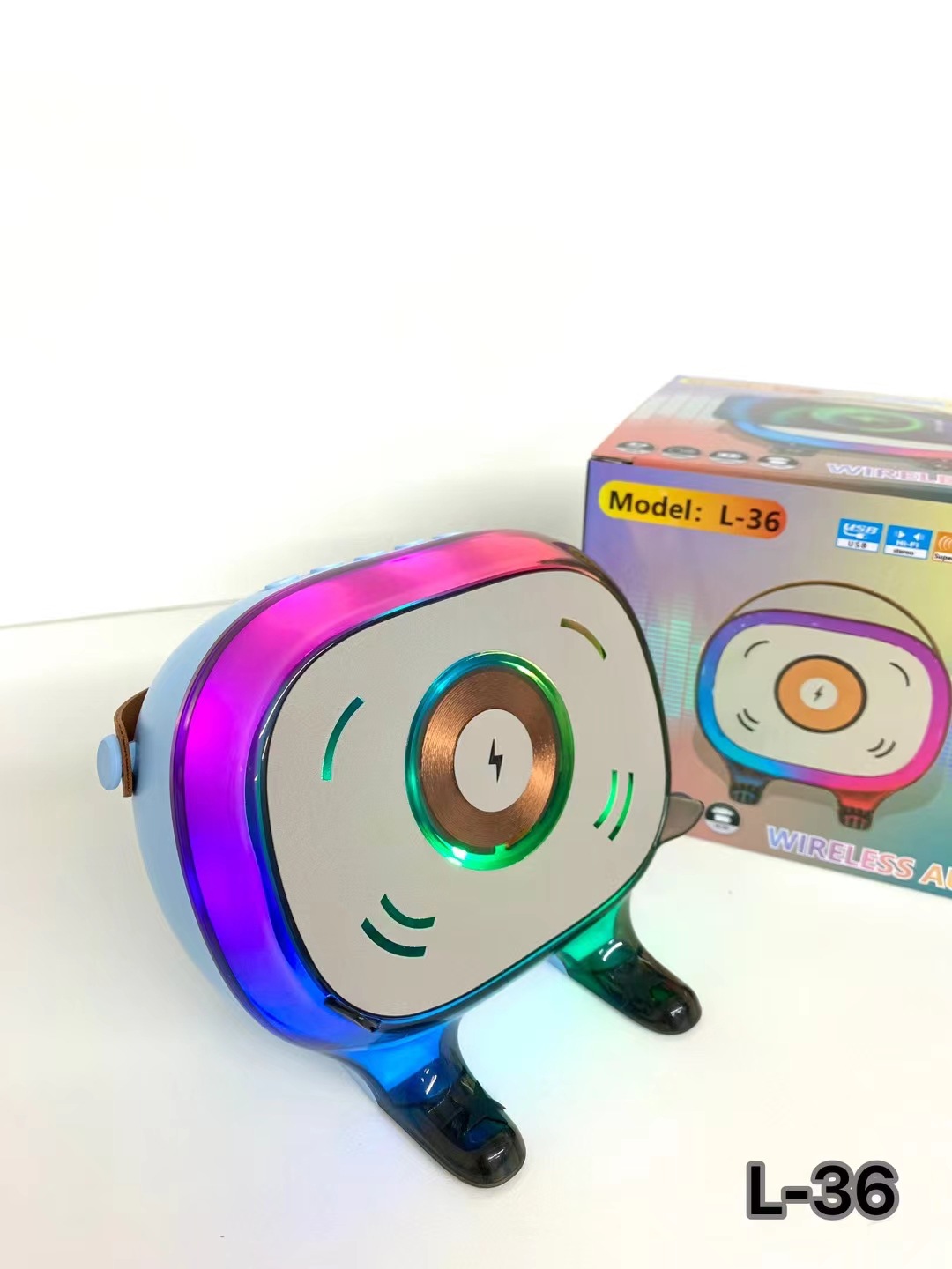 L-36 新款蓝牙音箱便携式话筒家用K歌麦RGB灯无线充电迷你小音响
