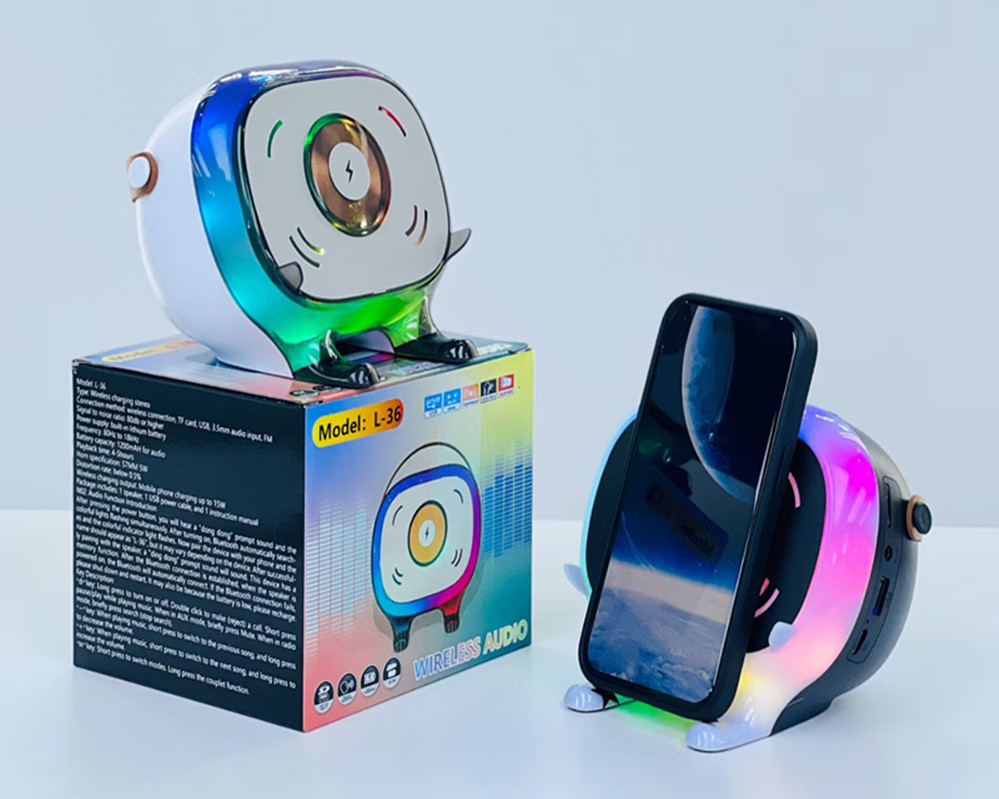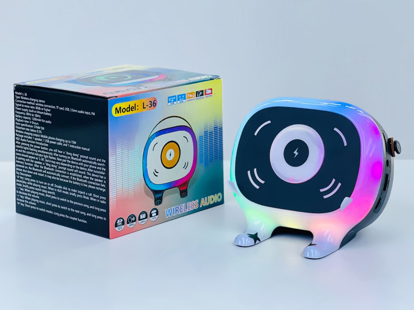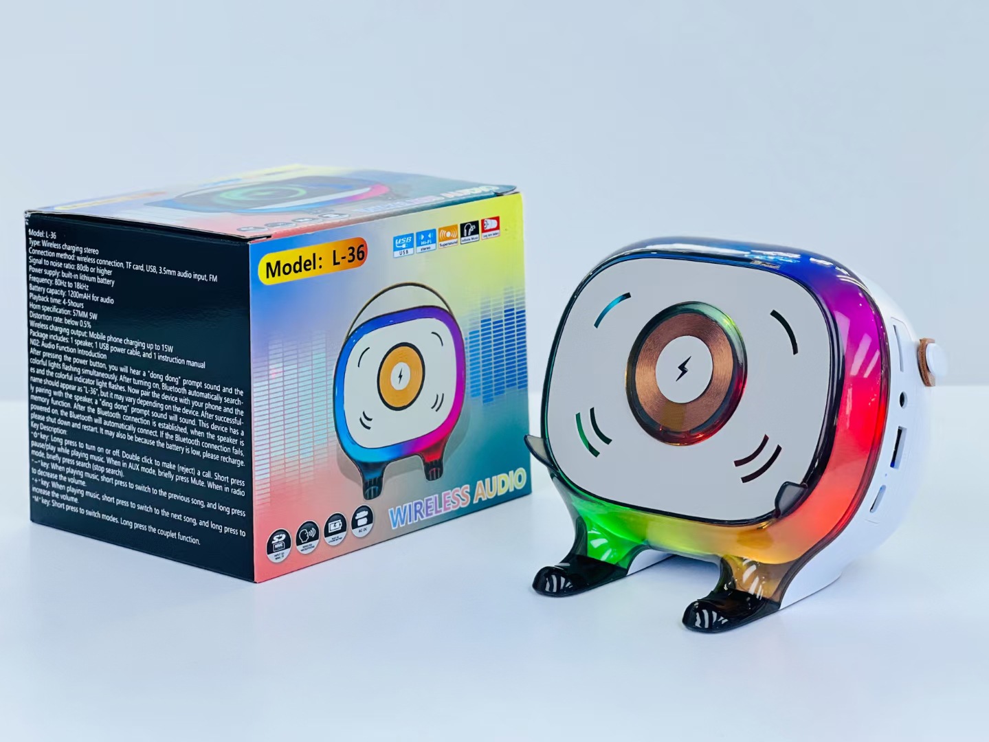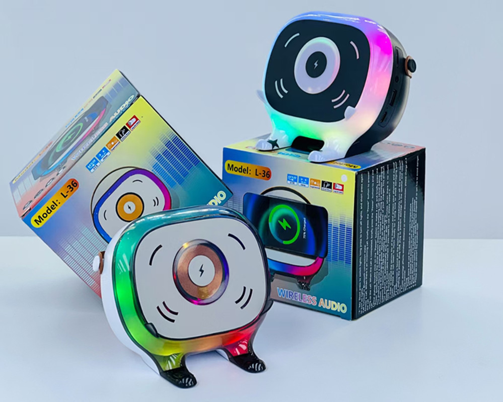 L-36 新款蓝牙音箱便携式话筒家用K歌麦RGB灯无线充电迷你小音响
