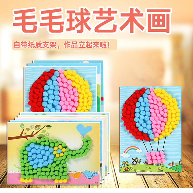 儿童毛球粘贴画DIY手工创意绒球画制作材料包幼儿园益智玩具批发