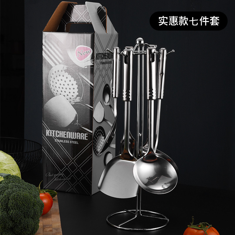 厨房厨具七件套锅铲炒菜铲子 不锈钢1mm加厚九珠厨具套装礼品