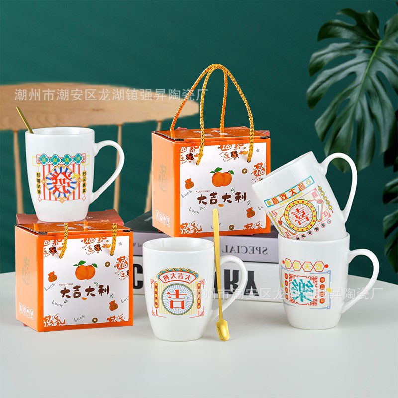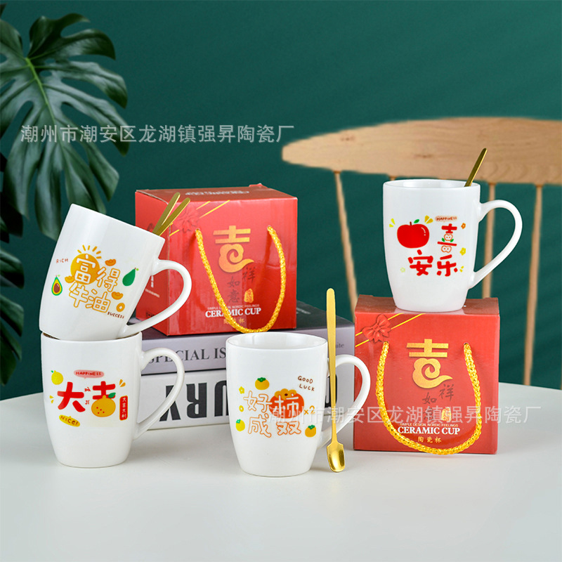 幸运陶瓷杯伴手礼盒创意马克杯金店开业礼品咖啡杯加印logo赠送品