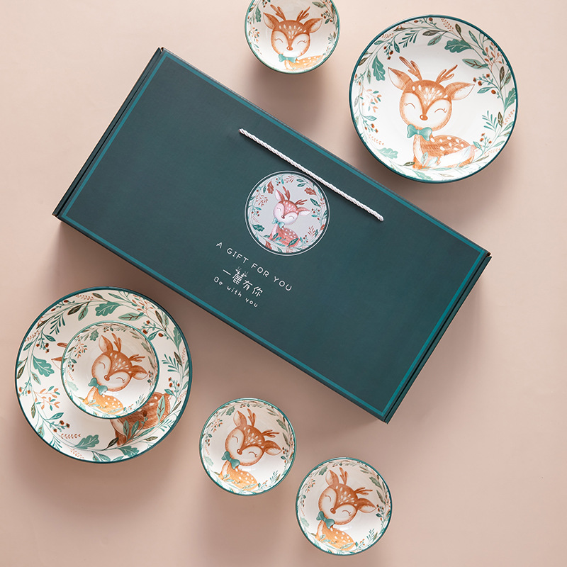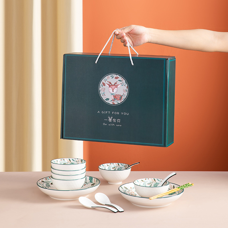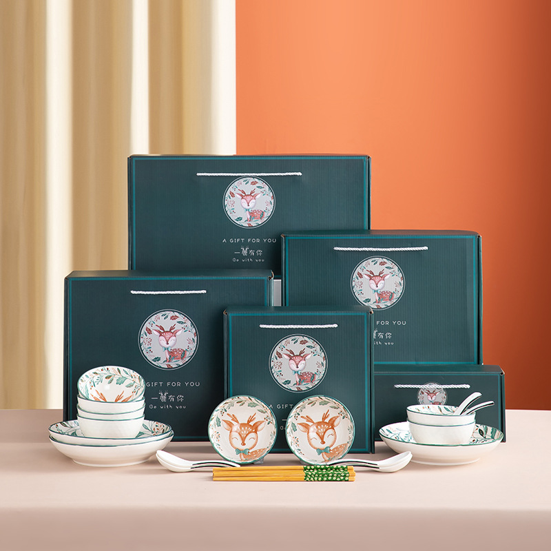 一鹿有你碗筷套装礼品碗盘子碟子陶瓷餐具公司开业活动礼品礼盒装