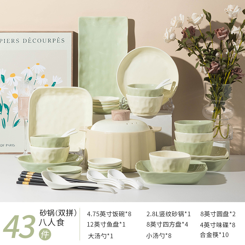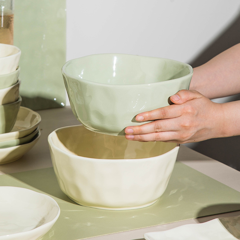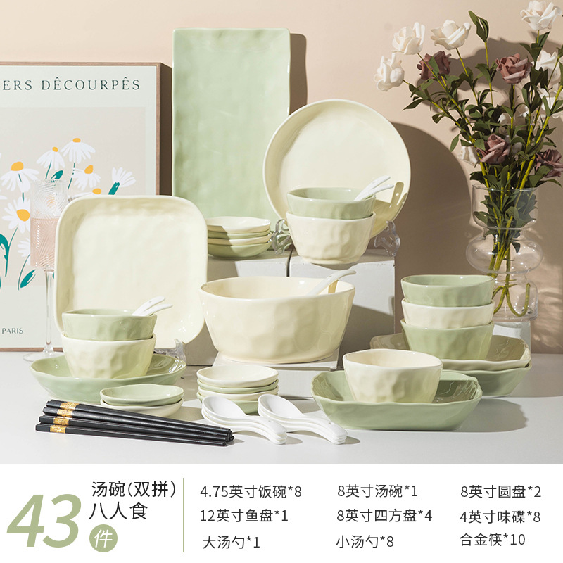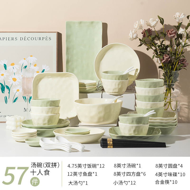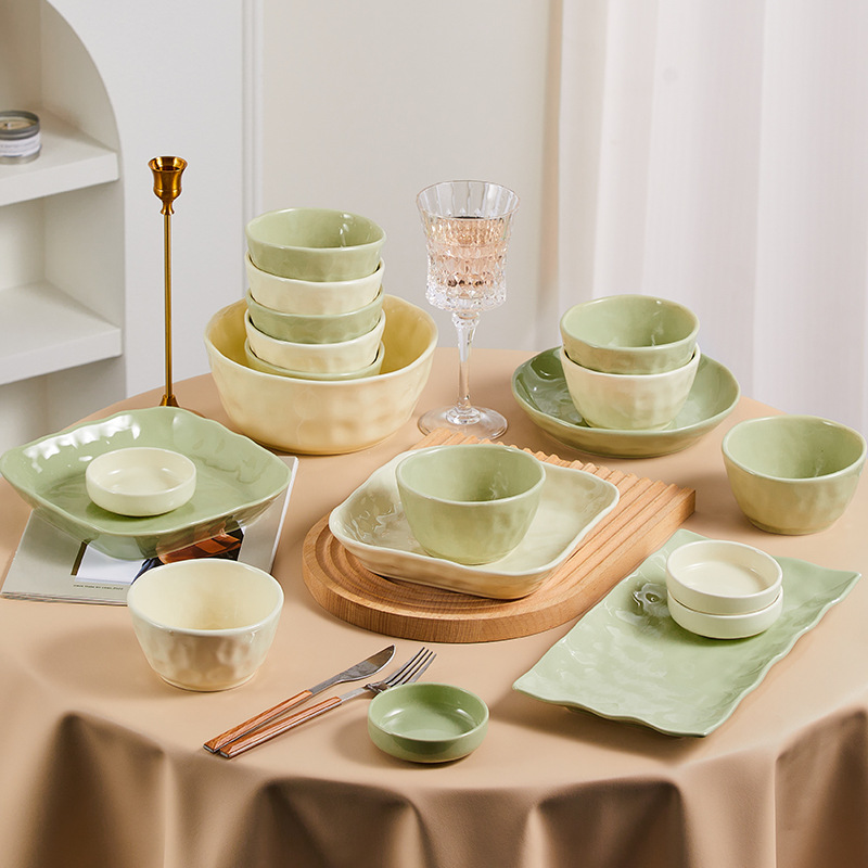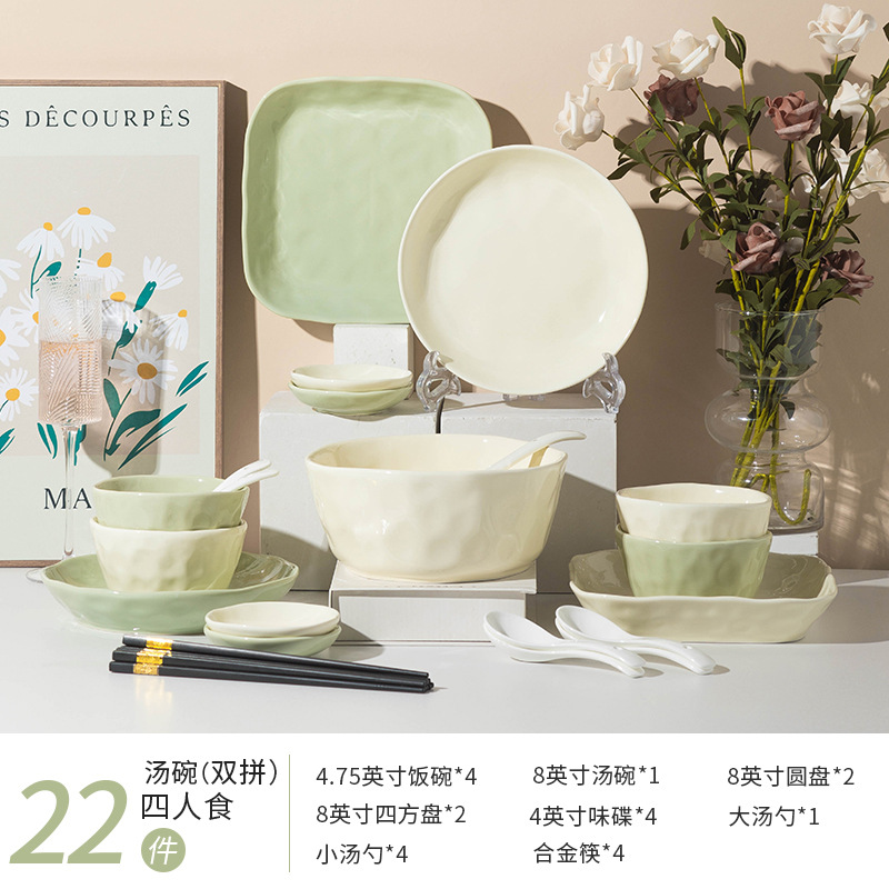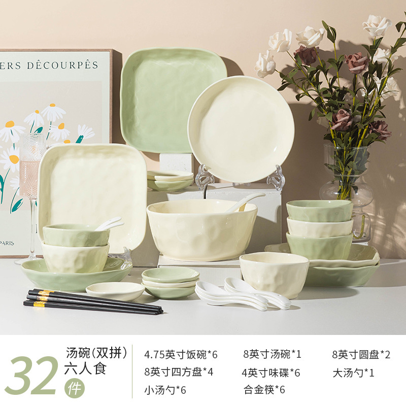 釉下彩奶油风餐具碗碟套装家用陶瓷碗盘子乔迁礼品新款高颜值餐具