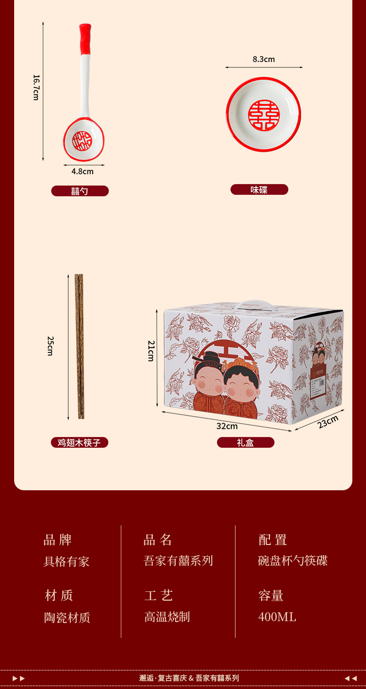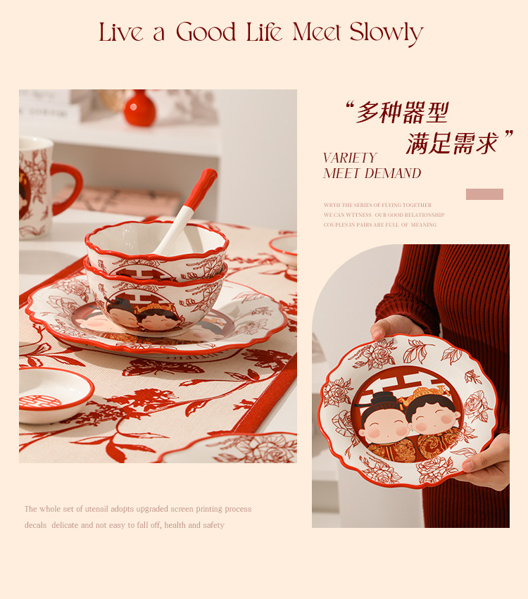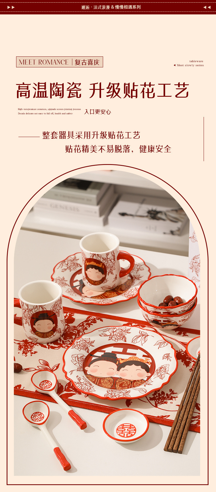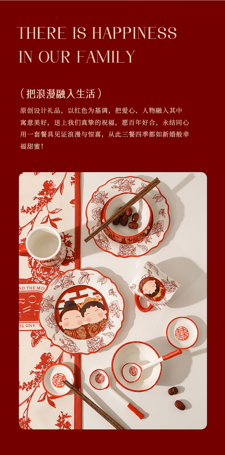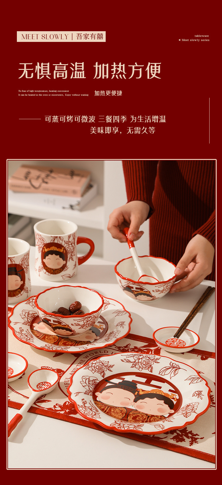 吾家有喜陶瓷餐具二人食礼品套装新中式情侣碗盘勺水杯婚庆伴手礼