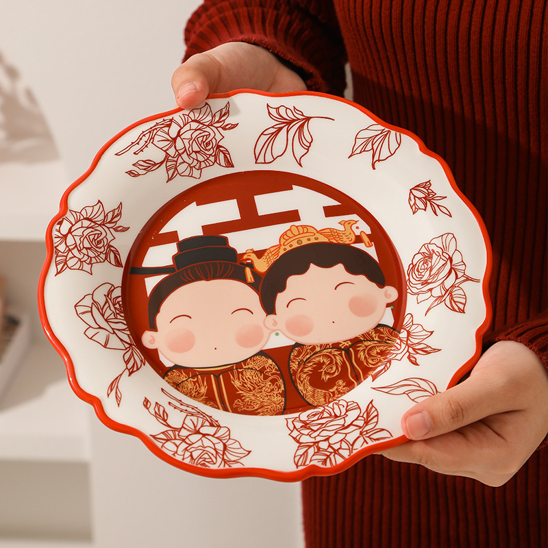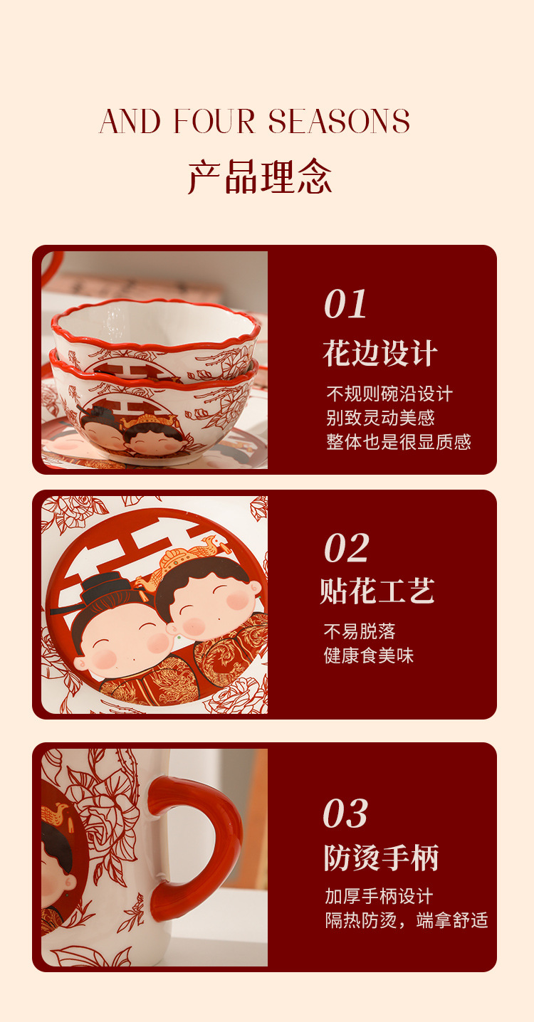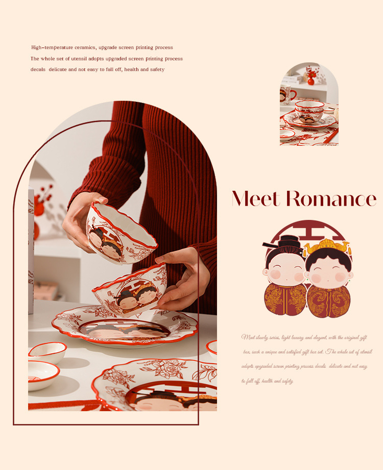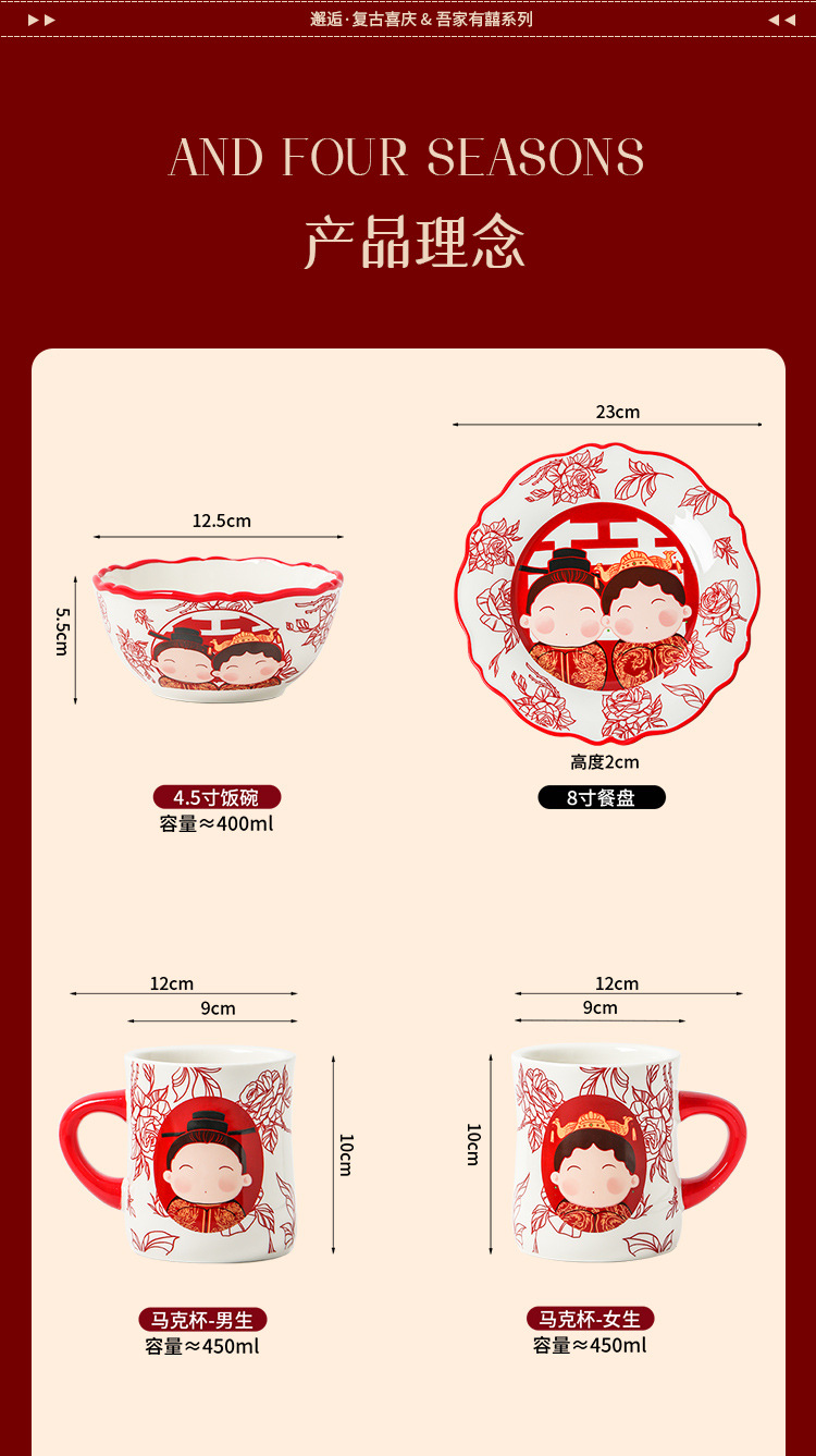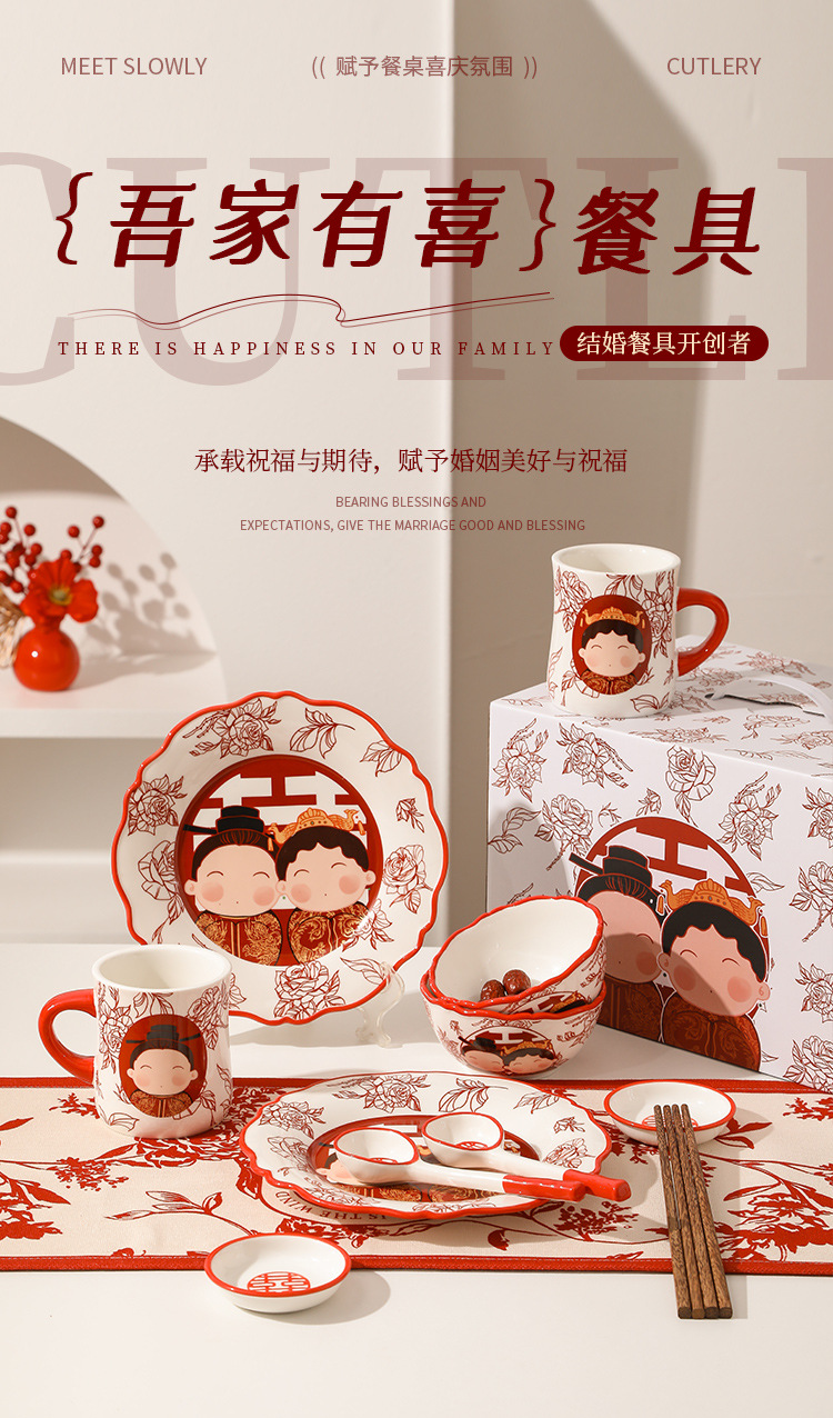 吾家有喜陶瓷餐具二人食礼品套装新中式情侣碗盘勺水杯婚庆伴手礼