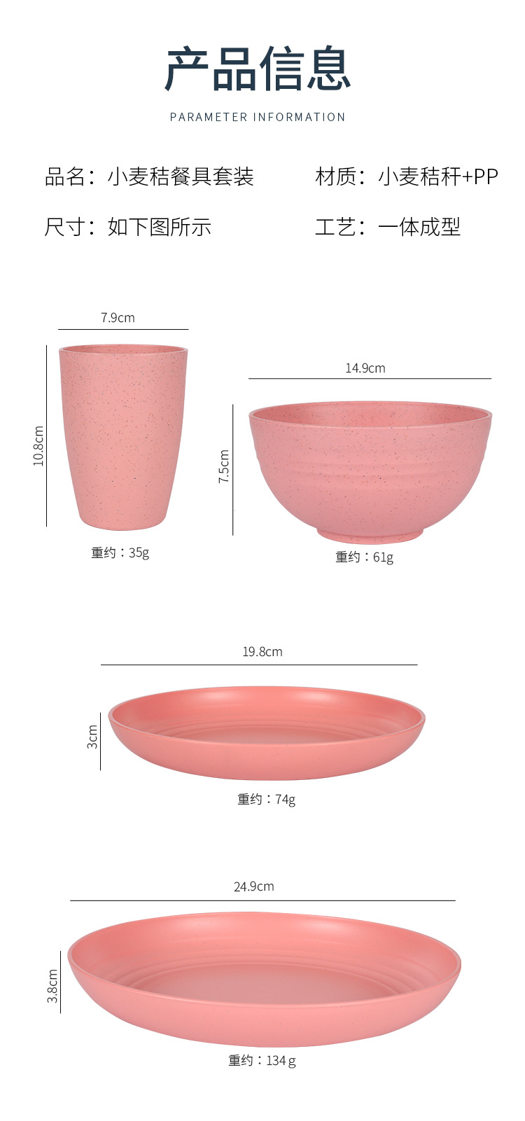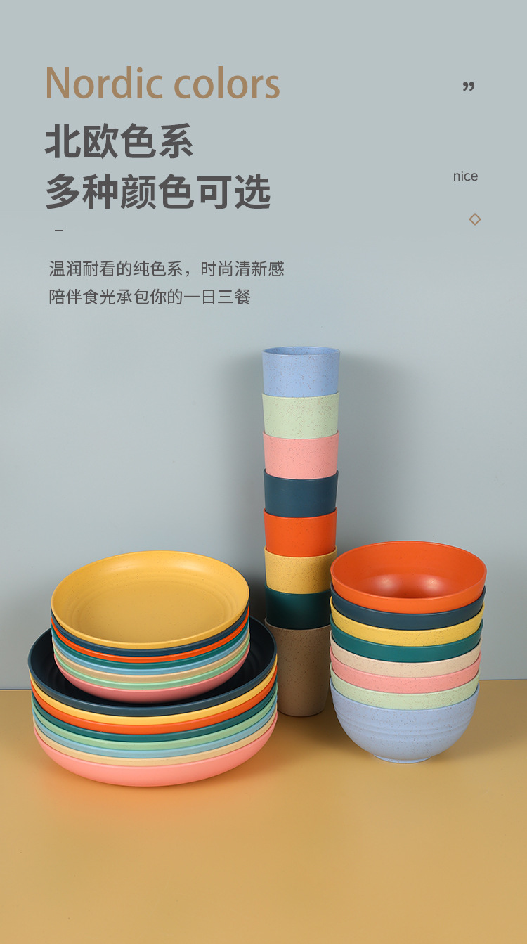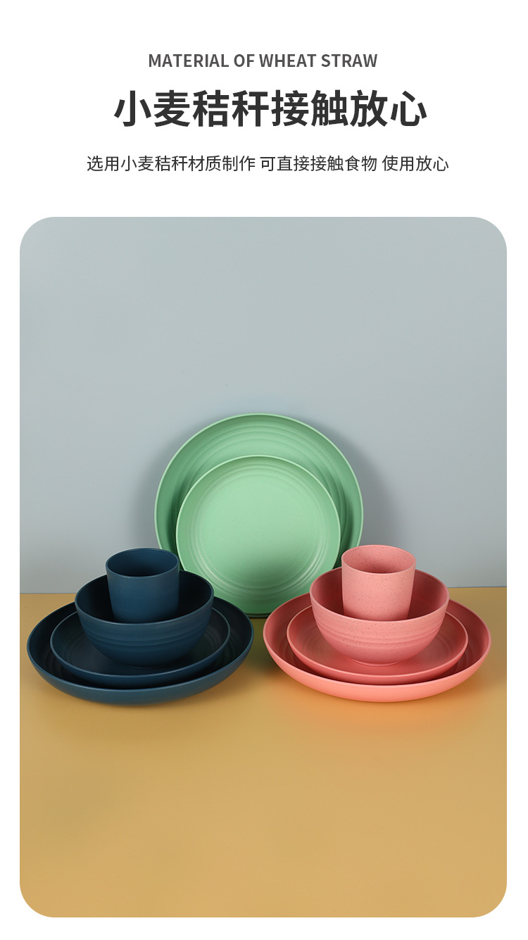 亚马逊小麦秸秆碗碟盘杯8人份户外家用餐盘汤碗水杯餐具礼品套装