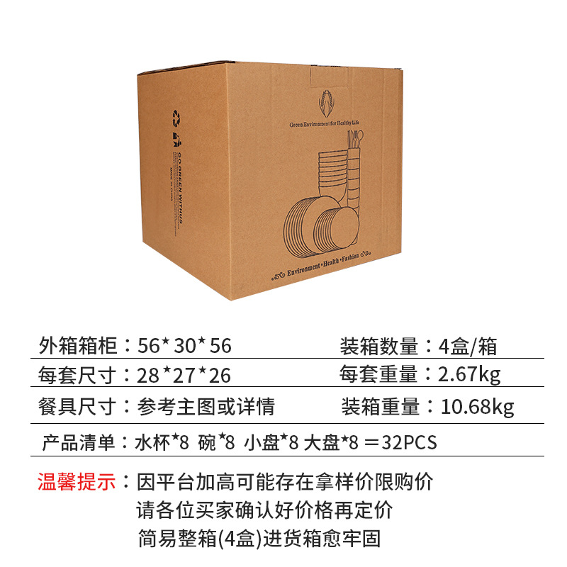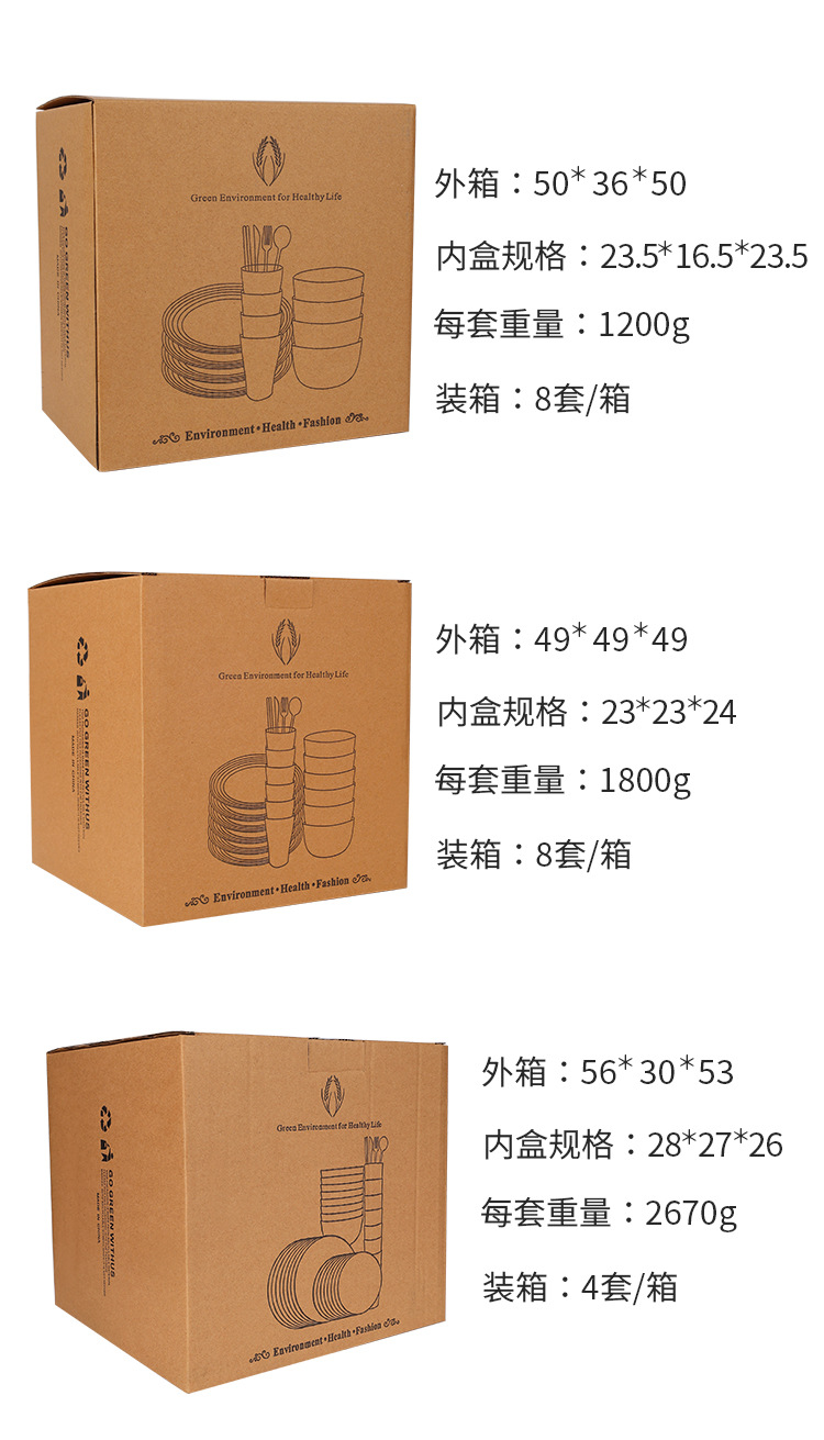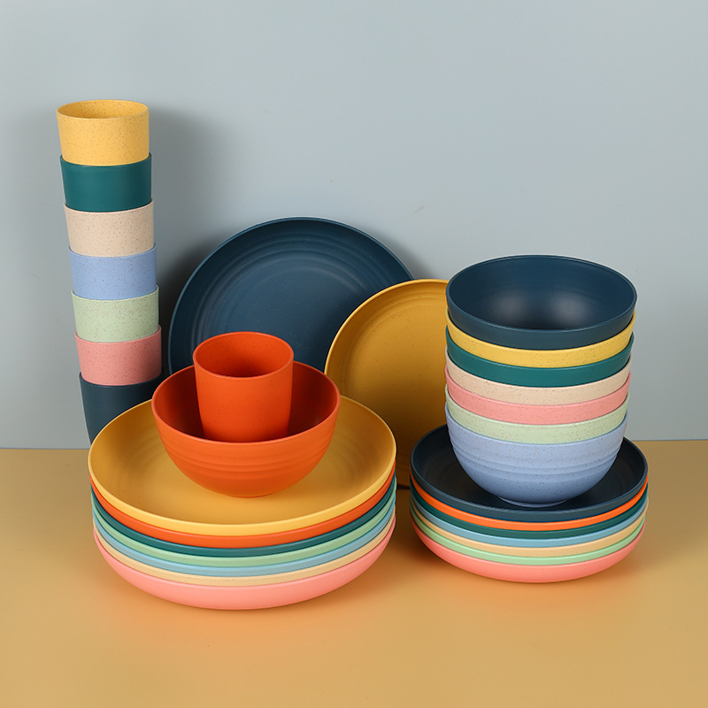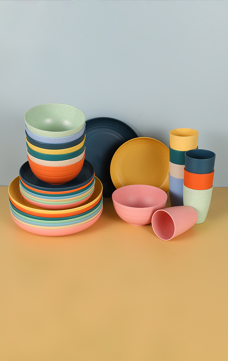 亚马逊小麦秸秆碗碟盘杯8人份户外家用餐盘汤碗水杯餐具礼品套装