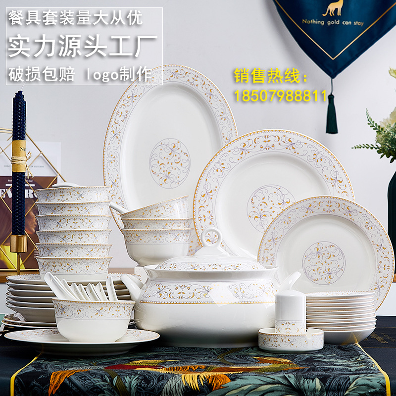 餐具套装 景德镇56头家用陶瓷碗碟套装太阳岛陶瓷餐具礼品印logo
