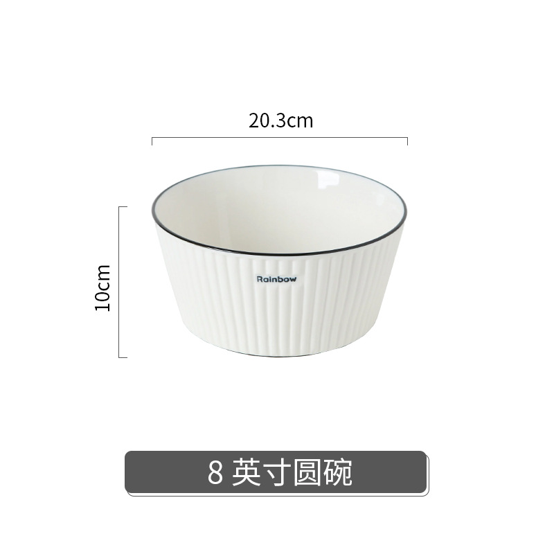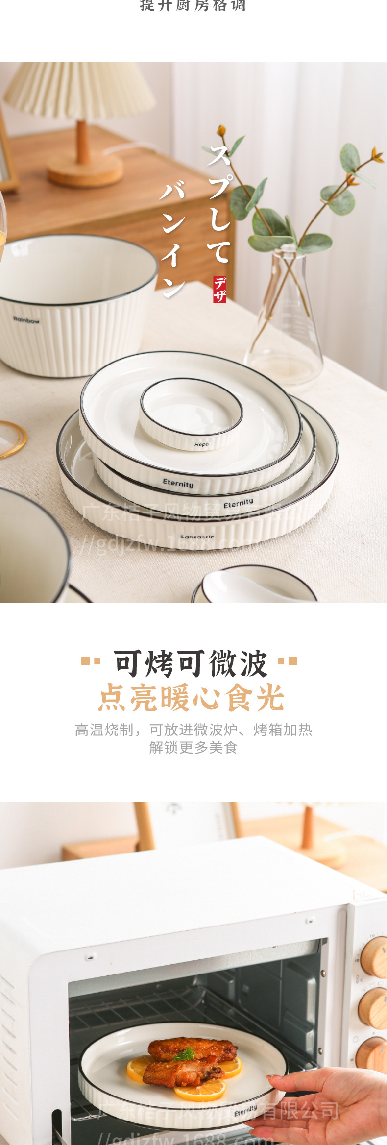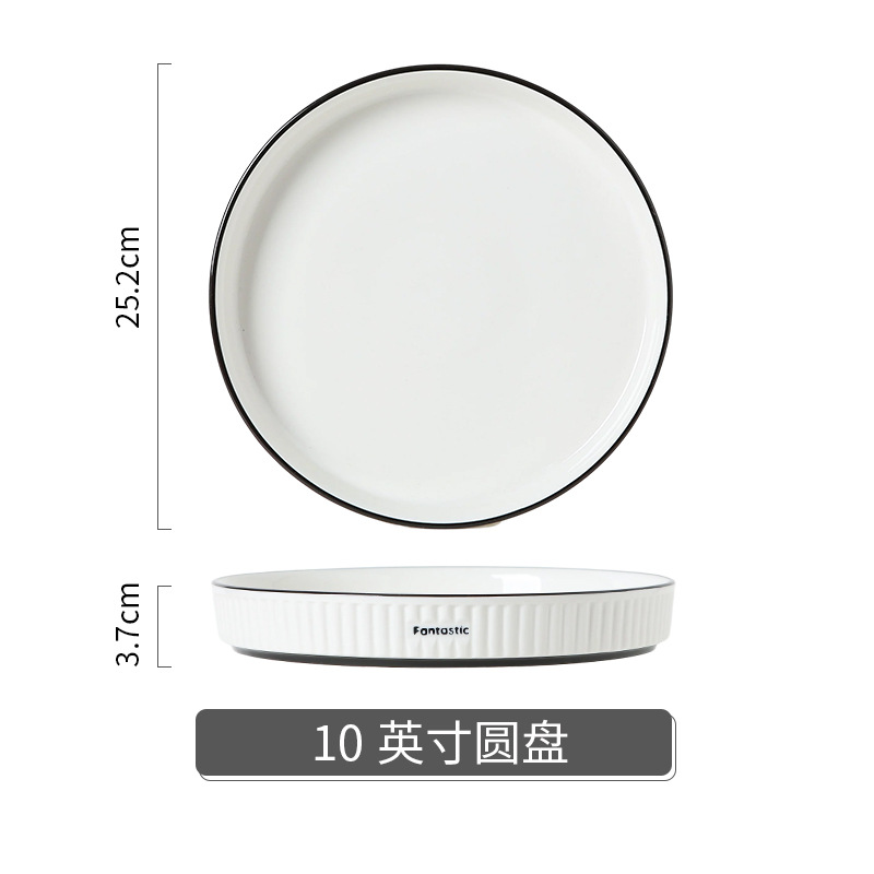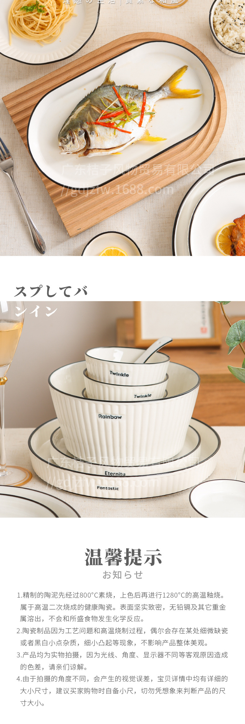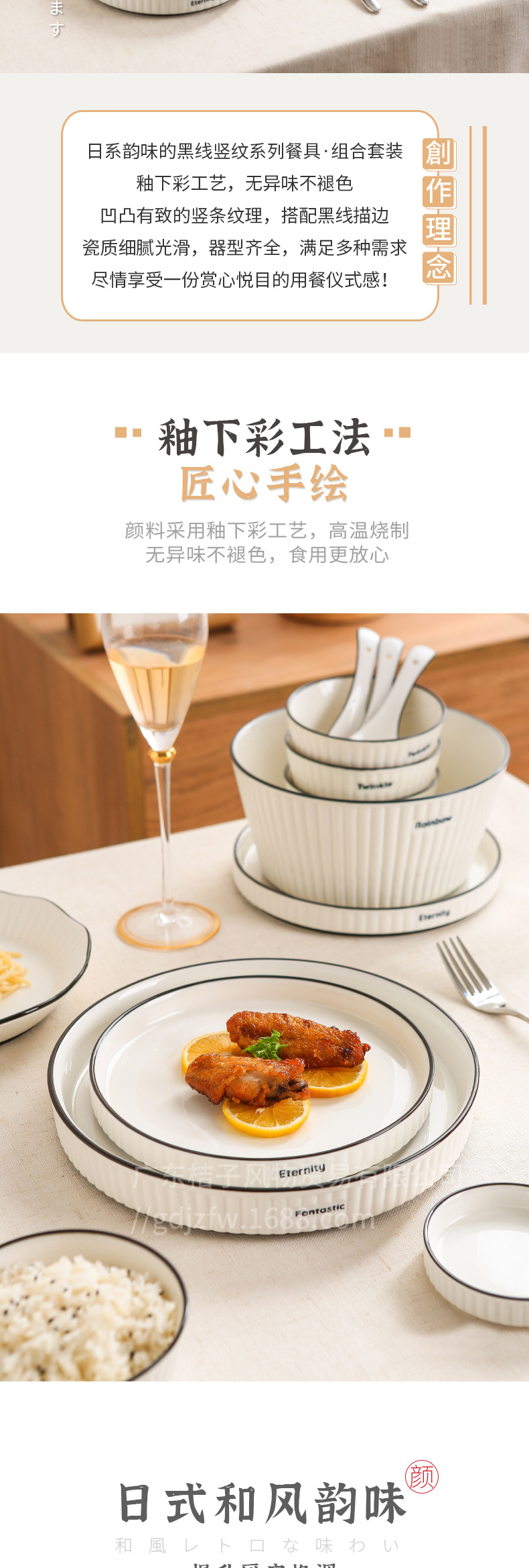 黑线竖纹陶瓷碗盘餐具简约ins风饭碗汤碗盘子釉下彩碗碟套装礼品
