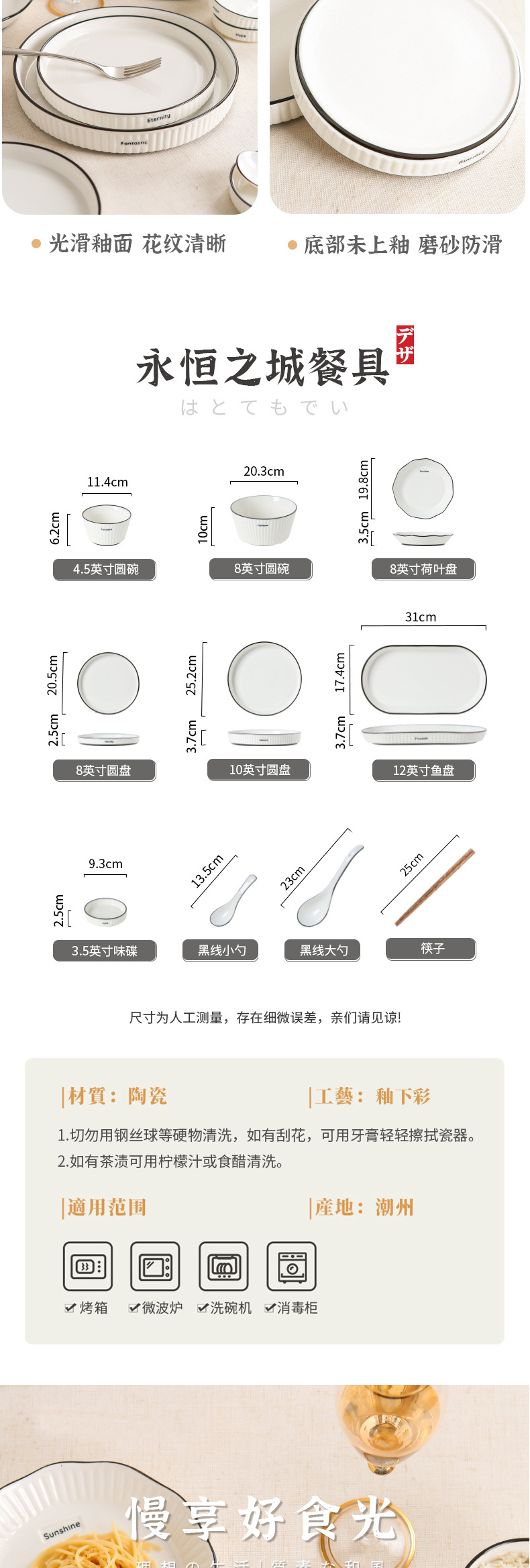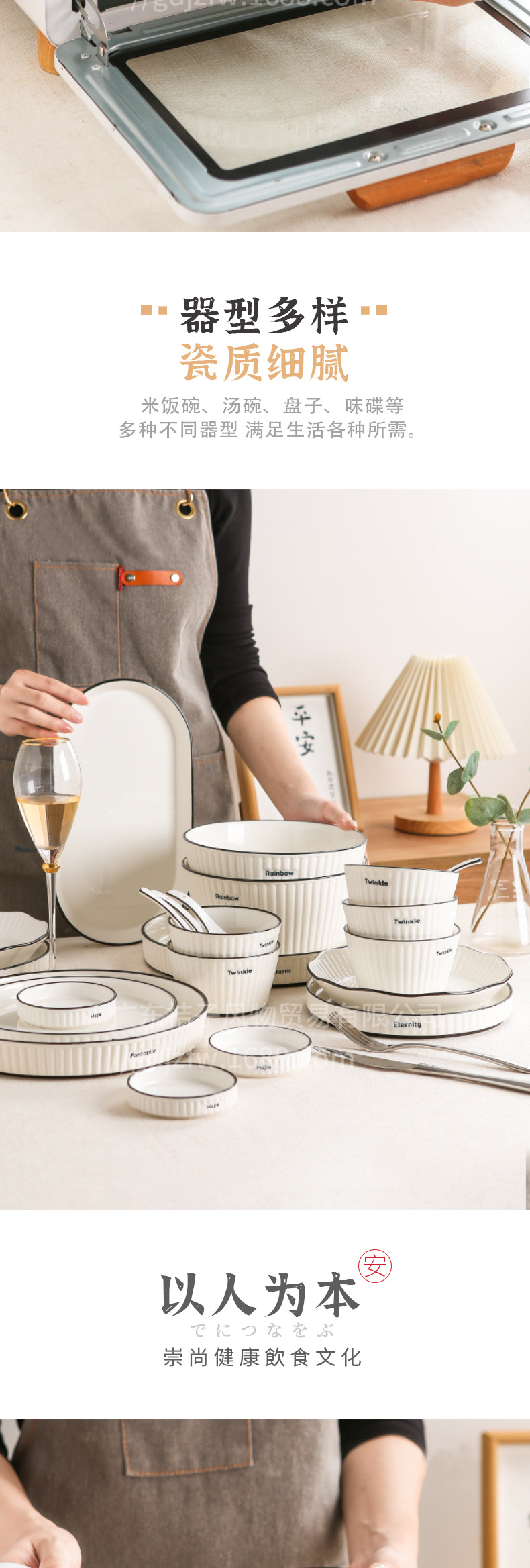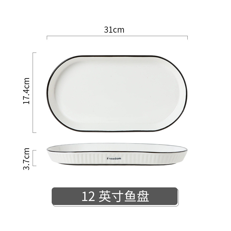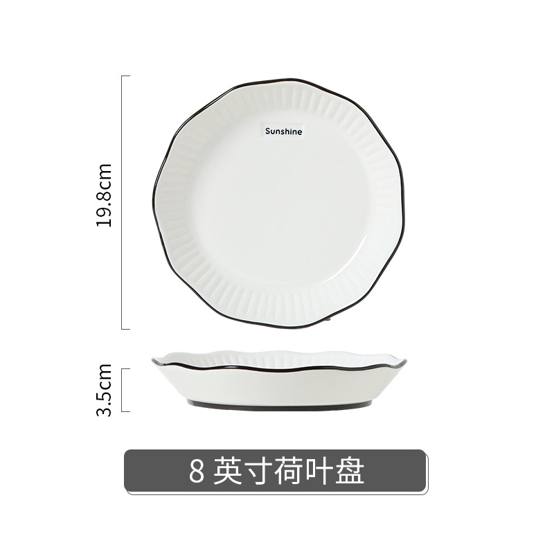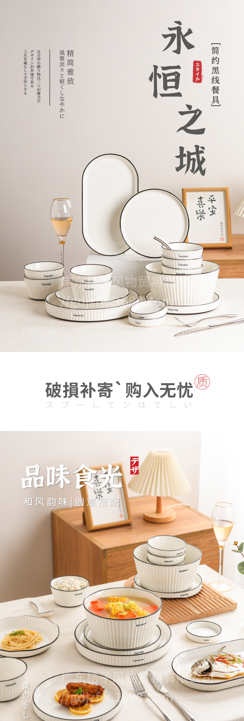 黑线竖纹陶瓷碗盘餐具简约ins风饭碗汤碗盘子釉下彩碗碟套装礼品