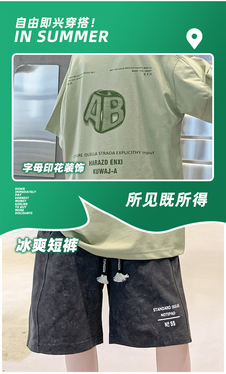 男童夏装短袖套装2024新款中大童洋气酷帅男孩时髦儿童夏季衣服潮