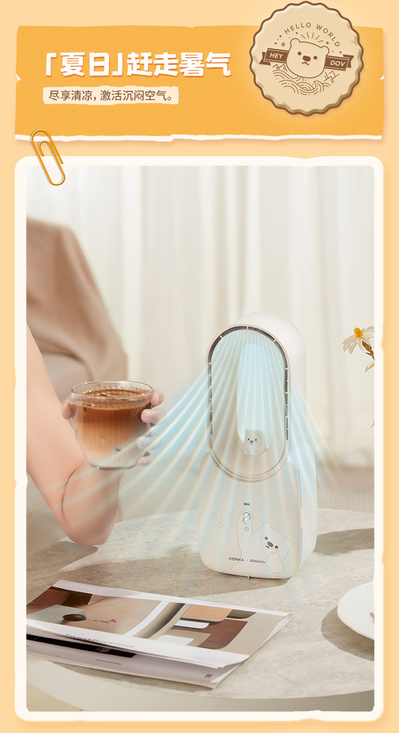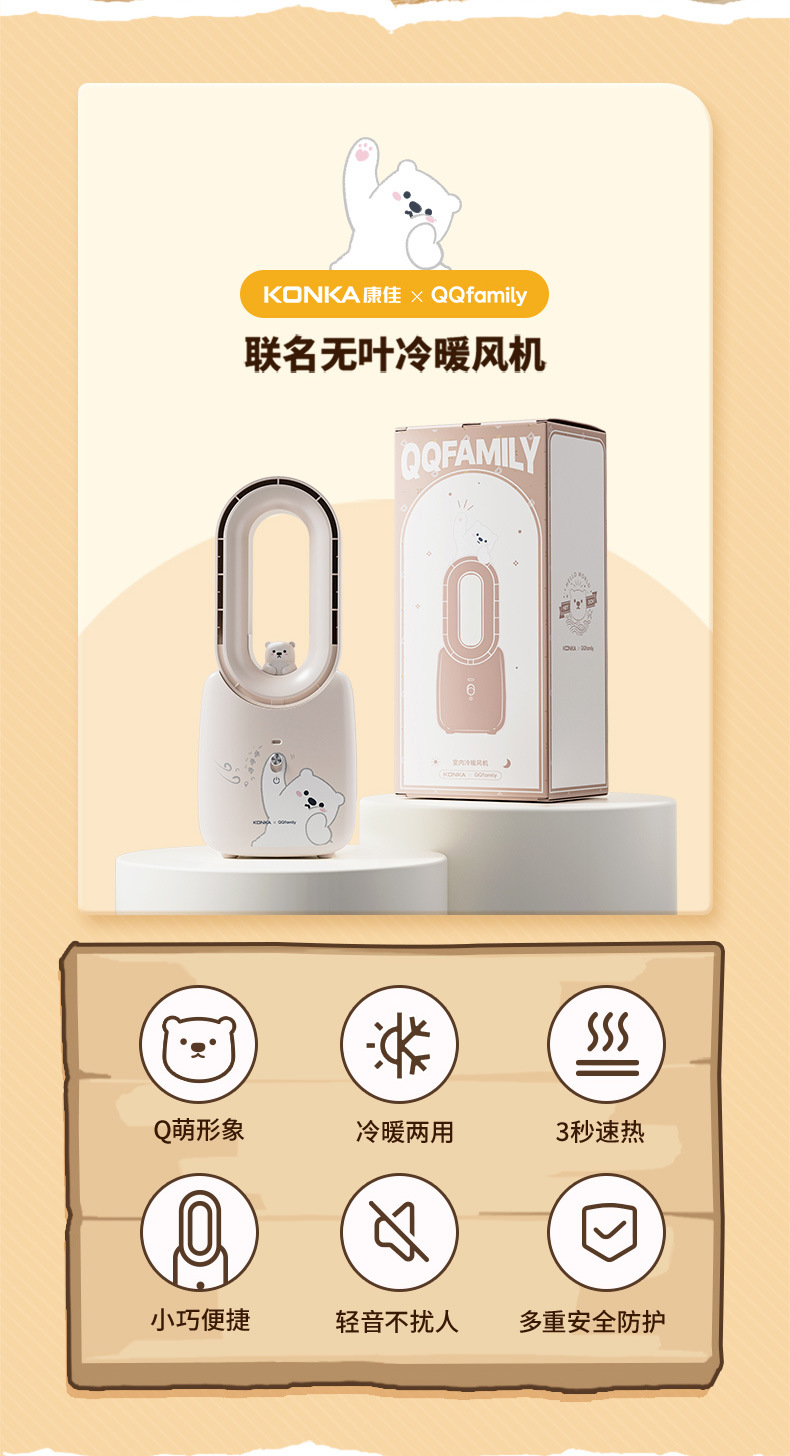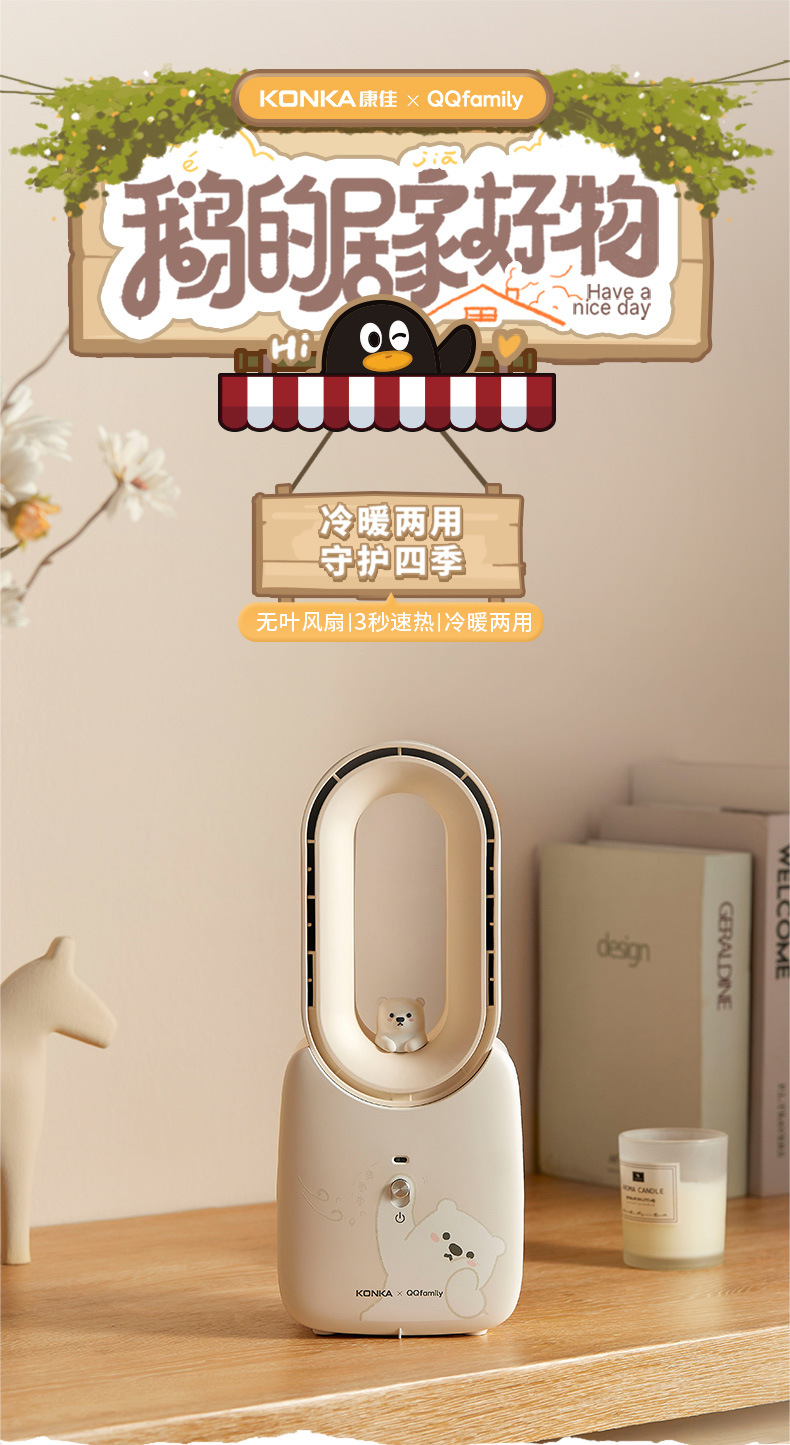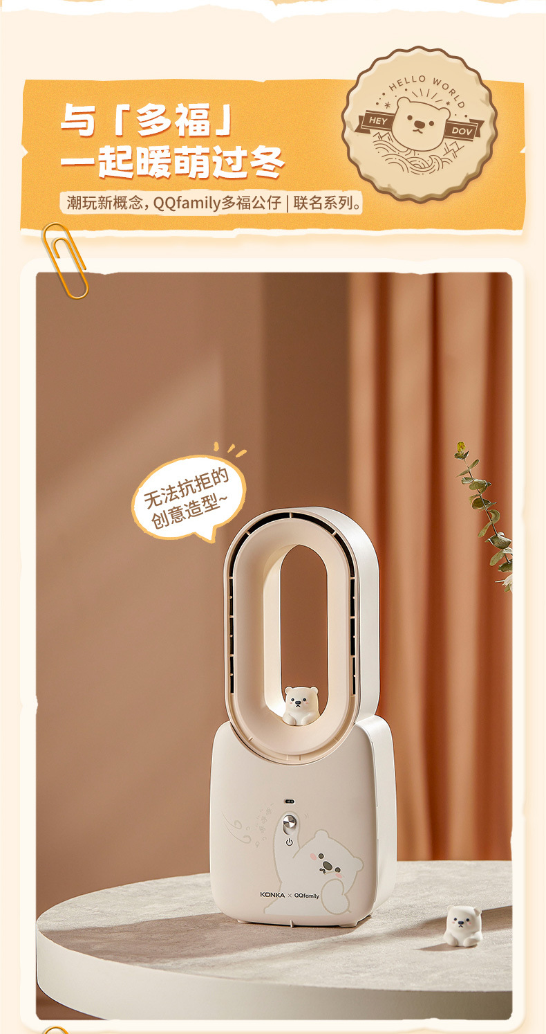康佳QQ family联名风扇家用冷暖两用无叶风扇桌面式礼品团购代发
