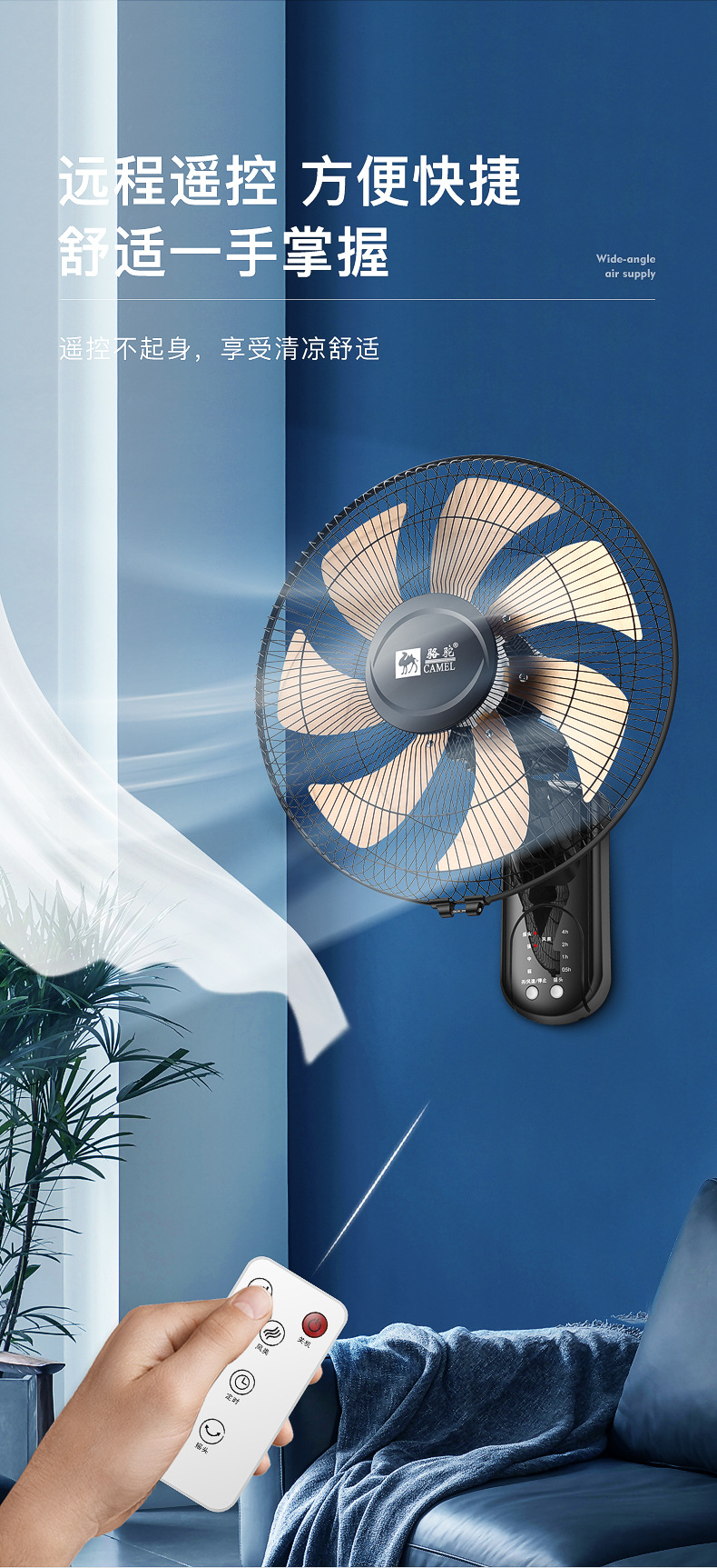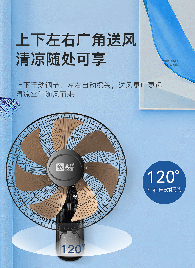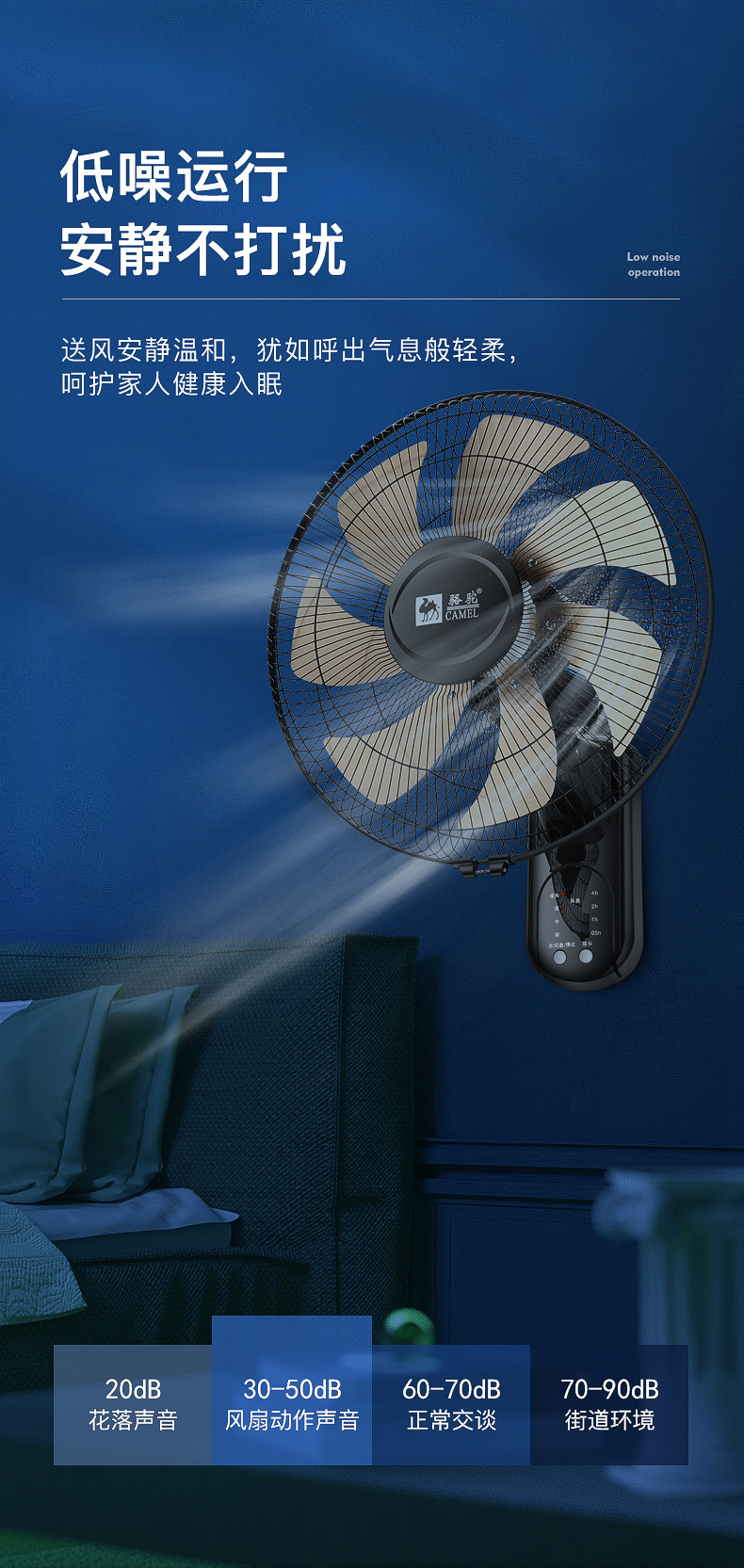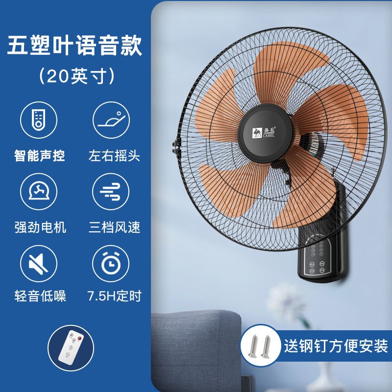 骆驼电风扇挂壁摇头壁扇墙壁扇20英寸智能语音摇头轻音大风量拉线