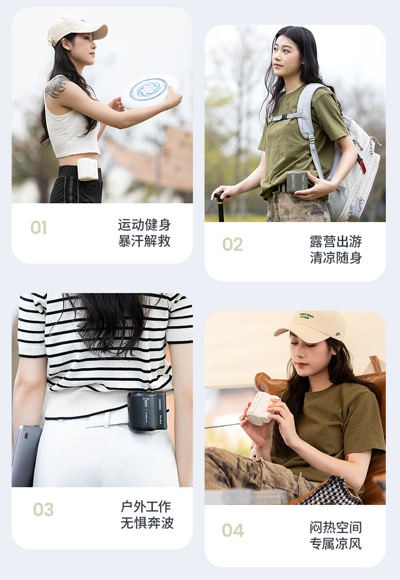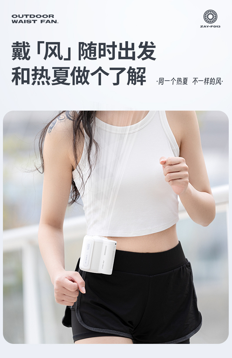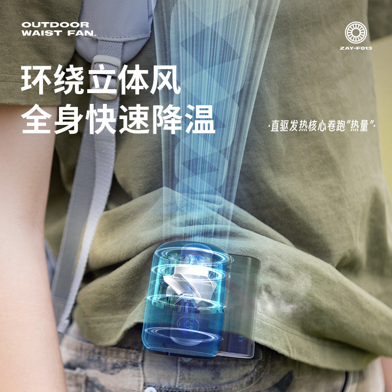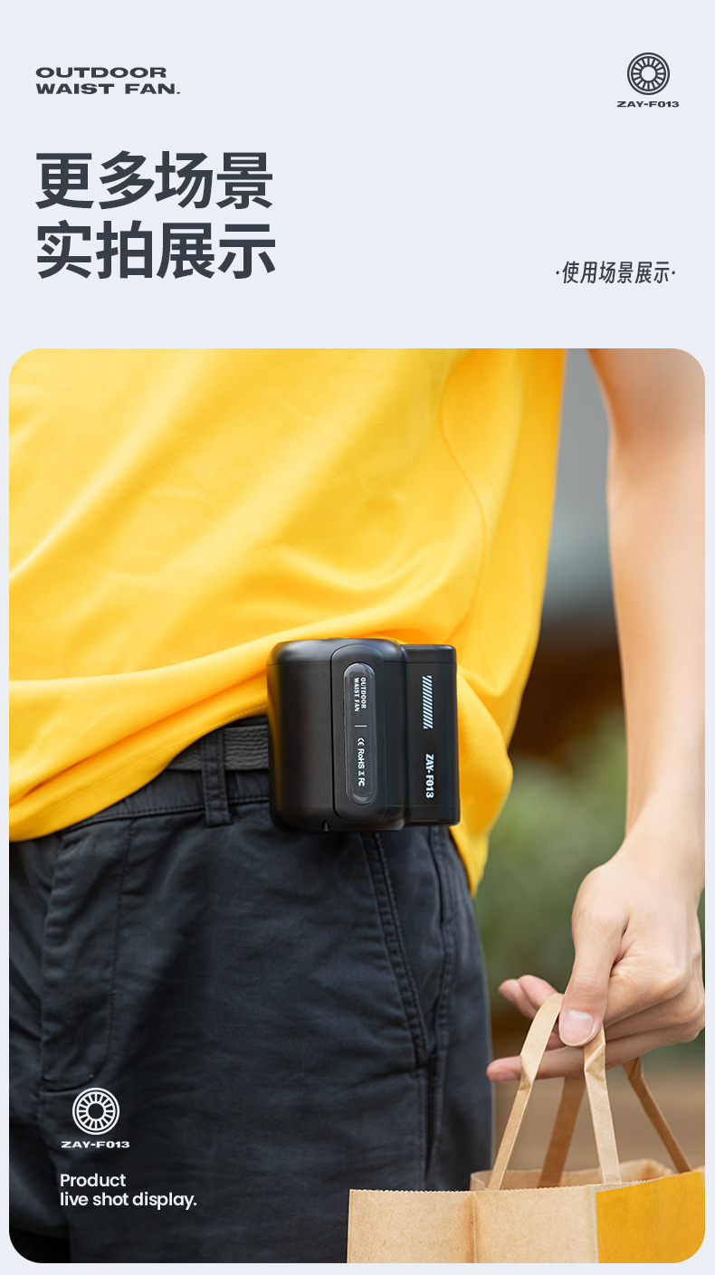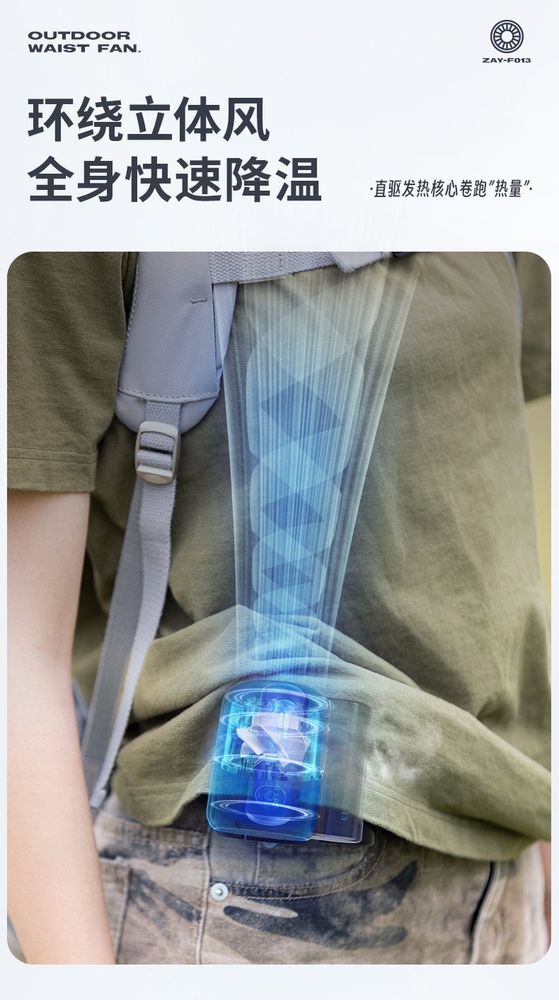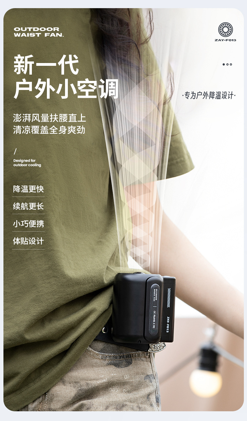 跨境新款挂腰风扇大风力usb充电懒人户外夹腰式便携无叶挂腰风扇
