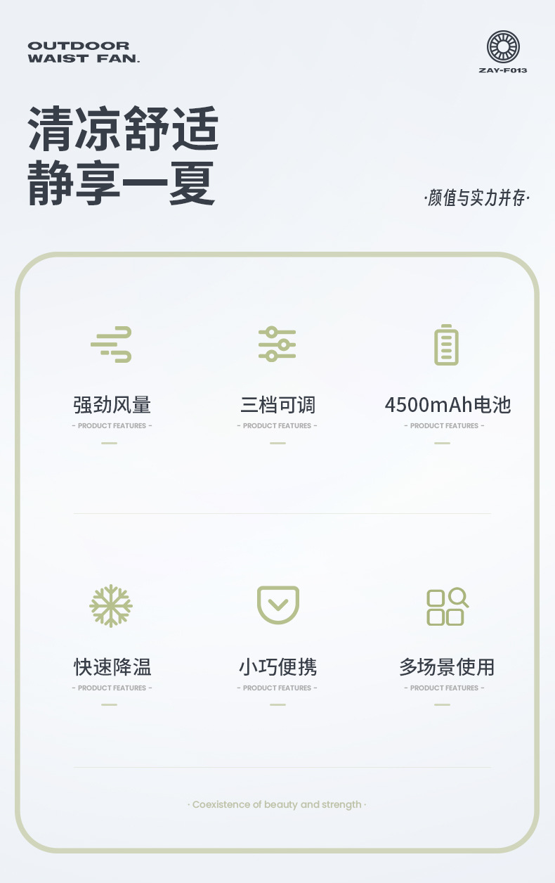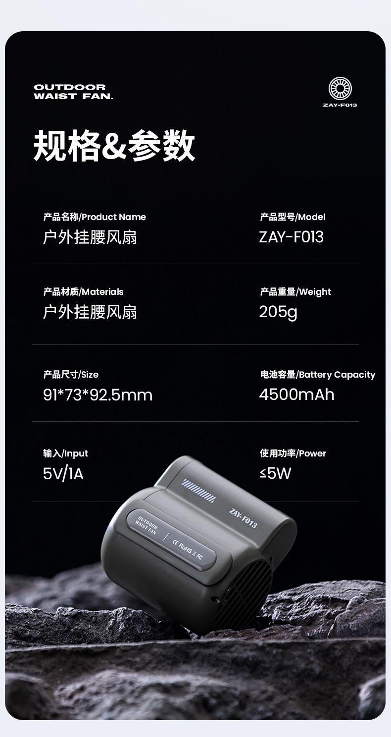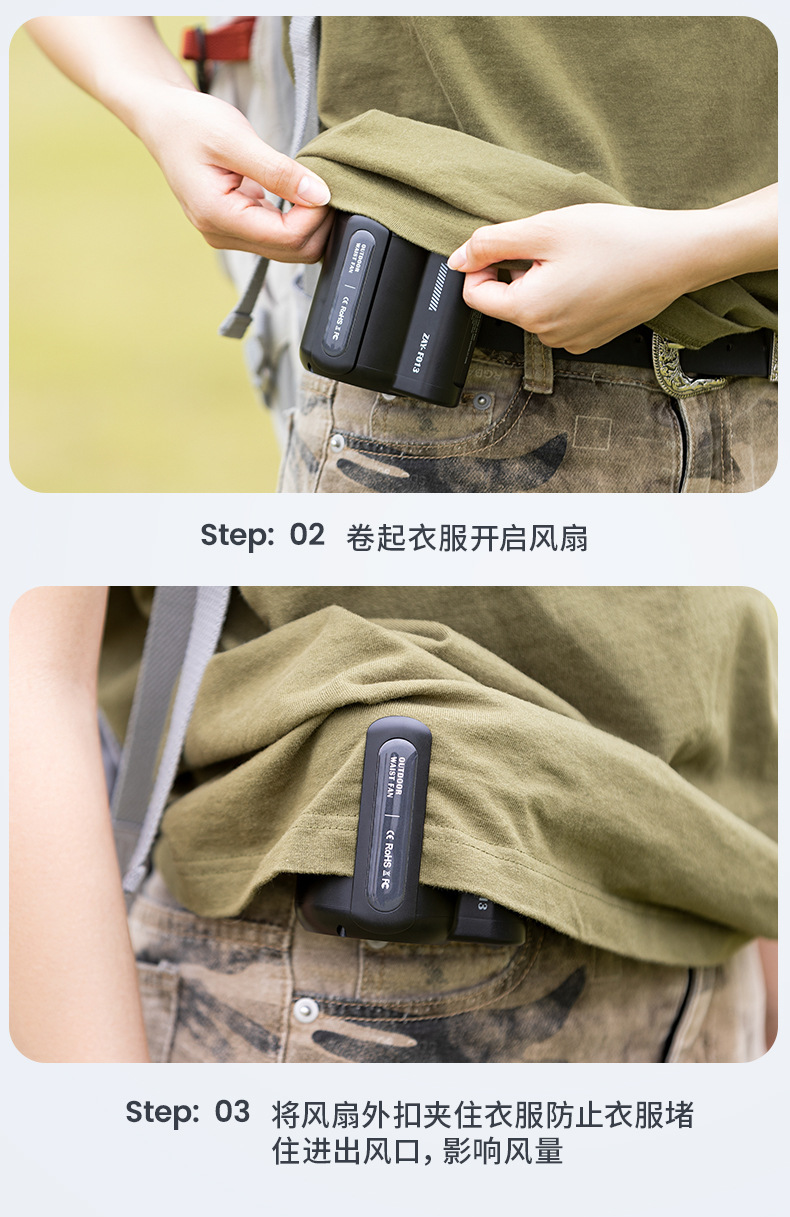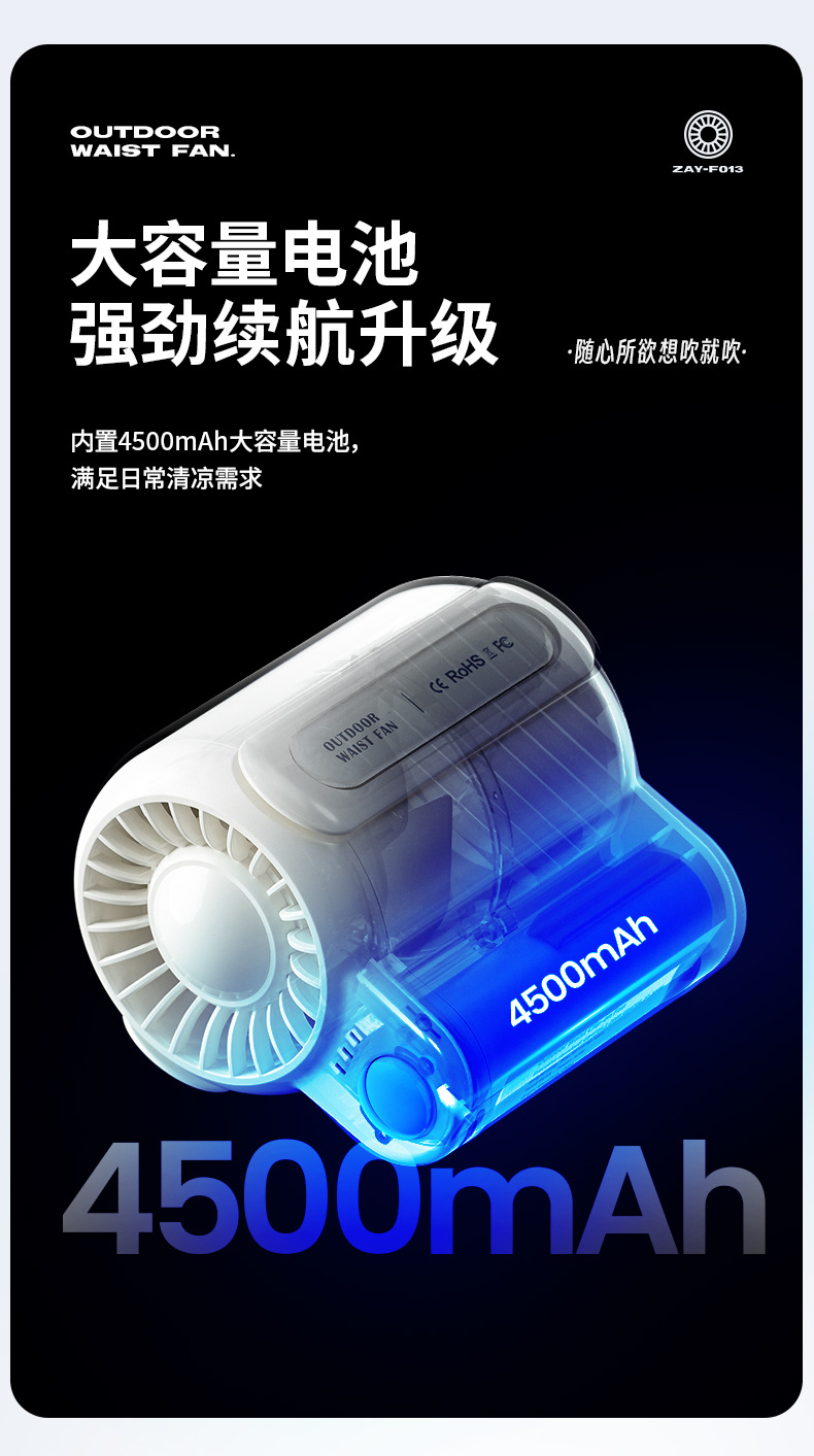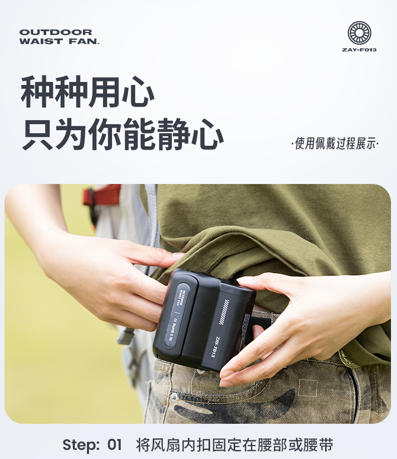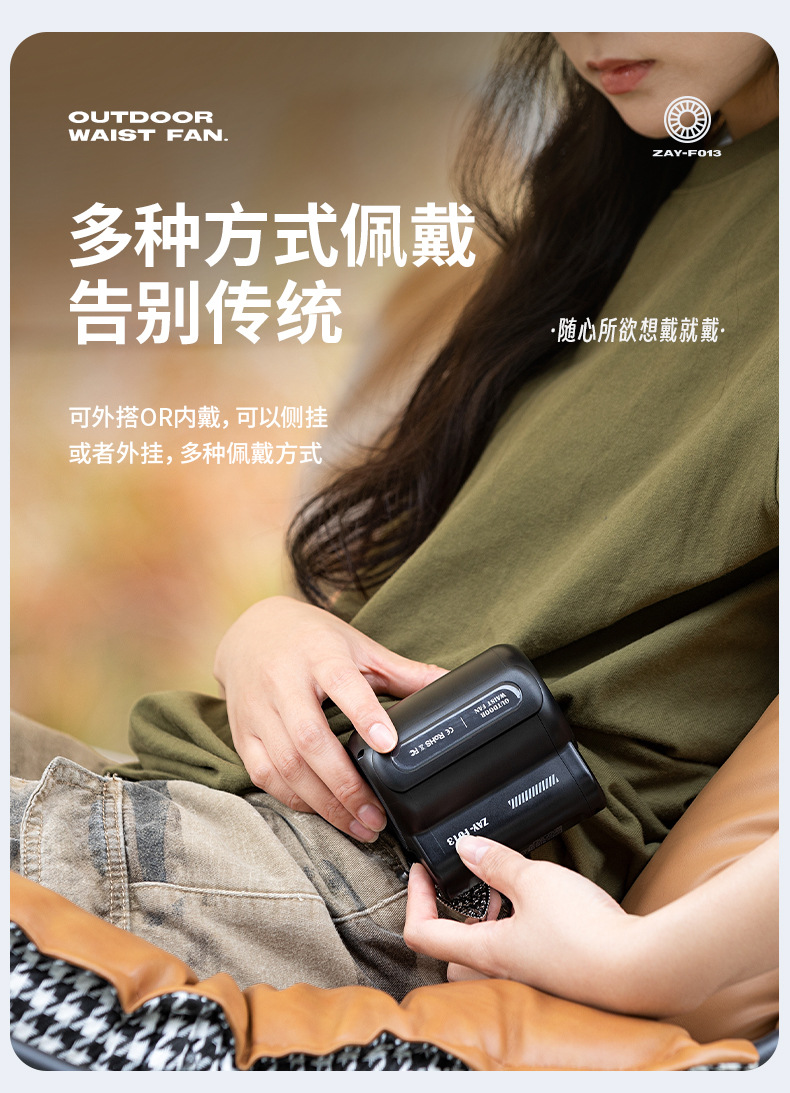 跨境新款挂腰风扇大风力usb充电懒人户外夹腰式便携无叶挂腰风扇