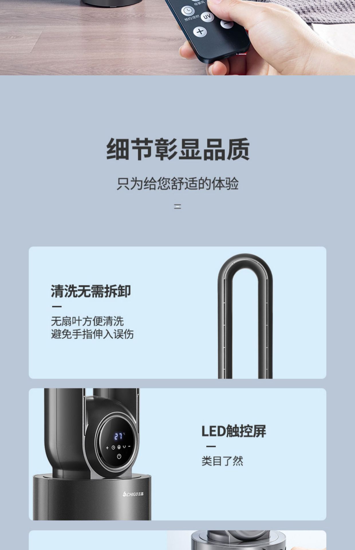 志高210电风扇无叶风扇家用空调扇冷风扇塔扇落地扇无叶静冷风扇