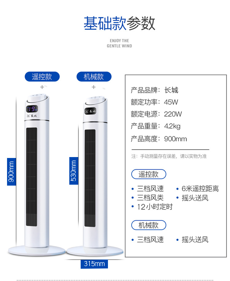 长城电风扇 水冷塔扇 遥控家用落地扇静音摇头定时塔扇空调冷风扇