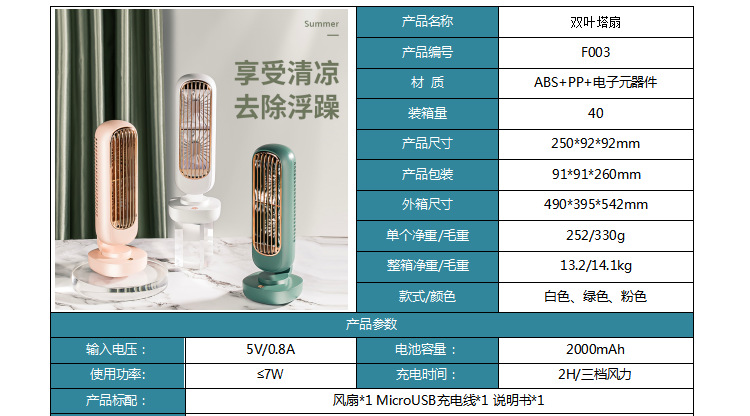 新款现货立式便携可充电usb电风扇办公室桌面小风扇便携双叶塔扇
