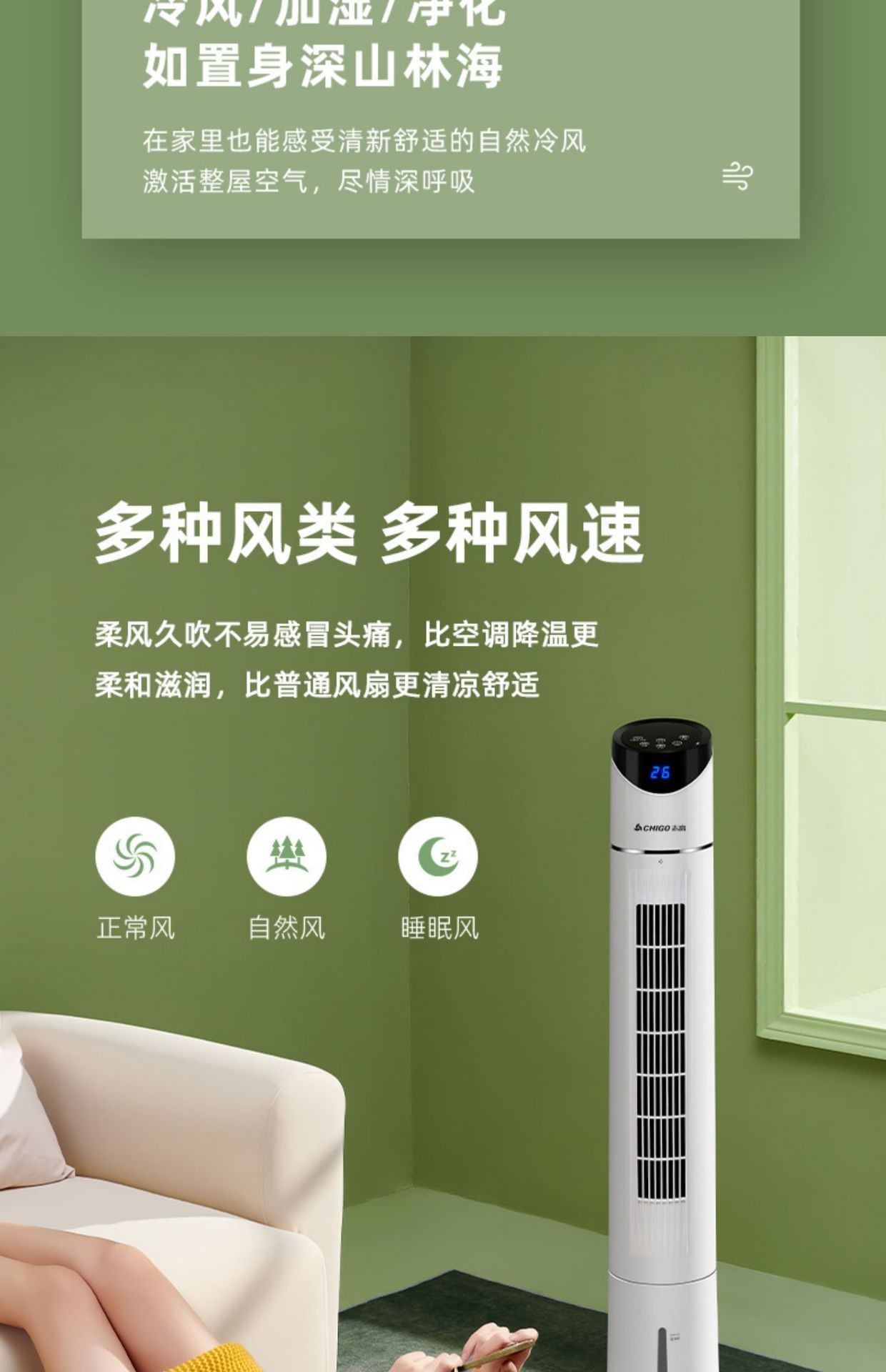 志高空调扇电风扇家用加水加冰制冷移动小型空调冷风扇冷风机塔扇