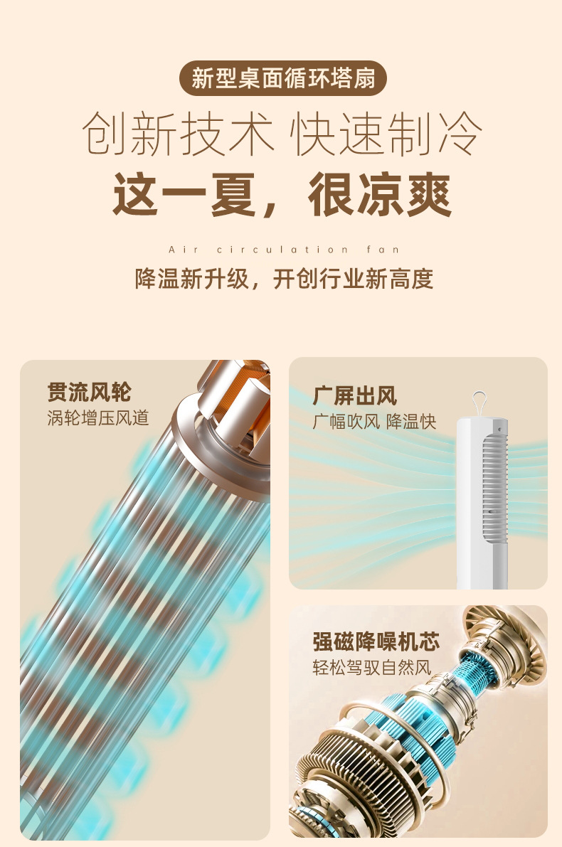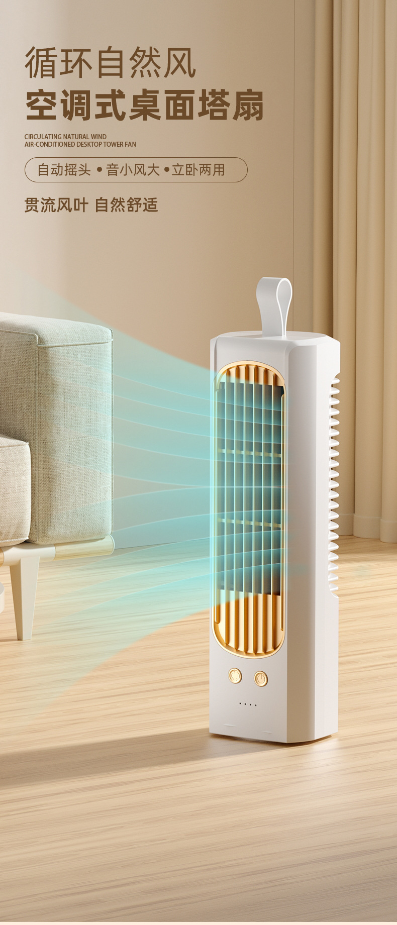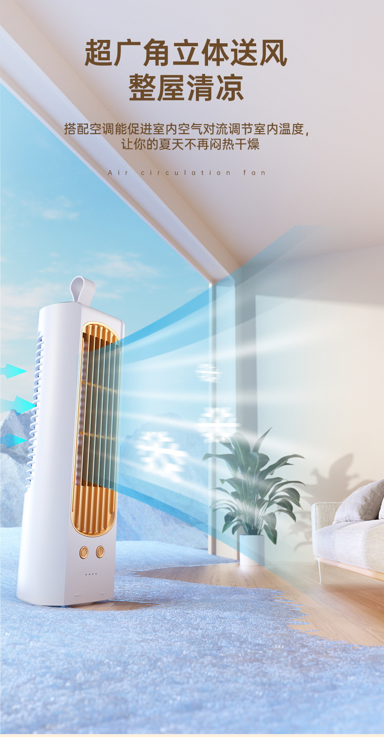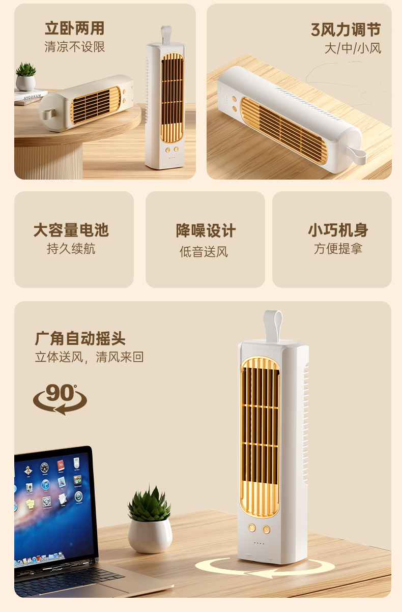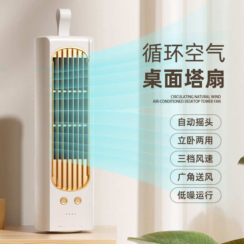 2024新款迷你桌面塔扇多功能可摇头循环风扇办公室床头小型电风扇