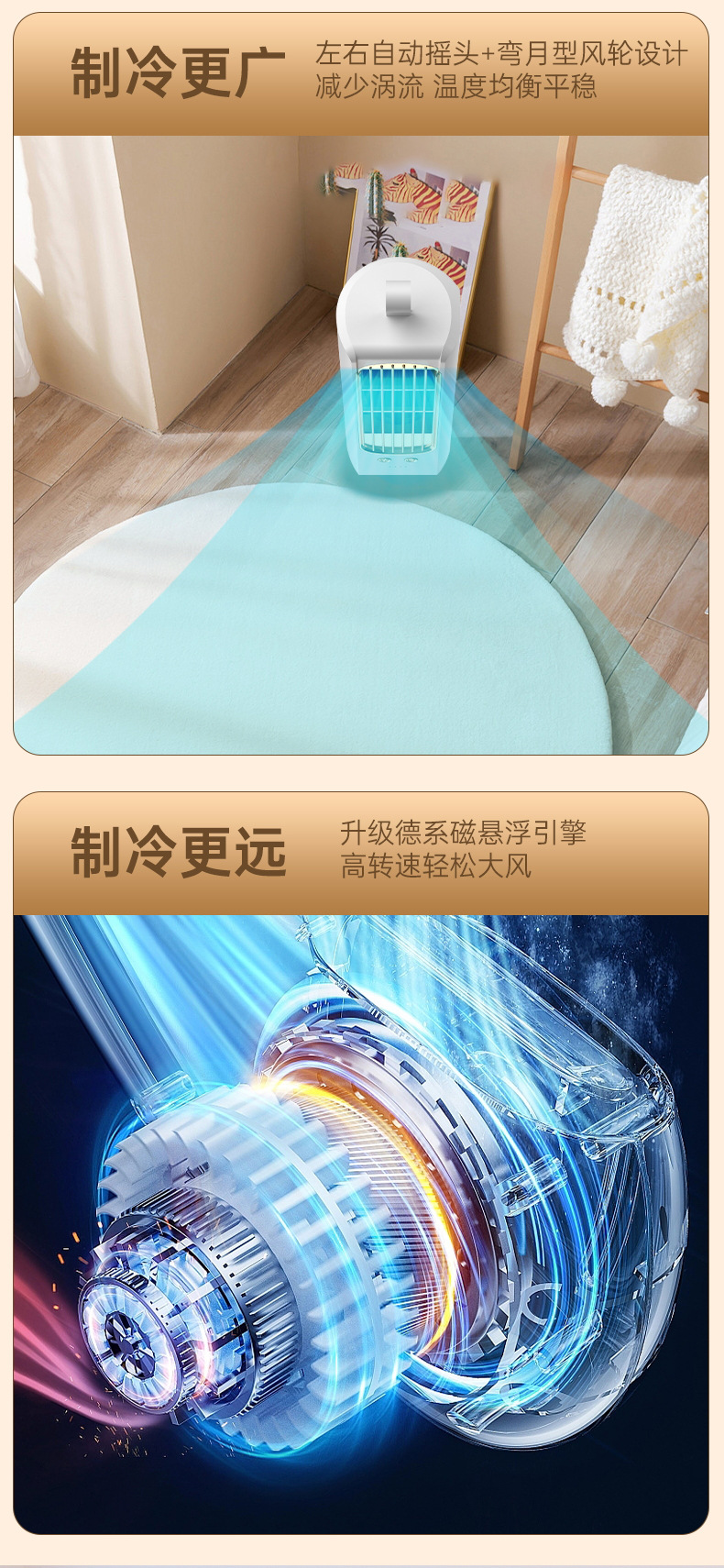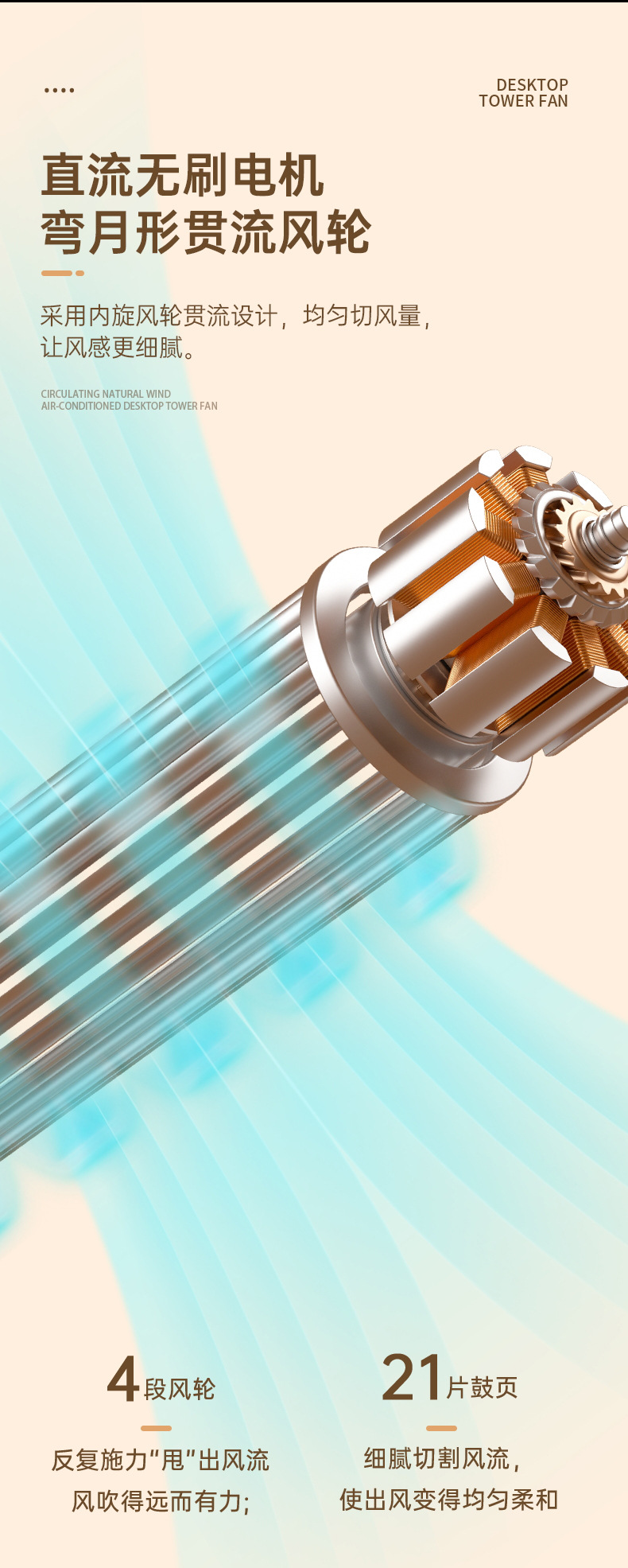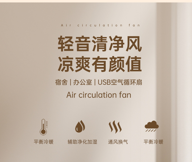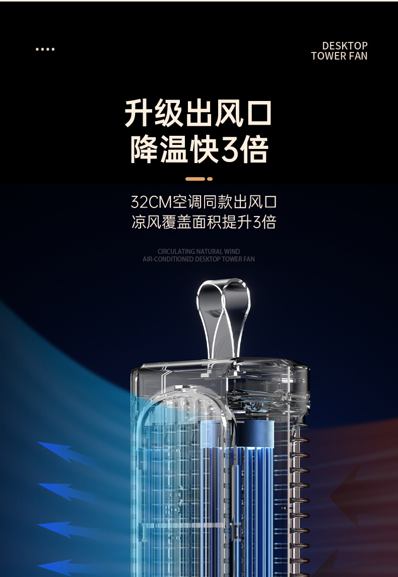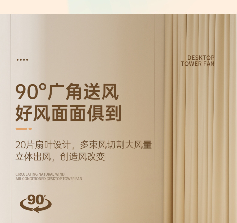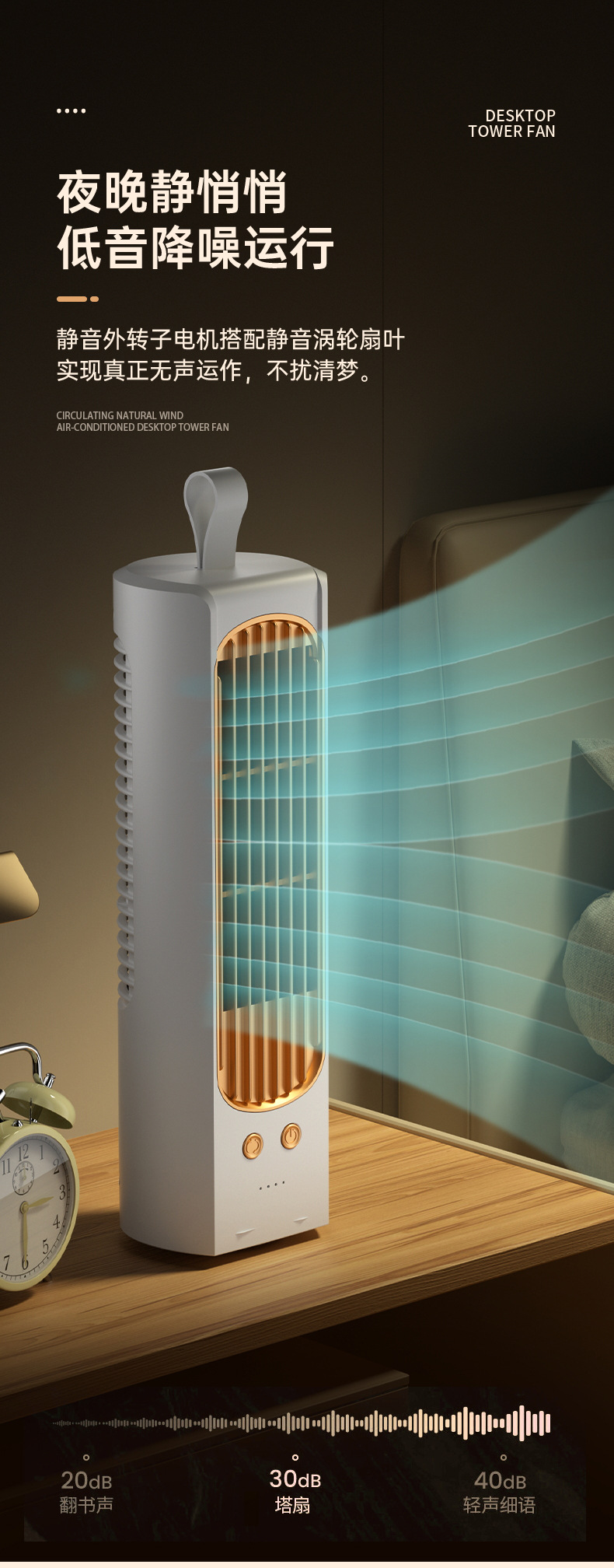 2024新款迷你桌面塔扇多功能可摇头循环风扇办公室床头小型电风扇