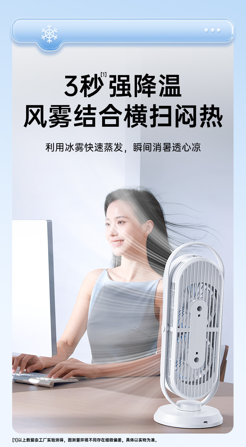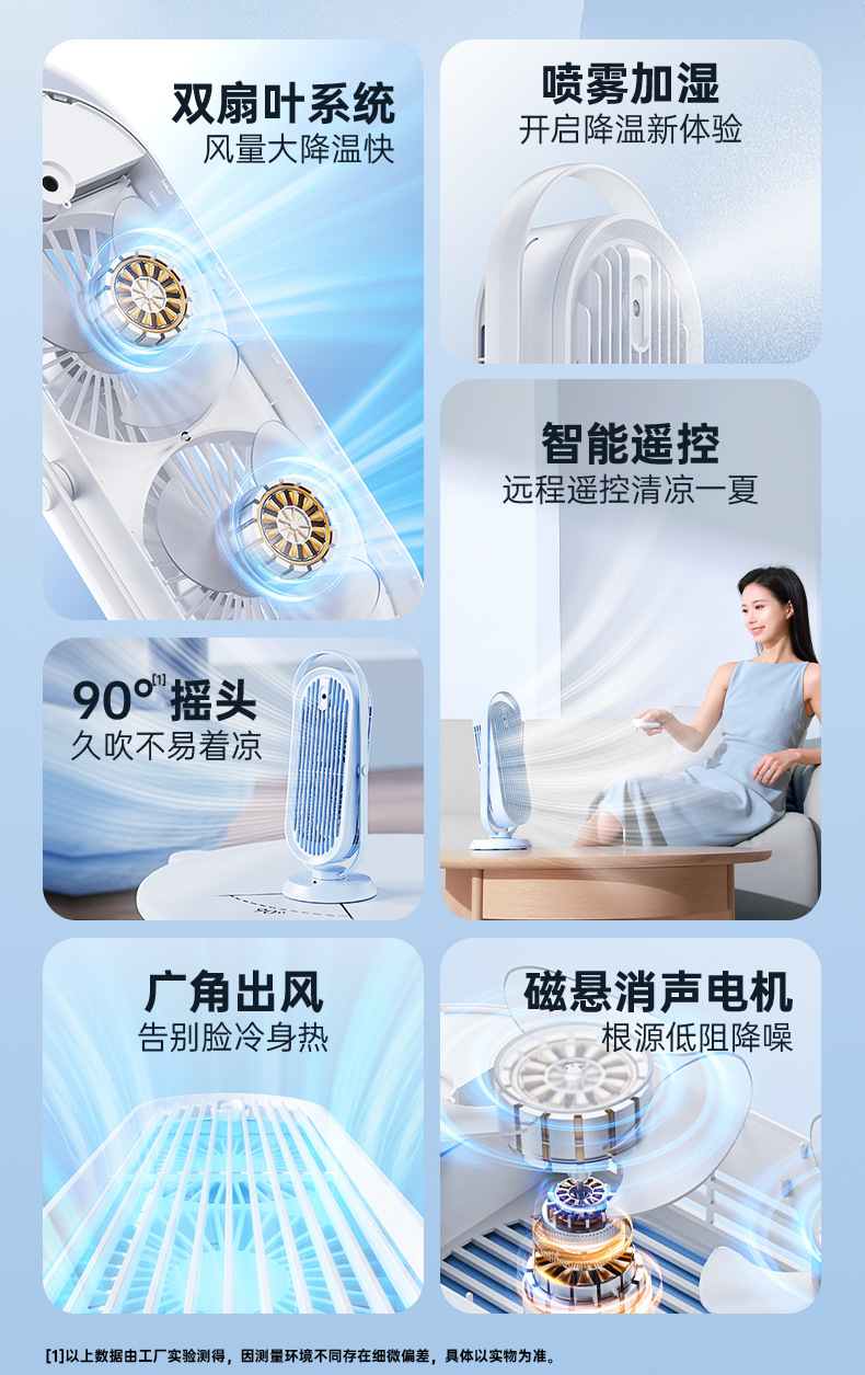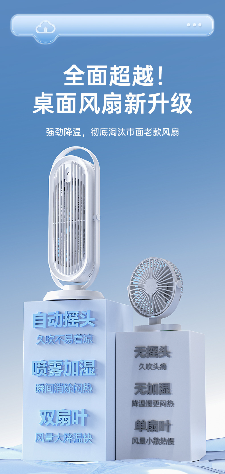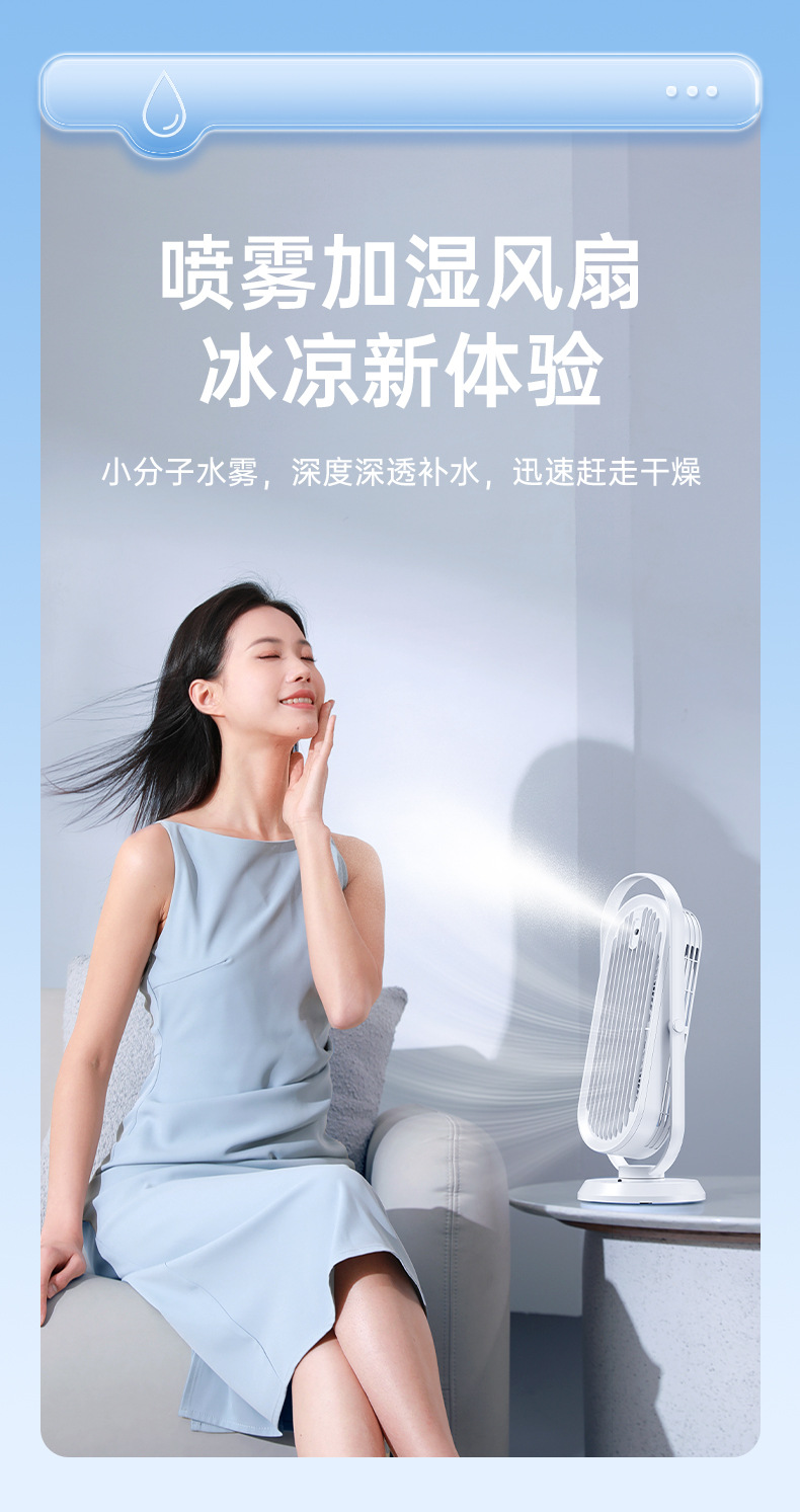 新款跨境双出风口桌面静音加湿器风扇办公USB塔扇家用大风力风扇